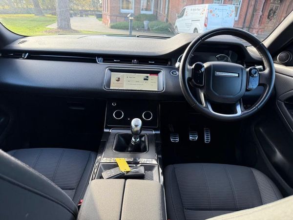 10in Touch Pro, 17in Alloy Wheels - 5 Split Spoke - Style 5073 - Satin Dark Grey, 40-20-40 Split Fold Rear Seat, 8-Way Heated Manual Front Seats, ABS - Anti Lock Braking System, Airbags - Driver Knee, Airbags - Front - Driver and Front Passenger, All Season Tyres, Ambient Interior Lighting, Analogue Dials with Central TFT Display, Automatic Headlights, Autonomous Emergency Braking, Bluetooth Connectivity, Body Coloured Roof, Brake Pad Wear Indicator, Bright Metal Pedals, Carpet Mats, Chrome Treadplates, Cruise Control and Speed Limiter, Customer Configurable Autolock, D150 Badge, DAB - Digital Audio Broadcast, DSC - Dynamic Stability Control, Driver Condition Monitor, EBA - Emergency Brake Assist, EBD - Electronic Brake-Force Distribution, EPAS - Electronic Power Assisted Steering, ETC - Electronic Traction Control, Electric Parking Brake, Electric Windows with One-Touch Open-Close and Anti-Trap, Evoque and R-Dynamic Badge, Flush Deployable Door Handles, Front and Rear Parking Aid, Headlining - Ebony Morzine, Heated Door Mirrors, Heated Rear Window with Timer, Hill Launch Assist, InControl - Remote App, Interior Rear View Mirror - Manual Dipping, Intrusion Sensor, LED Headlights, Lane Keep Assist, Leather Steering Wheel, Locking Wheel Nuts, Manual Headlight Levelling, Manual Tailgate, Manually Adjustable Steering Column, Overhead Lighting Console, Overhead Stowage for Sunglasses, Passive Front Headrests, Passive Suspension, Power Operated Child Locks, Power Socket Pack 1, Push Button Start, R-Dynamic Exterior Pack, RSC - Roll Stability Control, Rain Sensing Windscreen Wipers, Rear Air Vents, Rear Fog Lights, Rear ISOFIX, Rear View Camera, Seat Belt Reminder, Seats - Rear Centre Head Restraint, Shadow Atlas - RANGE ROVER - Bonnet and Tailgate Script, Side Curtain Airbags and Thorax, Sound System, Standard Roof, Sun Visors - Illuminated Vanity Mirrors, TPMS - Tyre Pressure Monitoring System, Tailgate Spoiler, Trim Finish - Gradated Linear Dark Aluminium, Twin Front Cupholders with Cover, Twin Sliding Front Centre Armrest, Two-Zone Climate Control, Tyre Repair System, Voice Control, Windscreen - Heated, Windscreen Washer Jets - Heated