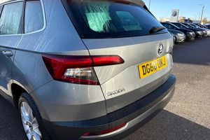 Alloys, AC/Climate, Sat Nav, Touchscreen, Cruise Control, DAB, Bluetooth, Heated Seats, Isofix, Keyless Entry, Parking Sensor, Advanced Safety;Have a look at this Skoda Karoq SEL that is available to purchase at Wrexham Volkswagen. This Karoq is powered by a 1.6 TDI 115PS engine with automatic transmission. The exterior is finished in the 'Business Grey' paintwork, which is complimented by the 18in alloy wheels to the side. This Karoq comes with a range of features on offer such as the LED headlights that keep the roads well lit, a set of roof rails, keyless entry and starting for quick accessibility, adaptive cruise control, and parking sensors that assist with maneuvering alongside the rear view camera. Moving inside, the stylish leather seating ensures comfort on every journey. The rear seating area features two folding tables with cupholders, and vent controls. Occupants can enjoy the openable panoramic sunroof. In the cabin you'll find a pair of heated seats with manual adjustment, climate controls, various storage compartments, multifunction steering wheel and touchscreen display. From this display you can access features such as navigation, FM/DAB radio, bluetooth connectivity for hands-free phone use and media streaming, and Apple Carplay/AndroidAuto. For more information regarding our flexible finance options or a personalised video, contact our sales team now. Part Exchange & Finance Available subject to T&C's. ?This vehicle is compliant with Clean Air Zone (CAZ) or Ultra Low Emission Zone (ULEZ) regulations, meaning it produces low emissions and helps to improve air quality in our cities.