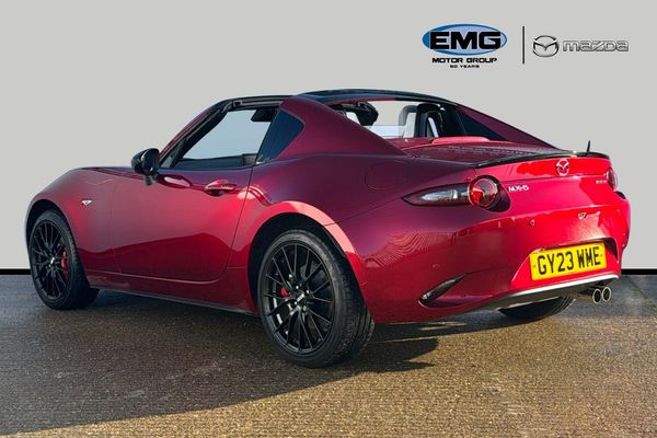 17in Alloy Wheels - BBS Gun Metallic 3-Stage Seat Heaters 7in Colour Touch Screen Display ABS - Anti Lock Braking System AM-FM-DAB Radio Air Conditioning - Climate Control Air Vent Surrounds - Chrome Airbags - Front Dual Stage Driver and Single Stage Front Passenger Auto Dimming Rear View Mirror Automatic Passenger Airbag Deactivation System Auxiliary - AUX - and Two USB Input Coinbox Located on Centre Console Cruise Control with Adjustable Speed Limiter DHS - Deployable Hood System DSC - Dynamic Stability Control Dashboard Panel - Light Stone Vinyl Leather Door Mirrors - Power Operated and Heated Double Pinion Electric Power Assisted Steering - DP-EPAS Driver Attention Alert - DAA Dusk Sensing Automatic Headlights Electric Windows - One Touch Auto Down Emergency Stop Signalling System - ESS Emergency Tyre Repair Kit Engine Start-Stop Button Front Strut Brace Gear Shift - Leather-Wrapped Gear Shift Indicator Hardtop - Power Retractable - Two-Tone Headlights - Adaptive LED Headlights - Coming-Leaving Home Hill Launch Assist - HLA ISOFIX Child Seat Anchorage - Passenger Seat Integrated Bluetooth System Integrated Mazda Navigation System with 3-Years Free European Map Updates Interior Courtesy Light Interior Upper Door Trim - Body Coloured Co-Ordinated Kinematic Posture Control LED Daytime Running Lights LED Indicator Lights LED Rear Lights LED Third Brake Light LSD - Limited Slip Differential Lane Departure Warning System Leather-Wrapped Handbrake Lever Multi-Dot Display Tachometer and Electric Odometer Multimedia Commander Piano Black Door Mirrors Piano Black Fashion Bars Pre-Crash Safety - Smart City Brake Support - SCBS Premium BOSE Sound System Rain-Sensing Front Wipers with Adjustable Sensitivity and Speed Rear Parking Sensors Red Brembo Brake Calipers Remote Central Locking with Deadlocking and Remote Boot Release Reversing Camera Scuff Plates - Stainless Steel - MX-5 Logo Seats - Drivers Manual Slide-Recline and Tilt Adjustment Seats - Front Passenger Manual Slide and Recline Adjustment Seats - Sports Service Indicator Side Airbags Side Door Trim - Light Stone Vinyl with Light Stitching Smart Keyless Entry Sports Suspension Steering Wheel - Leather Steering Wheel - Mounted Audio and Bluetooth Controls Steering Wheel - Tilt and Telescopic Adjustment Storage - Rear Centre Box with Lockable Lid Sun Visors - Drivers and Front Passengers with Covered Vanity Mirror and Ticket Holder TCS - Traction Control System Tailpipes - Twin Thatcham Accredited Alarm and Immobiliser Traffic Sign Recognition Trip Computer Two Cupholders - Detachable Tyre Pressure Monitoring System Windblocker - Transparent Wireless Apple CarPlay and Wired Android Auto