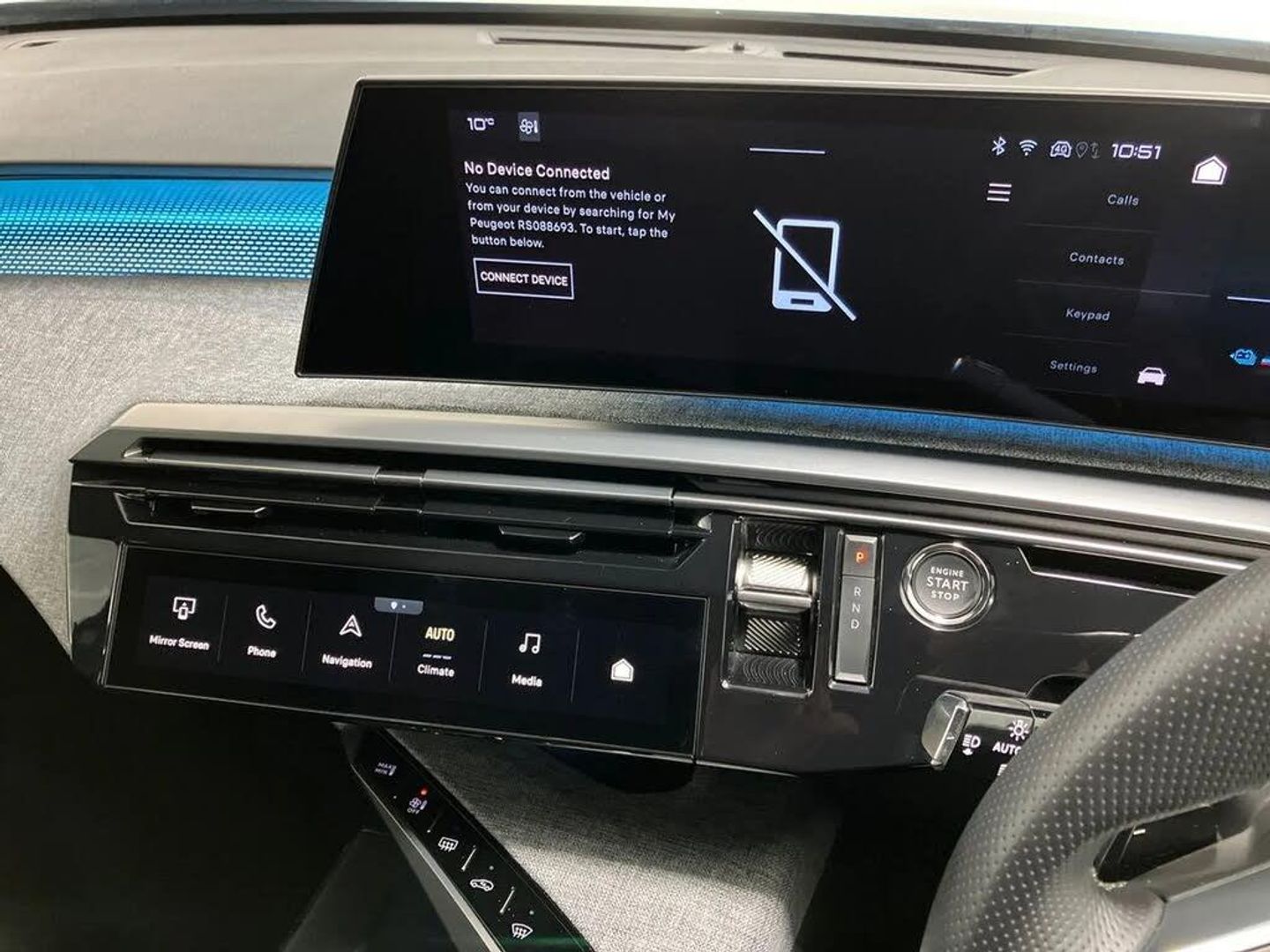 Adaptive cruise control with Stop and Go,Bluetooth with two microphones (Connect up to 2 phones),Drive modes select (Eco, normal and sport) with configurable ambient lighting,Driver foot rest,Driver profile selection,E-call,Exterior temperature indicator with ice warning,Front parking sensor,Front passenger seat detection,Hands free Smart Electric Tailgate (foot operated),Lane keep assist,Multi function trip computer,Natural voice recognition,PEUGEOT i-Cockpit - 21" HD panoramic curved display incorporating instrument panel and touchscreen with 3colour themes,PEUGEOT i-connect advanced HD fully customisable touch screen, Navigation with Tom Tom Live updates and over the air map updates,PEUGEOT SOS and assistance,Rear parking sensor,Remote charge management via My PEUGEOT App,Speed limit and traffic sign recognition and recommendation,Wireless mirror screen with apple carplay and android auto,Wireless smartphone charger with status light and ambient lighting,11 kW triphase Bi-directional on board charger,Dynamic stability control and electronic anti-skid system,Mode 3 type 2 cable for wallbox charging,Multi-link rear suspension,Vehicle-to-load (V2L) preparation,AM/FM bi-tuner,DAB Radio (Digital Audio Broadcasting),Peugeot customisable virtual iToggles,USB-C sockets (2 x front and 2 x rear),3008 model designation badgers front and rear in basalt grey,Acoustic windscreen,Automatic hazard light activation upon heavy brake application,Automatic headlamp activation,Automatic windscreen wiper activation with interval wiping intensity control,Black diamond roof and floating effect rear spoiler finished in nera black metallic,Body coloured exterior door handles,Dark tinted privacy glass for rear door, Tailgate and Quarter windows,Door mirrors - Welcome lighting and integrated LED indicators,Electric adjustable/heated/folding door mirrors,Electrochrome rear view mirror,Flat blade wipers with magic wash integrated nozzles,Front and rear electric windows with one touch,Front grille with body coloured accents,Gloss black connecting strip between rear lights,Gloss black finish B pillar,Heated rear window,Laminated windscreen,LED daytime running lights,LED exterior lighting,LED third brake light,Lower front and rear bumper trims in meteor grey,Orbital gloss black door mirrors,Orbital gloss black lower door claddings and widened wheel arches,PEUGEOT shield on front wings,Pixel LED Technology headlights with adaptive high beam assist,Rain sensor,Rear full LED 3D peugeot signature claw effect lights with daylight function,Rear side wing doors,Rear wiper,12V socket in front and boot,2 cupholders in front centre console,2 rear cupholders,3 seat rear bench,4 Grab handles retractable and damped,4 tie down luggage rings,40/20/40 folding rear seat backrest with fixed base,Aluminium pedals,Arch design central console with concealed storage,Cabin high efficiency filter,Cabin thermal pre-conditioning (activated in vehicle or via remote services),Central front armrest with ventilated storage compartment and LED lighting,Chrome finish interior door handles,Compact heated multifunction steering wheel with full grain leather Iced Clay stitching, gloss black and satin chrome detailing and GT badge,Dual zone climate control,Dynamic front seats,e-Toggle compact gear selector,Electric power steering with reach and rake adjustable steering column,Glasses storage box, roof mounted,LED boot light,LED footwell lights,LED front and rear reading lights with push button control,LED Glovebox light,LED illuminated driver and passenger concealed sunvisor mirrors,Luggage cover,Luxury front and rear carpet mats with Iced Clay stitching and GT logo,Mistral black pillars and headlining,Quick launch cabin heating/cooling function,Rear air vents,Rear centre armrest,Rear smartphone holder,Roof lining - Meteor grey,Seatbelt unfastened on the move audible and visual alert for front and rear seats,Single front passenger seat,Stainless steel PEUGEOT door sill trims,Two bag hooks,Two position boot floor,2x Isofix child seat fitting on outer rear seats with zipped cover,3x3 point rear seat belts,ABS (Anti-lock Braking System) with EBD (Electronic Brakeforce Distribution) and EBA (Emergency Braking Assistance),Advanced Emergency Braking System with radar (AEBS3) providing night detection of pedestrians and cyclists,Child locking functionality on rear doors,Driver and front passenger airbags with airbag deactivation function,Driver and front passenger side airbags,Electric parking brake,Electromechanical Low Pitch Single tone horn,Enhanced 3 stage regenerative braking via steering wheel mounted paddles,Front and rear curtain airbags,Front optimised safety headrests and 3 x rear retractable headrests with height adjustable,Front/rear disc brakes,Hill start assist,Post collision safety brake,Seatbelts - Front and rear outer seats with pyrotechnic pretensioners and force limiters,2x Keys (Lock, Unlock, Boot release function with concealed key)