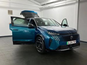 ;This 2024 Peugeot E-3008 GT is a superb example, boasting exceptionally low mileage for its age, having covered just 2553 miles. As a single owner vehicle, it comes with an MOT valid until August 2027, offering peace of mind for the new owner. This electric SUV features a substantial 81 kWh battery, providing a maximum range of 326 miles from new, making it ideal for both daily commutes and longer journeys. Charging is convenient, with a full charge achievable at home in approximately 8 hours using a 7kW charger, and a rapid charge to 80% taking just 40 minutes at a public charging station. The E-3008 GT is equipped with advanced Pixel LED Technology Headlights, complete with Adaptive High Beam Assist, ensuring excellent visibility in all conditions, alongside automatic headlamp activation. The generous boot space offers practicality for all your needs, further enhancing the E-3008 GT's appeal. The impressive 326 mile maximum range at new clearly sets this vehicle apart, indicating superior efficiency and capability compared to many other electric vehicles on the market. This combination of low mileage, single owner provenance, extensive electric range, and advanced lighting technology makes this Peugeot E-3008 GT a truly compelling choice for those seeking a premium and capable electric SUV.