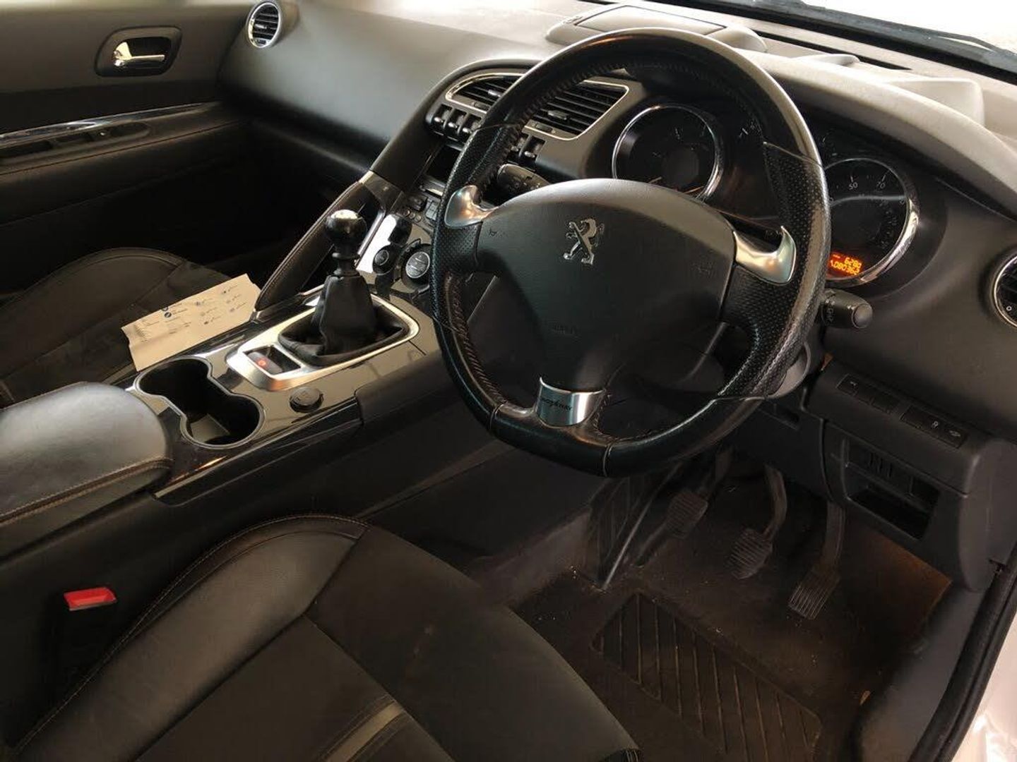Cruise control + speed limiter, Digital clock, Front parking aid, Head up Display, Peugeot Connect colour satellite navigation + bluetooth, Rear parking aid, Reversing camera, Speed sensitive power steering, Trip computer, Diesel particulate filter, RD45 stereo radio + MP3 CD Player, Speed sensitive stereo volume, Steering column mounted multifunction controls, Body colour door mirrors and handles, Body coloured bumpers with chrome inserts, Electric front windows, Electric rear windows, Front fog lights, LED daytime running lights, LED rear lights, Panoramic opening glass roof with electric blind, Rear wiper, Split tailgate, Tinted rear windows, Xenon headlights, 2 Isofix seat anchors, 3 x 12V power sockets, 60/40 split folding rear seat back and squab, Adaptable boot storage, Aluminium door sill trims, Boot net, Carpet mats, Centre console storage, Cupholders - 2 in rear centre armrest, Digital air con with climate control, Driver's lumbar support, Flat folding rear seats, Fold flat front passenger seat with picnic table, Front headrests, Full leather steering wheel, Heating/air conditioning outlet in rear, Height adjustable driver/front passenger seats, Instrument panel light dimmer, Luxury leather upholstery + heated seats, Manual height/reach adjust steering wheel, Portable light in boot, Rear centre armrest/ski flap, Rear headrests, Rear passenger footwell storage, Rear sunblind, Reclining front seats, Second glovebox behind steering wheel, Retrovision pack - 3008, Visibility pack - 3008, 3 point seatbelts on all rear seats, ABS + EBD + EBA, Driver SMART airbag, Electronic parking brake, ESP with ASR, Front and rear curtain airbags, Front and rear pre-tensioning and force limiting seatbelts, Front passenger SMART airbag with deactivate switch, Hill start assist, Side airbags x 2, Tyre pressure sensor, Automatic door lock/re-lock after 30 seconds, Central locking button on dash, Deadlocks, Locking wheel bolts, Remote control central locking with two plip keys, Rolling code transponder immobiliser, Thatcham cat 1 ultrasonic alarm, Black instrument panel with white needles and white backlighting, 18'' Icauna alloy wheels, Tyre puncture repair kit