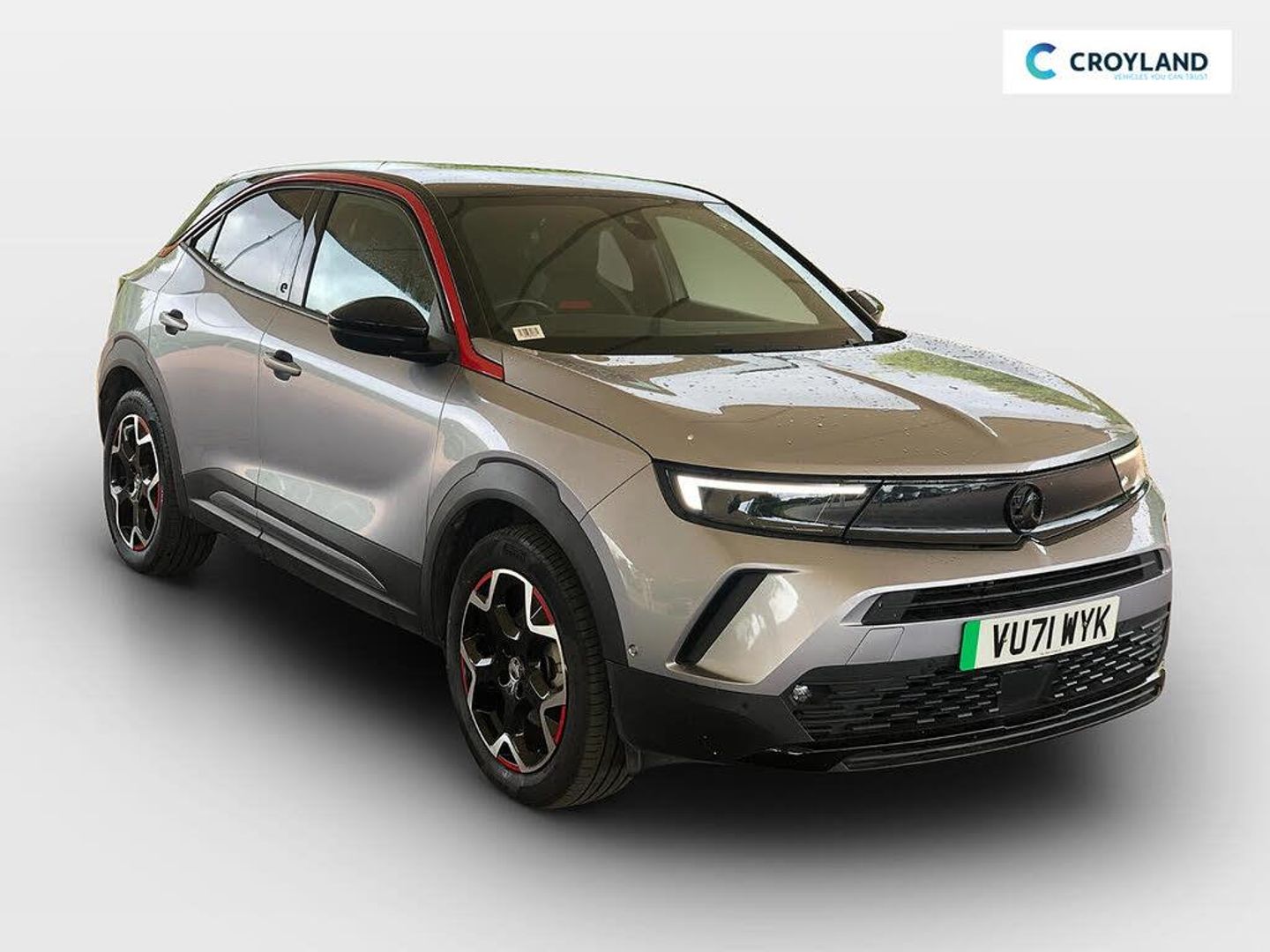 Automatic adaptive cruise control, Drive mode selector, Driver drowsiness alert system, eCall emergency call system, Front and rear parking distance sensors, Front camera system, Lane positioning assist, Lights on audible warning, Multi function trip computer, Panoramic rear view camera, Power assisted speed sensitive steering, Side blind spot alert and flank guard, Smartphone integration compatible with Apple CarPlay and Android Auto, Speed sign recognition, Vauxhall connect with e-Call, 11kW on board charger, Chassis drive line front wheel drive, Front chassis equipment, Mode 3 charging cable, Rear chassis equipment, Standard chassis suspension system ride handling, Transmission automatic reducer, Bluetooth A2DP audio streaming function (Advanced audio distribuition profile), Flexible Roof Mounted Radio Aerial, Front USB connection, Mobile phone portal - bluetooth connect, vehicle microphone, handsfree calls, SMS read out and reply, phone book access, Multimedia Navi pro infotainment with satellite nav, 10" colour touchscreen, 6 speakers, DAB radio, 12" instrument panel, Apple carplay/Android auto, Steering wheel mounted controls, Two rear USB sockets, 3rd brake light, Adaptive brake lights, Automatic lighting control with tunnel detection, Automatically dimming anti dazzle rear view mirror, Black door mirror housings, Black Griffin logo and vizor frame, Black rear spoiler, Black skid plates, Body colour door handles, Body colour front and rear bumpers, Dark tinted rear side windows + tailgate window, Electrically adjustable, heated and folding door mirrors, Electrically operated front and rear windows with safety auto reverse and one touch up/down facility, Hazard warning lights, Heated rear window+rear wash/wipe, High beam assist, LED daytime running lights, LED front fog lamps, LED side repeat indicators, LED tail lights, Manual headlamp level control, Rear foglight, Rear side wing doors, Rear wiper, Reversing light, Two speed rain-sensitive windscreen wipers with variable intermittent wipe, Windscreen and side window demist vents, 12V Accessory socket, 3 seat bench in 2nd row, 3 spoke flat bottomed leather steering wheel with satin chrome bezel, 4 speed fan with illuminated controls, 6 way manual adjustable driver fore/aft, up/down with reclining seatback, 6 way manual adjustable front passenger fore/aft, up/down with reclining seatback, Air recirculation system, Alloy sports pedals, Black headliner, Cabin particulate filter - removes dust, airborne particles and pollen, Centre console with two cup holders at front and one in rear, Chrome effect interior door handles, Door pockets with two litre capacity, Driver and passenger seat pocket, Driver and passenger sun visors with vanity mirror, Electronic climate control (ECC), Fabric/leather upholstery with jet black fabric side bolsters, Four adjustable facia vents, Four load restraint lashing eyes, Front centre armrest with storage, Front map reading lights, Front seat back storage pockets, Fully carpeted load area, Heated front seats, Heated steering wheel, Height adjustable front/rear head restraints, Illuminated load area, Interior courtesy light, Interior tailgate handle, Luggage compartment cover, Luggage compartment lighting, Reach + rake adjustable steering column, Single front passenger seat, Twin gas assisted tailgate struts, 2x Isofix child seat fitting on outer rear seats, 3x3 point rear seat belts, Anti-lock braking system (ABS), Automatic emergency city braking, Child proof locks on rear doors, Cornering brake control, Deactivation switch for front passenger front and side impact airbags, Drag torque control, Driver and front passenger airbags, front seat side impact airbags, full size curtain airbags, Electronic brake force distribution, Electronic Stability Programme (ESP), Emergency brake assist, Forward collision alert at all speed, Hill start assist, Inertia reel lap and diagonal seatbelts for all seats, Seatbelt unfastened audible warning and warning light, Straight line stability control, Traction control, Tyre pressure monitoring system, Electronically protected audio equipment, Freewheeling door locks, Immobiliser, Key left in ignition audible warning, Keyless entry and start, Locking wheel nuts, Remote control ultrasonic security alarm system, Visible vehicle identification number, Atlantis black trim inserts of front doors, Black facia with red trim insert, Instrument panel bar in Light Gravel, 18" bi colour alloy wheels with red accents, Emergency tyre inflation kit