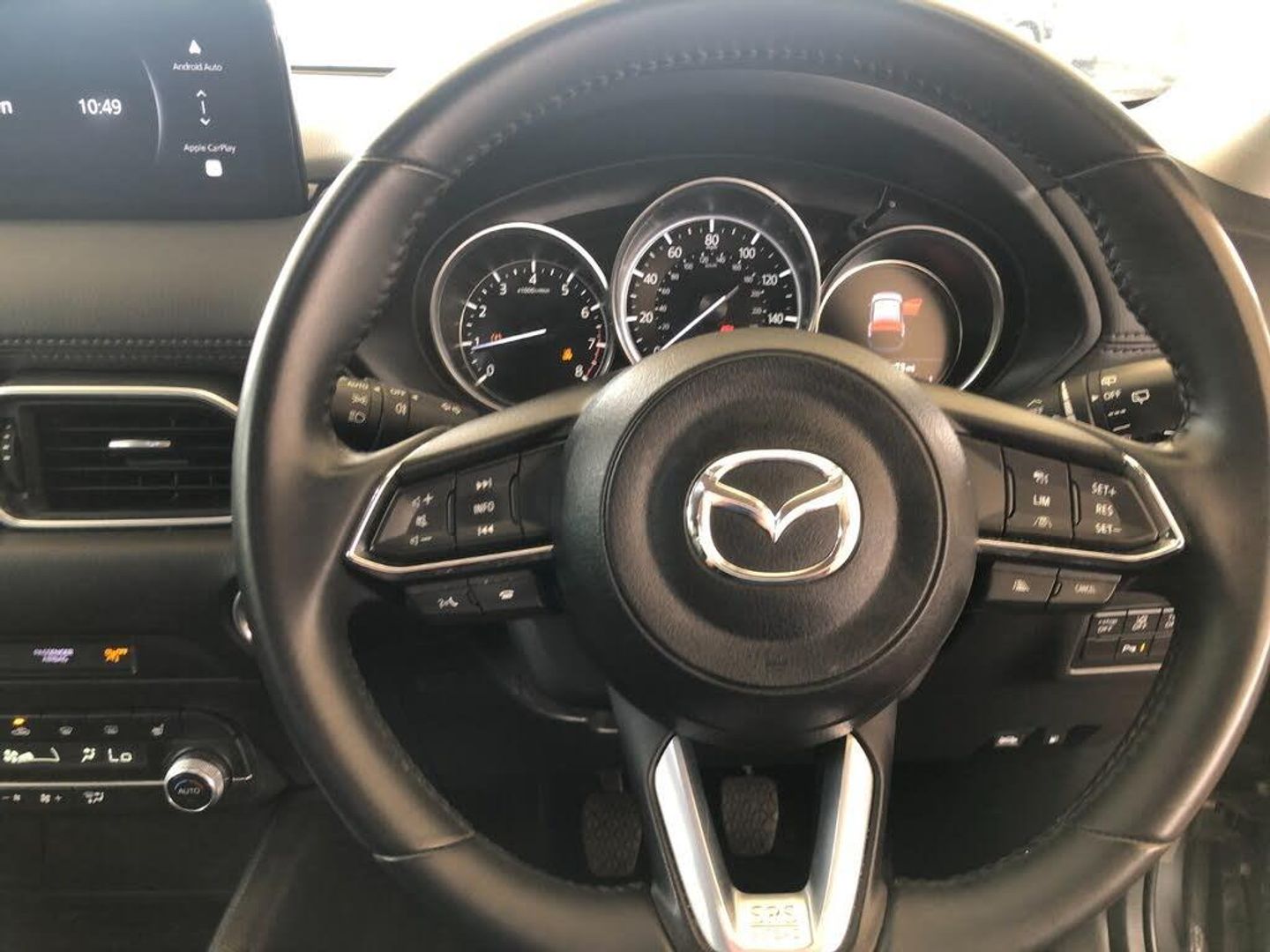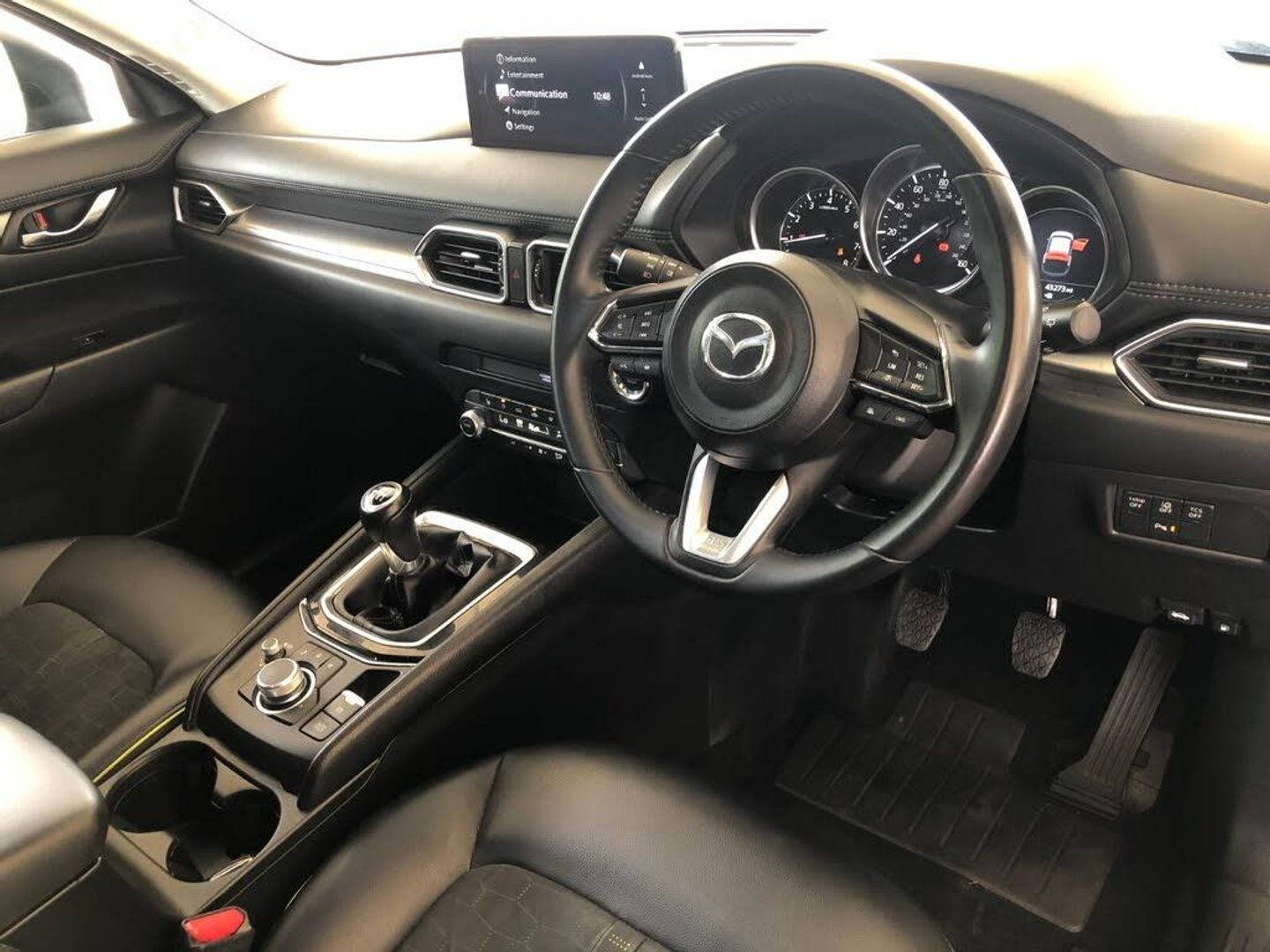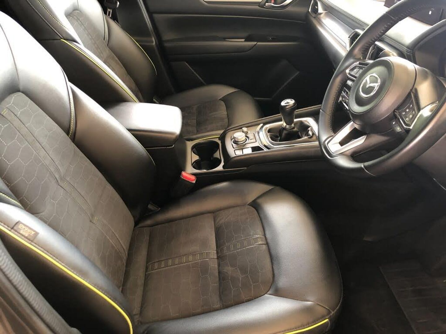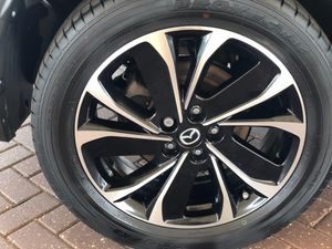 10.25" display with Mazda Connect infotainment, Advanced blind spot monitoring, Bluetooth connectivity with voice control, Collision prevention assist, Connected services, Cruising Traffic Support, Electric power steering, Emergency stop signalling system, Engine start/stop button, Forward collision warning, Front and rear parking sensors, High meter TFT display, Integrated navigation system, Intelligent speed assist, Lane departure warning system, Lane keep assist, Radar cruise control, Rear cross traffic alert, Service indicator, Trip computer, Wireless apple car play/android Auto, Cylinder Deactivation, i-stop, 6 speakers, AM/FM radio, Bluetooth audio streaming, DAB Digital radio, Multimedia Commander including separate volume dial, Steering wheel mounted audio controls, Adaptive front lighting system, Auto dimming rear view mirror, Automatic headlights, Black mirror caps, Body colour roof spoiler, Body coloured front and rear black lower bumper mouldings, Coming/leaving home lighting function, Door mirror integrated indicators, Dual chrome tailpipes, Dusk sensitive headlamps, Electric front/rear windows with one touch auto up/down, Front and rear silver under garnish and side skirt, Front and rear silver under guard and side garnish, Front grille in material black finish, Front grille in satin finish with lime green accent + chrome signature wing, Gunmetal inlay dashboard panel, High beam assist, Intermittent rear wash/wipe, LED auto levelling, LED daytime running lights, LED front fog lights, LED Headlights, LED third brake light, Lime green front grille accent color, Louver bezel inner lime green accent, Power folding and heated door mirrors, Privacy glass (rear side windows only), Rain sensing front wipers, Rear side wing doors, Satin black B and C pillars, Satin black side mouldings, Scuff plates, Shark fin antenna, Signature LED rear combination lights, Variable intermittent front wash/wipe, Vinyl with lime green door trim panel, 12v electrical power outlet, 3 seat bench in 2nd row, 3 stage heated front seats, 40:20:40 Karakuri fold-flat seat system, 6 way power adjustable driver seat, Driver seat lumbar adjustment, Driver seat power slide, recline and height adjustment, Driver, Front passenger and two rear grab handles with coat hooks, Driver/passenger front seatback pockets, Driver/passenger sunvisors + illuminated vanity mirrors (drivers with ticket holder), Dual zone climate control, Folding centre armrest with 2 cup holders, Front and rear door pockets, Front centre storage with two cupholders, Front passenger seat manual slide, recline and height adjust, Gear shift indicator, Height adjustable passenger seat, Humidity sensor, Illuminated glovebox, Interior dome light with integral spotlight, ISOFIX child seat anchorage points attached on outer rear seats, Karakuri tonneau cover, Leather wrapped steering wheel and gear knob, Leatherette door trim, Leatherette/suede upholstery, Light roof lining, Luggage compartment LED lighting, Luggage compartment power outlet, Rear air vents, Rear headrests, Rear seat recline, Reversible waterproof cargo board, Roof mounted sunglasses holder, Single front passenger seat, Standard air vents in silver, Three height adjustable head restraints, Tilt/height adjustable steering wheel, USB Connectivity (2x front Type-C, 2x rear Type-B), White interior LED illumination lighting, 3 point front seatbelts with pre-tensioners, 3 rear 3 point seatbelts, ABS, Advanced Smart City Brake Support - SCBS, Child locks on rear doors, Driver and front passenger side airbags, DSTC-Dynamic Stability and Traction Control, Dual front airbags, Electronic brake force distribution, Electronic parking brake with auto hold, ESP, Front and rear curtain airbags, Front passenger airbag deactivation, G-Vectoring control, Hill hold assist, Seatbelt reminder front and rear, Single stage passenger airbags, Smart brake support with forward obstruction warning, Tyre pressure monitoring system, Automatic door locking when moving off, Deadlock, Immobiliser, Power door locks, Remote central locking, Thatcham Cat.1 alarm, 19" diamond cut black alloy wheels, Tyre repair kit