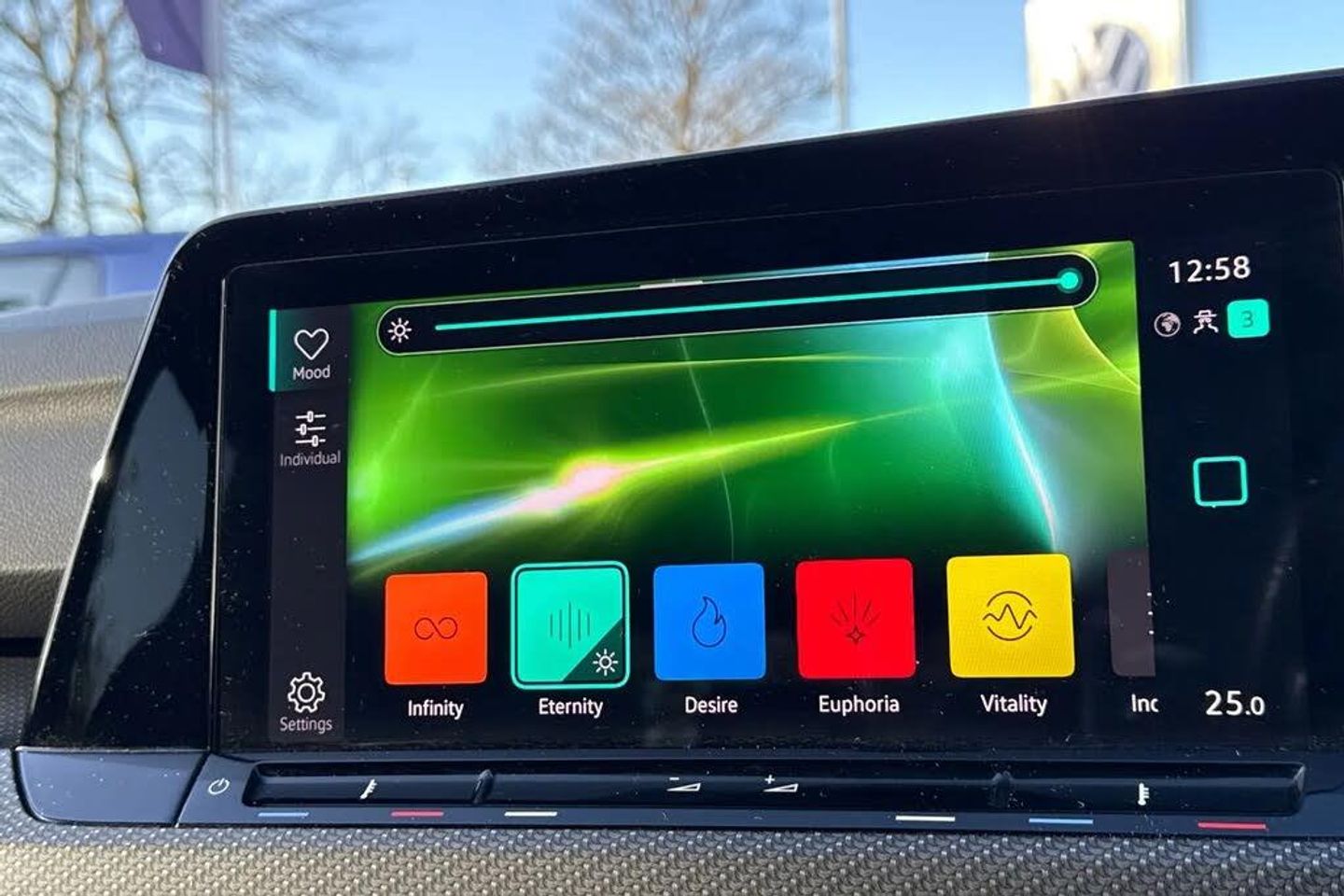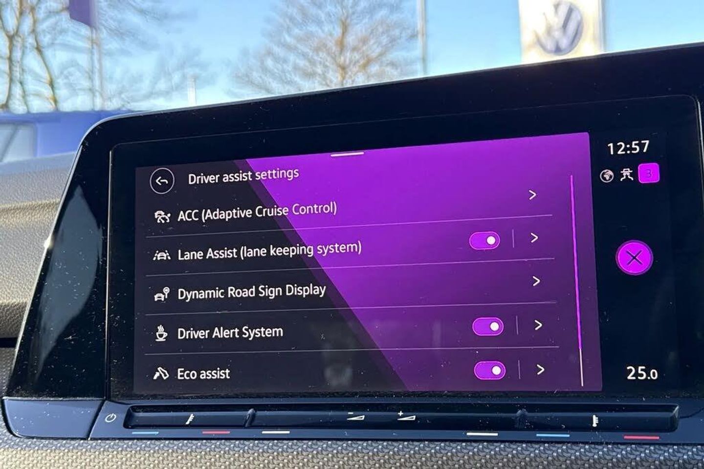 Front and rear electric windows,Heat insulating glass windscreen,Heated rear windscreen,Rain sensor,Rear tinted glass 65% light absorbing from B pillar backwards,Rear windscreen washer and wiper with interval delay,Ambient lighting,exterior illuminated styling elements at the sides,Body colour door handles,Body colour rear roof spoiler,R Line body coloured bumpers,Automatic headlamp activation with Coming home and Leaving home feature,High level 3rd brake light,Highway light,LED License plate illumination,Rear fog light on one side and reversing lights on both sides,Rear lights incorporating LED technology,Welcome light,ABS,Electronic parking brake with auto hold,ESC (Electronic Stability Control),Front disc brakes,Rear disc brakes,Adaptive cruise control (ACC) with speed limiter and front assist (reacting to vehicles pedestrians and cyclists),Driver alert system,Driver profile selection,Dynamic road sign display,Lane assist,Progressive steering,Auto dimming rear view mirror,Body colour door mirrors with integrated indicators,Electrically heated and adjustable door mirrors with memory feature,3 point height adj front seatbelts + pretensioners,3 rear three point seatbelts,Driver and front passenger airbag with front passenger airbag deactivation,Drivers and front passengers safety optimised head restraints,Extended pedestrian protection measures,Front and rear passengers curtain airbag system including front side airbags,Two tone horn,Tyre pressure monitoring system,Front + rear carpet mats,12V socket in front centre console,12V socket in luggage compartment,Black roof lining,Brushed stainless steel pedals,Centre console,Chrome plated surround to electric mirror button,window switch and air vent surrounds,Front centre armrest with storage compartment,Front cupholders x 2,Glovebox,Height and reach adjustable steering wheel,R Line door and side trim panel,R-Line leather wrapped multi function sports heated steering wheel,Removable luggage compartment cover,Sardegna cloth upholstery with front and outer rear seats Art Velour inner sides of bolsters,Woven fabric storage compartments in front and rear doors,Ambient lighting - Customisable 30 colour ambient lighting,Front reading lights x 2 incorporating LED technology,Luggage compartment lighting,XDS electronic differential lock for improved traction and handling,Drivers and front passengers sun visors with vanity mirrors,Car2X communication,Mobile phone interface with wireless inductive charging function,Wireless app connect,Premium USB cable in choice of either Apple or Android smartphone compatibility,Start/Stop function,Digital cockpit pro - 10.25" high resolution TFT dash display screen with customizable menus and information,eCall - Emergency call service for SOS calls to emergency response,Speedo,rev counter,electronic odometer,trip,service interval display,exterior temperature and fuel gauge,Warning buzzer and light for front seatbelts unfastened,Petrol Particulate Filter,Carbon grey decorative inserts in dash and front door trim panels,Soul dashboard,3 rear head restraints,Front seat lumbar support adjuster,Front sports seats,Height adjustable front seats,Isofix child seat preparation for 2 rear child seats and front passenger seat,R Line front seats integrated head restraints,Split folding backrest with centre armrest and unsplit rear seat bench,Alarm with interior protection and deactivation via infotainment system,Electronic engine immobiliser