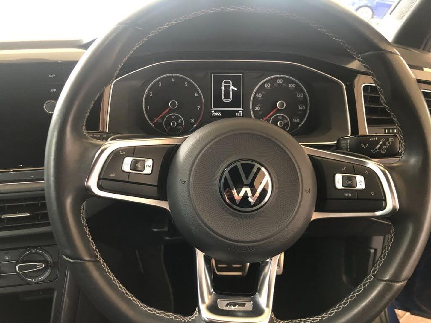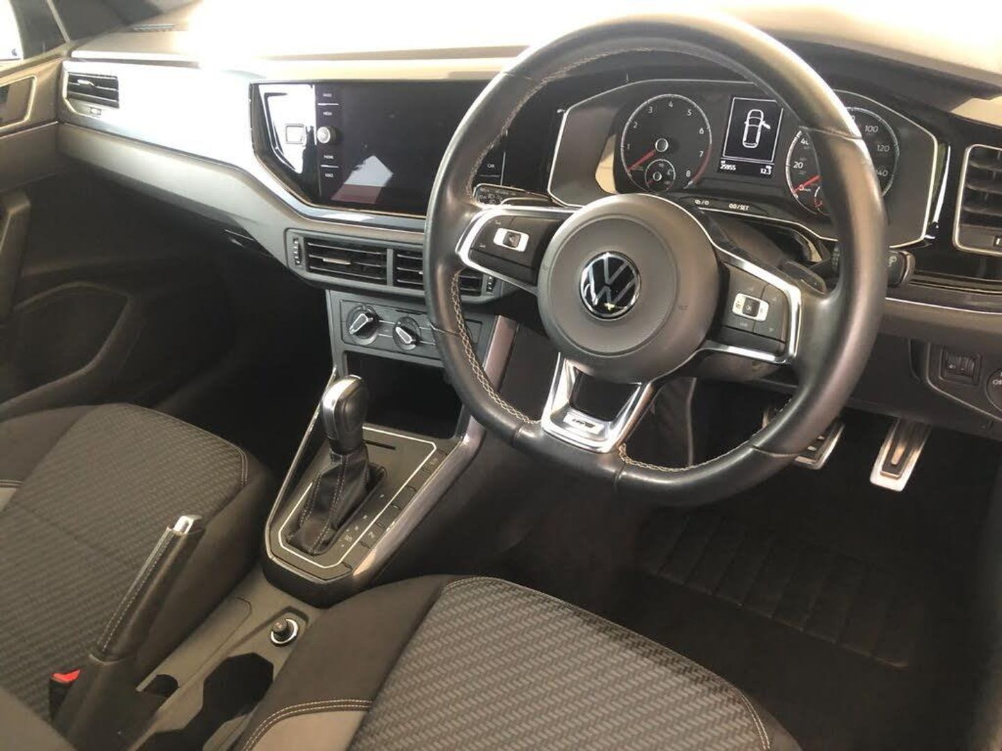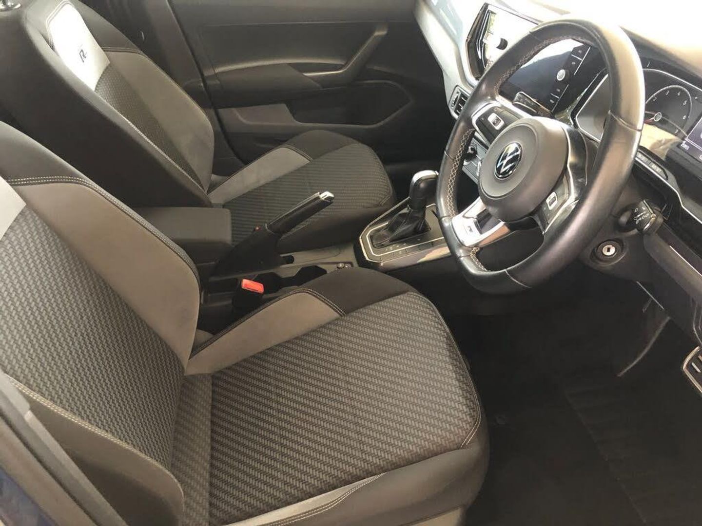 Digital clock, Driver alert system, Emergency call service, Lights on warning, Multifunction computer plus, Power assisted speed sensitive steering, Speedo and rev counter, electronic odometer, trip, service interval display and fuel gauge, Start/stop system, Volkswagen connect, Warning buzzer and light for front seatbelts unfastened, Wireless app connect, Battery regeneration during braking, Galvanished body, Diversity antenna for FM reception, Front and rear 6 speakers, Black grille with chrome surround, Body colour door handles, Body coloured side sills, Chrome trimmed strip on lower bumper, Electric front windows, Electrically adjustable and heated door mirrors with reverse activated kerb view adjustment on passenger's side, Front windscreen washers and wipers with 4 speed intermittent delay, Heated rear window with auto timer, High level 3rd brake light, LED darkened rear light clusters, LED daytime running lights, LED rear number plate lights, Left and right chrome effect trapezoid fascia exhaust tailpipe surrounds, Rear diffuser, Rear electric windows, Rear windscreen washer and wiper with interval delay, reverse activated, Unique R Line badging, 2 bag hooks in luggage compartment, 2 front cupholders and 12 V socket with cover, 3 rear head restraints, 60/40 split folding rear seat, Ambient lighting in front foorwell, front/rear door and dashboard light strips, Carbon flag cloth upholstery, Centre console storage with open storage compartment, Chrome-plated electric mirror adjustment switch surround, Chrome-plated electric window button surround, Driver and front passenger seat height adjustment, Driver and front passenger sunvisors with illuminated vanity mirrors, Dust/pollen filter, Folding rear seat backrest, Front + rear carpet mats, Front head restraints, Front seat backrest storage pockets, Front sport seats with lumbar adjustment and R line logo on seat backrest, Gear lever gaiter in black trim surround, Glovebox, Handbrake grip button in chrome effect, Height/reach adjustable steering column, Instrument lighting, adjustable panel illumination, Interior light with delay, Isofix Preparation 2 Rear child seats, Leather gear knob and handbrake grip, LED interior lighting - 2 reading lights front and rear with interior delay and dimming function, Luggage compartment cover, removable, Luggage compartment lighting, Luggage compartment with variable load floor, Stainless steel pedals, Storage compartment in front doors, Storage compartment in rear doors, Storage compartment under front seats, Three spoke leather wrapped multifunction sports steering wheel with shifting paddles, Titanium black roof lining and sun visors, Unique R Line door sill protectors, Light and sight pack - Polo, R Line styling pack - Polo, 3 point height adj front seatbelts + pretensioners, 3x3 point rear seatbelts, ABS, Automatic post collision braking, Driver/front passenger airbag, Drivers and front passengers safety optimised head restraints, ESP with EDL + ASR, Front and rear passenger curtain airbags, Front passenger airbag deactivation, Front seat side impact airbags, Front/rear disc brakes, Hill hold control, Hydraulic Brake Assist (HBA), Single tone horn, Tyre pressure monitoring system, Alarm with interior protection and deactivation via infotainment system, Electronic engine immobiliser, Remote central locking with 2 remote folding keys, Chrome plated air vent surround, Chrome plated instrument surrounds, Shadow steel decorative inserts