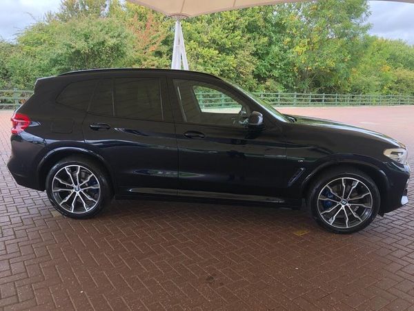 Active Guard incl speed limiting and lane departure functions with auto steering, and front collision warning with brake intervention, Attentiveness assist, Automatic tailgate operation, BMW Live Cockpit Professional sat nav system including 10.25" high resolution display and Intelligent Voice Assistant, BMW Online services, BMW Teleservices, Brake pad wear indicator in front and rear, Check Control warning system for monitoring of lights and door/luggage compartment open warning, Control display - 6.5" colour display screen, Electric Power Steering (EPS) with Servotronic, Front/rear Parking distance control, iDrive Controller with 8 favourite buttons, Lights on warning by audio warning signal when ignition is switched off, Navigation system - BMW Professional multimedia with Hard disc drive (HDD) and 10.25" touch display, Oil sensor for level and grade, warning by check control system, On board computer - average speed+fuel consumption, service interval, clock/date, odometer/trip meter, outside temperature display and ice warning, Optimum shift indicator, Personal Profile - automatic lock when driving away selectable, Real time traffic information, Semi digital instrument cluster, Stop/start system, Automatic transmission with gearshift paddles, Diesel particulate filter, Incorrect fuelling protection, Larger capacity fuel tank, Multi-link rear suspension, Performance Control, Auxiliary socket for external MP3 player, BMW professional radio/CD/MP3, DAB Digital radio, Acoustic glazing, Black finish on B pillars, Body colour door handles, Body colour electric adjust heated aspherical door mirrors, Body colour roof mouldings, Body coloured bumpers, Chrome kidney grille with high gloss black vertical slats, Direction indicator, side repeaters, integrated in exterior mirrors, Dual chrome exhaust, Dynamic brake lights, Exterior mirrors - electrically folding with anti-dazzle, Fingertip control / anti-trap function on electric window, Follow me home headlights, Front and rear bumper system with replaceable deformation elements, Front and rear electric windows, Green tinted heat insulating glass, Heated windscreen washer jets, Height adjustable headlamps, High gloss black door sill finishers, High gloss black shadow line roof rails, High gloss shadowline exterior trim in decorative moulding side frame/recess cover/guide rail/B, C pillars/mirror frame and triangle with mirror base, High level 3rd brake light incorporating LED Technology, Interior rear view electrochromatic mirror with automatic anti dazzle function, LED front fog lights, LED tail lights, Lightweight engineering, M aerodynamic bodystyling, Model designation, Rain sensor including auto headlights activation, Rear wiper, Shark fin antenna, Visible VIN plate, Welcome lighting, Windscreen wipers with adjustable interval, 12V socket in centre console and luggage area, 3 rear headrests, 3 zone automatic air conditioning, 4 lashing points to secure luggage, Ambient lighting, Anthracite headlining, Anthracite Velour floor mats, Driver/passenger sunvisors with ticket holders + illuminated vanity mirrors, Foldable boot floor with storage compartment, Four grab handles integrated in roof lining, Front and rear bottle holders integrated into door trim storage compartments, Front and rear side armrests integrated into door trim, Front centre armrest with storage compartment, Front footwell lights, Front sports seats, Front/rear courtesy lights with soft on/off dimming, Front/rear reading lights, Height adjustable front/rear head restraints, Isofix rear child seat preparation, Leather gear knob, Luggage area underfloor compartment, Luggage compartment lighting, M Sport multifunction leather steering wheel, Parcel shelf removeable and storable under boot floor, Reach and rake adjustable steering column, Rear centre armrest with 2 cupholders, Rear seat centre armrest with two cupholders, Removable / retractable luggage cover, Slope adjustable rear seats, Storage compartment in rear centre console and front/rear door trims, Through loading system with 40/20/40 split folding rear seat, Toolkit located in luggage compartment, Two front cupholders with removable oddments tray/lid, Vernasca leather upholstery, Connected pack professional - X3, ABS/EBD, ADB - Automatic Differential Brake, Automatic Stability Control (ASC), Battery safety cut-off, BMW emergency call, Brake assist, Brake assist function, Brake drying, Brake energy regeneration, Braking pre-tensioning, Child locks on rear doors, Cornering brake control (CBC), Crash Sensor - activation of central locking release, hazard warning light and interior lighting, Deactivation of fuel pump in the event of a crash, Driver and front passenger front and side airbags with passenger deactivation and ITS front and rear head airbags, DSC+, Dynamic brake control, Dynamic Traction Control - DTC, Electromechanical parking brake, Front seat belts warning, Hill descent control, Hill start assist, Seatbelt security check for front seats, Side impact protection, Three point seatbelts to all seats with front and outer rear pyrotechnic belt tensioners and seat belt force limiters, Two tone horn, Tyre pressure monitoring system, Ventilated front and rear disc brakes, Warning triangle and first aid kit, Central locking switch for all doors, fuel filler cap and luggage compartment, Electronic engine immobiliser, Locking wheel nuts, Remote control including two integrated key - one button for open/close all lockable content, windows and separate button for open luggage compartment, Remote control Thatcham category 1 alarm, Start/stop button with Comfort Go keyless engine start and auto Start/stop deactivation button, Low rolling resistance tyres
