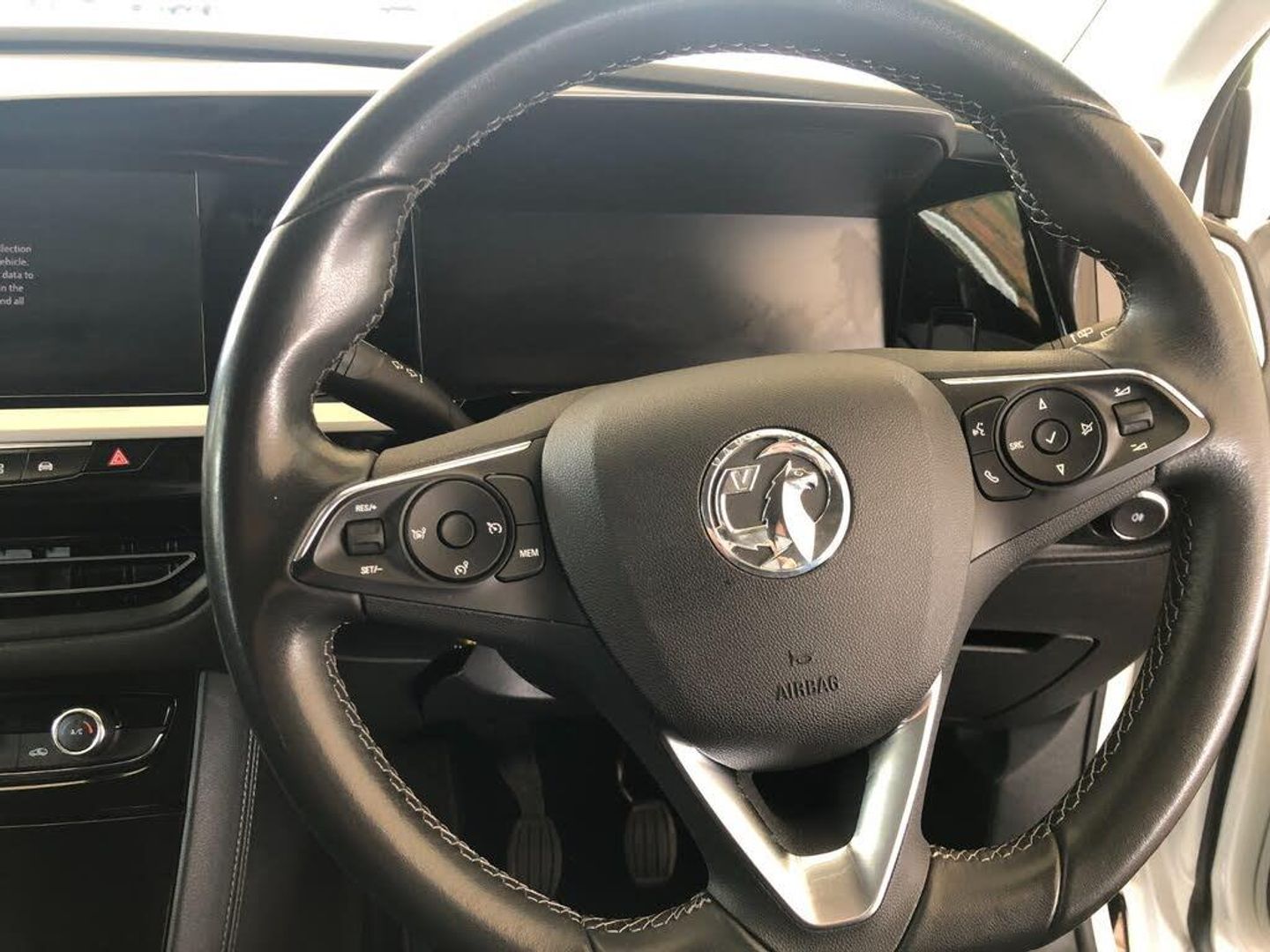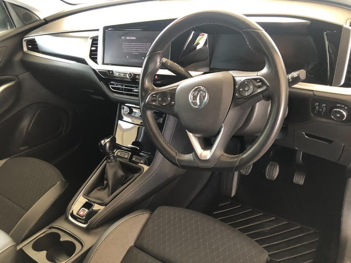 12" colour digital cluster, 180 degree rear view camera, Central facia display with digital clock, outside air temperature and audio information, Cruise control with speed limiter, Digital fuel gauge with low fuel level warning light, Digital rev counter, Digital speedometer, Digital water temperature gauge with warning light, Driver drowsiness alert system, Driver information - Total mileage, service indicator, oil life, Gearshift up/down indication light, Lane departure warning system, Lane keep assist, Lights on audible warning, Multi function trip computer - Trip odometer, vehicle range, average speed and fuel economy, instantaneous fuel economy and driving time, Multimedia navi pro with 10" colour touch+ sat nav+AM/FM/DAB radio, bluetooth audio streaming/mobile phone portal, Apple carplay/Android auto, USB, Speed sensitive electric power assisted steering, Speed sign recognition, Vauxhall connect including Ecall and connected services, Six speaker - four front + two rear, Steering wheel mounted audio/phone/cruise controls, 3rd brake light, Automatic lighting control, Automatically dimming anti dazzle rear view mirror, Black door mirrors, Black side window trim, Body colour door handles, Carbon black door claddings, Collapsible windscreen wipers, Dark tinted rear side and tailgate windows, Door mirror puddle light, Door to door illumination, Electrically adjustable and heated power door mirrors (wide-angle on drivers side) with automatic timed cut-off, Electrically operated front and rear windows with safety auto reverse and one touch up/down facility, Front/rear bumper and wheel arches in carbon black exterior color, GRANDLAND Carline name badge in - High gloss black, Hazard warning lights, Heated rear screen with timed cut off, High beam assist, High gloss black protective front and rear skid plates with C shape bumper inserts, High gloss black roof rails, High level centre rear brake light, Intermittent rear window wash/wipe, LED daytime running lights, LED Headlights, LED tail lights, Manual headlight beam levelling, Rain sensor windscreen wipers, Rear side wing doors, Rear spoiler, Reversing light, Shark fin aerial, Side protection mouldings, Side window demist vents, Soundproof insulated windscreen, Tinted windows, Upper and lower bumper design, Vauxhall brand griffin badge in front and rear in high gloss black, Vauxhall plate door sill cover, Vizor front grille, Welcome lighting, Windscreen demist vents, 12V electrical accessory socket in front, 3 bench rear seats in 2nd row, 3 spoke flat bottom leather steering wheel with satin chrome effect bezel, 4 way electric driver lumbar support, 4 way manual adjustable driver seats with height, reach and backrest, 60/40 split folding rear seat, Advanced predictive logic control system using a sun sensor, Ambient centre console downlighter, Anti submarining ramps in front seats, Automatic air direction and fan speed with manual override, Black premium leather-effect side bolsters, Charcoal filter, Chrome effect interior door handles, Cosmo 1 Harlekin curitiba seats, Covered storage compartment in centre console and in driver armrest, Driver ergonomic active front seat, Driver's centre armrest, Dual zone electronic climate control, Four adjustable facia vents, Front door pockets with 2.6 litre capacity, Front passenger seat, Front passenger seat cushion extension, Front passenger sport style seat, Grey headliner, Height adjustable headrests, Illuminated controls, Illuminated driver/passenger sunvisors, Illuminated luggage area + Ambient lighting in front doors, Interior courtesy light operated by door switches, ISOFIX on front passenger and rear outer seats, Luggage compartment cover, Reach + rake adjustable steering column, Rear centre seat head restraint, Rear door pockets with 1.8 litre capacity, Rear passenger compartment heating ducts, Rear reading lights, Two drinks holders in centre console, Ventilated glovebox with lid, 6 Airbags - Driver and passengers front airbag, two front side impact airbag, full size curtain airbags for driver, Anti-lock braking system (ABS), Automatic emergency braking system, Child proof locks on rear doors, CSC - Cornering stability control, Deactivation switch for front passenger front and side impact airbags, Deflation detection system, Deformation zones front and rear, Dual seatbelt pretensioners on front seats, EBD - Electronic brakeforce distribution, Electronic parking brake, Electronic stability program (ESP) including traction control, Energy absorbing steering column, Engine drag torque control, Hill start assist, Hydraulic Brake Assist (HBA), Inertia reel lap and diagonal seatbelts for all seats, Load limiters on outer rear seatbelt retractors, Rear restraint seat belt pretensioner, Reinforced passenger safety cell, Side impact protection beam, Smart seatbelt reminder for front and rear seats, Tyre pressure monitoring system, Deadlocking system, Electronically protected audio equipment, Engine deadlock immobiliser, Freewheeling door locks, Key left in ignition audible warning, Locking wheel nuts, One rigid one flap-key coloured, Remote control central locking activation switch on driver door, Remote control primary foldable and additional foldable key, Remote security alarm system, Self powered alarm horn, Single horn, Theft deterent body security content and electircal child lock system, Theft deterent electrical, Visible vehicle identification number, Black door panels with black premium leather effect inserts, Dax decor facia panel with palladium medium finish, 18" 5 twin spoke high gloss black alloy wheels, Tyre inflation kit