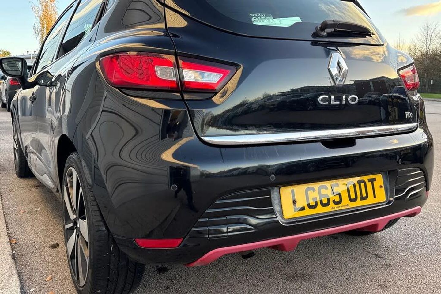 1.2L Storage Shelf Above Glovebox,12V Power Socket,17in Alloy Wheels - Desire with Black Inserts,2x Storage Spaces for 2 Cups and Miscellaneous Items near Handbrake,4L Front Glovebox,ABS - Anti Lock Brakes,Airbags - Deactivation - Front and Side - Driver and Passenger,Anti Drill Door Locks,Anti-Pinch Function on Electric Windows,Armrest - Front Centre with Storage Compartment,Automatic Headlights and Wipers,B-Pillar - Gloss Black,Body Coloured Parking Sensors - Rear,Bumpers - Body Coloured,Centre Console - Gloss Black - Dashboard Inserts - Gloss Black - Air Vent Surrounds with Matt Chrome Adjusters,Chrome Window Surrounds,Climate Control - Automatic with One Touch Demist Function and Air Quality Regulator,Clio Inscribed Under Renault Diamond Badge,Cruise Control with Speed Limiter,Dashboard - Soft Touch Dark Carbon,Daytime Running Lights - LED,Deadlocking,Door Handles - Body Coloured - Front,Door Handles - Interior Matt Chrome,Door Mirrors - Black Gloss - Electrically Adjustable and Heated,Driver Seat Belt Height Adjustable,Driver and Passenger Front - Side - Head and Thorax Airbags,EBA - Emergency Brake Assist,EBD - Electronic Brake Distribution,ESC - Electronic Stability Control,ETC - Electronic Traction Control,Eco Mode,Electric Child Safety Locks on Rear Doors Activated via a Switch on the Drivers Door Panel,Electric Windows - Front,Electric Windows - Rear,Exterior Chrome Touches - Side Door- Boot Lid Strip and Front Grille Strips,Front Dash Warning Indicator in Case of Heavy Braking,Front Fog Lights,Front Speaker Surrounds - Gloss Black with Red Bass Reflex Logo,Gear Change Indicator,Gear Knob Insert - Matt Chrome,HSA - Hill Start Assist,Handbrake Button - Matt Chrome,Handsfree Keycard with Push Button Start-Stop Function,Headlights - Halogen Double Optic with Black Surround,Headrests - Front Height Adjustable - SRP - System for Restraint and Protection,Headrests - Rear x3,Heating System with Pollen Filter,ISOFIX - Child Seat Fixing Points - Outer Rear Seats,Instrument Dial Surrounds - Matt Chrome,Lightly Tinted Windows,Lower Door Protector - Black Gloss with Chrome Insert,Power Assisted Steering - Electric Variable,RAID - Renault Anti Intruder Device,Rear Engine Badge,Rear Spoiler - Body Coloured,Rear Wiper,Remote Central Locking with Thatcham Approved Immobiliser - Thatcham Cat 2,Renault MediaNav,Seatbelt Warning Sound,Seats - 60-40 Split Folding Rear,Seats - Drivers Height Adjustment,Small Storage Area by Gear Stick for Phone-Keys,Steering Wheel - Height and Reach Adjustable,Steering Wheel - Leather with Chrome Insert,Steering Wheel Base - Gloss Black,Storage Space 1.2L - 1x Front Door,Strip Base of Bootlid - Chrome,Trip Computer,Tyre Inflation Kit,Tyre Pressure Warning Light,USB Connection,Windscreen Wipers - Variable Speed
