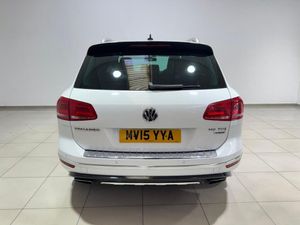 Tinted Glass - Heat Insulating Rear 90% Light Absorbing from B Pillar Backwards, 20in Alloy Wheels - Talladega, 12V Socket - 2nd Row Seats, 12V Socket - Centre Console, 12V Socket - Front Centre Armrest, 12V Socket - Luggage Compartment, 2 Zone Electronic Climate Control with Automatic Air Recirculation, 20in Alloy Wheels - Tarragona, ABS - Anti-Lock Braking System, ASR - Anti Slip Regulation, Active Rollover Protection System, Air Vent Surrounds - Chrome Trimmed, Airbags - Curtain, Airbags - Driver, Airbags - Front Passenger, Airbags - Front Passenger with Deactivation Switch, Airbags - Front Seat Side Impact, Alarm with Interior Protection, Aluminium Look Pedals, Anti-Theft Wheel Bolts, Armrest - Front Centre with Storage Compartment, Automatic Dimming Rear View Mirror, Automatic Headlight Height Adjustment, Automatic Post-Collision Braking System, Bi-Xenon 35W Dipped and Main Beam Headlights, Bluetooth Telephone Preparation for Hands Free Profile Enabled Telephones, Body Coloured Bumpers, Body Coloured Door Handles, Body Styling Kit - R-Line, Body-Coloured Door Mirrors with Integrated Indicators, CD Radio, Carpet Mats - Front and Rear, Child Security Locks in the Rear Doors Electric, Coat Hook on B Pillar, Colour Screen - 8in, Cruise Control, Cup Holders - Front x2, Cup Holders - Rear x2, DAB+ - Digital Radio Reception, Darkened Rear Light Clusters and Indicators, Dashboard - Gloss Black Panel, Daytime Running Lights - LED, Differential Lock - Electronic, Door Mirrors - Electrically Adjustable-Heated and Folding, Driver Alert System, EBD - Electronic Brake Pressure Distribution, ESP - Electronic Stability Programme, Electric Windows - Front and Rear, Electronic Engine Immobiliser, Electronic Parking Brake with Auto Hold Function, Exhaust Tailpipes - Chrome Angular, First Aid Kit and Warning Triangle, Footwell Illumination - Front and Rear, Front Fog Lights with Cornering Lights, Gloss Black B Pillar, Glovebox - Illuminated - Cooled - Lockable, HBA - Hydraulic Brake Assist, Hard Drive - 60GB, Head Restraints - Front 4-Way Adjustment, Headlight Washer System, Headlights - Automatic Range Adjustment and Dynamic Curve Function, Headlights - Dusk Sensor with Coming-Leaving Home Function, Heated Front Seats, Heated Windscreen Washer Jets, Height and Reach Adjustable Steering Column, Hill Descent Assist, Hill Start Assist, ISOFIX Child Seat Preparation, Inlays - Silver Lane, Interior Light including Two Reading Lights, Keyless Entry, Leather Trimmed Gear Knob, Load Lashing Points x4 in Luggage Compartment, Load Sill Protector, Luggage Compartment - Hooks, Luggage Compartment Cover, MDI - Multi Device Interface, Modular Rear Seat System with Sliding and Reclining Function, Multifunction Computer with 7in Colour Screen in Instrument Cluster, One Touch Indicator, Panoramic Sunroof - Electric and Sliding Glass, Parking Sensors - Front, Parking Sensors - Rear, Power Assisted Steering - Speed Sensitive, R-Line Exterior Badge, R-Line Styling Pack - Front and Rear Bumpers - Radiator Grille and Side Skirts, RNS 850 Touch Screen Satellite Navigation Radio System with Integrated Voice Control, Radiator Grille - Chrome Trimmed Louvre Inserts, Rain Sensor, Rear Centre Armrest, Rear Roof Spoiler, Rear Tail Lights and Rear Number Plate Lights - LED, Remote Unlocking for Tailgate on Drivers Side, Roof Lining - Black, Roof Rails - Matt Chrome Finish, SD Card Reader, Seatbelt Reminder, Seats - Front 6-Way Manual Adjustment, Seats - Front Lumbar Support, Side Window Surrounds - Chrome, Spare Wheel - Space Saver, Sports Suspension, Steering Wheel - Heated, Steering Wheel - Leather Trimmed & Electrically Heated, Steering Wheel - Multifunction, Steering Wheel - Paddle Shift, Storage Compartment in Dashboard Centre with Cover, Storage Compartment in Drivers Door for 1.5 Litre Bottle, Storage Compartment in Passengers Door for 1.0 Litre Bottle, Sun Visors - Illuminated Mirrors, TCS - Traction Control System, Tailgate - Electric, Tinted Glass - Heat Insulating Rear 65 Percent Light Absorbing from B Pillar Backwards, Trailer Stability Control, Tyre Mobility Kit, Tyre Pressure Monitoring System - Electronic