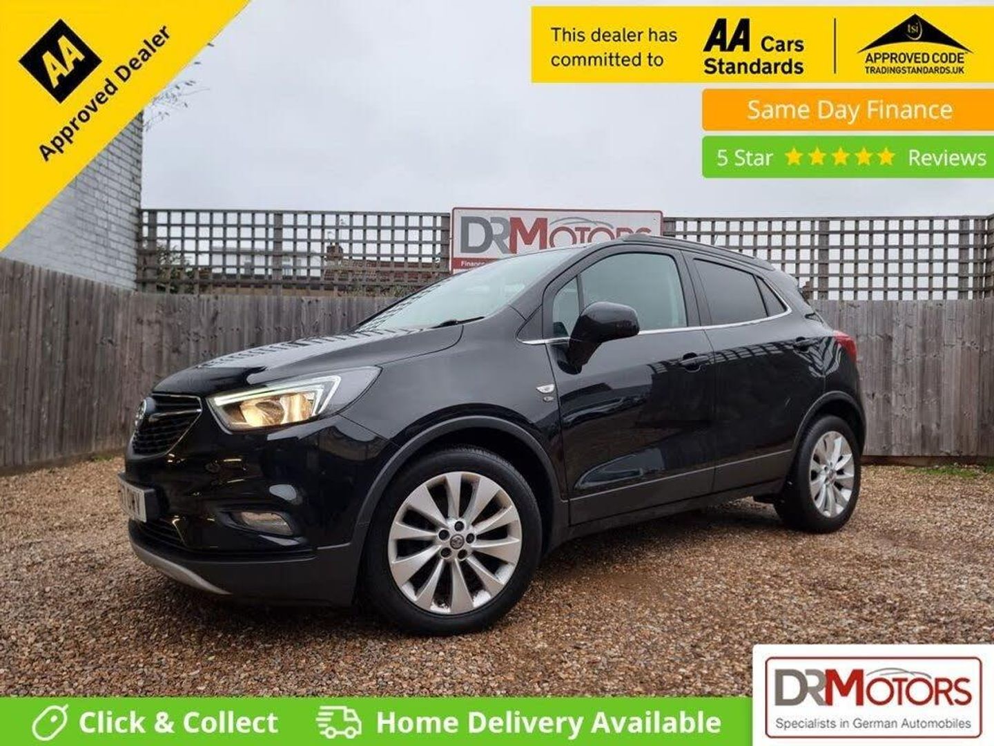 VAUXHALL MOKKA X 1.4i Turbo Elite Nav SUV 5dr Petrol Manual Euro 6 – NEW YEAR SPECIAL OFFER - 2 YEARS NATIONWIDE GOLD WARRANTY This outstanding Mokka X comes with 18 months Nationwide Gold Warranty included in the price and has had just 1 former keeper from new. It is ULEZ compliant and presented in excellent condition inside and out. With a full service history comprising 9 Services, MOT valid until December 2026, and 2 keys, this vehicle has clearly been very well maintained. The heated leather seats, heated steering wheel, sat nav, Bluetooth handsfree, and DAB radio create a premium driving experience. It also features front and rear parking sensors, cruise control, 18-inch alloy wheels, privacy glass, USB/AUX connectivity, and offers impressive fuel efficiency with low running costs. This spacious 5-door SUV provides great boot space and comes in a highly desirable colour combination. Offering excellent value for money, we also provide finance options—please contact us for details. DR Motors proudly stocks over 150 DR Approved used cars on site, and we are recognised as a CarGurus Top Rated Dealer for 2020, 2021, and 2022. Debit cards are accepted. Please note an admin fee of £149 applies to all vehicles. You can pay now and drive away, and although every car includes a 6-month Nationwide Gold Warranty, upgrades are available: 1-year Gold Warranty for £399 or 2-year Gold Warranty for £599. All vehicles are fully Experian HPI clear, and part exchanges are welcome. Viewings are by appointment only; please call our Sales Manager Jason on 07858 818 903. Deposits can be taken to secure the car. Every effort has been made to ensure accuracy, but please confirm any important details with a salesperson. DR Motors is proud to be both a Trading Standards Approved Garage and an AA Approved Dealer, reflecting our commitment to quality and customer satisfaction. Each car also includes 12 months free AA Breakdown Cover. For finance information, please visit our website: drmotors.co.uk.