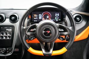 12V Accessory Socket, 19in Front and 20in Rear Alloy Wheels - Sport 10 Spoke, 3x Handling Modes - Normal - Sport - Track, 7in Portrait Touch Screen Monitor, AM-FM Radio, Adaptive Damping S Tune, Alarm, Anti-Lock Braking System - ABS, Audio Media Player, Automatic LED Daytime Running Lights and Rear Lights, Automatic Lights and Rain Sensor, Black Seatbelts, Bluetooth Telephony, Body Colour Door Mirror Casings and Door Mirror Arms, Body Colour Roof and Cantrails, Brake Calipers - Black with Silver McLaren Logo, Central High Mounted Stop Lamp, Cruise Control, DAB Radio, Dark Palladium Aero Blades, Dark Palladium Diffuser, Dark Palladium Exterior Door Inserts, Dark Palladium Front Splitter, Dark Palladium Rear Deck, Dark Palladium Rear Spoiler, Dark Palladium Service Cover, Dark Palladium Side Intakes, Dark Palladium Side Skirts, Dihedral Doors, Driver and Passenger Airbag, Dual Function LED Rear Fog - Reverse Light, Dual Zone Climate Control, Dynamic Electronic Stability Control - DESC, Electrically Folding Heated Door Mirrors with Dip in Reverse Functionality, Electrochromatic Dipping Rear View Interior Mirror, Electronic Immobiliser, Electronic Parking Brake, Exposed Engine Bay, Exterior and Interior Secondary Mechanical Door Releases, Follow Me Home Headlights, Front Side Airbags, Full LED Headlights with Automatic Headlight Levelling, Hill Hold Assist, IRIS Navigation, Keyless Entry and Lock - Keyless Start, Launch Control, Manual Adjust Steering Column - Reach and Rake, Manual Sports Seats, McLaren 4-Speaker Audio System, McLaren Brake Steer, On-Board Memory, One Touch Electric Windows, Pirelli P ZERO Corsa Tyres, Power Steering, Rear Window Heating Element on Glass-Rear Window, Satin Chrome Brightwork, Silver Badge Set, Silver Exhaust Finisher, TPMS - Tyre Pressure Monitoring System and Tyre Temperature Gauge, Textile Headlining, Tilt Sensors, Tonal Stitch, Traction Control - TC, Trip Computer, USB Connectivity and AUX In, iPod-iPhone Integration