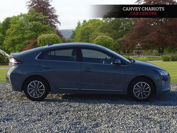 100 Percent MapCare Programme - 10 Years of Map Updates, 12V Power Outlet, 16in Alloy Wheels, ABS - Anti-Lock Brake System, Air Conditioning - Driver-Only Mode, Air Conditioning - Dual Zone Climate Control, Airbags - Front - Front Side - Curtain and Drivers Knee, Arm Rest - Front with Storage, Automatic Dimming Rear View Mirror, Automatic Headlights with Dusk Sensor, Autonomous Emergency Brake, BlueLink, Bluetooth Connectivity, Centre Console - Tablet Storage, Charging Cable - 7 Pin Type 2, Charging Cable - Emergency 3 Pin Connector - ICCB, Cruise Control - Smart Adaptive Speed Control, Cup Holders - Front, Daytime Running Lights - LED, Deadlocks, Door Mirror Puddle Lights, Door Mirrors - Body Coloured, Door Mirrors - Electric Adjustment and Heated with Power Fold, Door Scuff - Chrome with IONIQ Logo, Drive Mode Select - Gear Lever, Driver Attention Alert - DAA, Drivers Seat Height Adjustment - Manual, Drivers Supervision Instrument Cluster with TFT Display - 7in, ECO DAS - ECO-Driving Assistant System, Electric Parking Brake with Auto Hold Function, Electric Power Steering with Variable Drive Modes, Electric Windows - Front and Rear, Electric Windows - Front with Anti-Trap and One Touch Controls, Electronic Stability Control - ESC, Exterior Door Handles - Body Coloured with Chrome Insert, Fog Lights - LED Rear, Front Head Restraints - Vertical and Horizontal Adjustment, Front Passenger Airbag De-Activation Switch, Front Passengers Seat - Heated, Front Seat Back Pockets - Drivers Seat, Front Seat Back Pockets - Passengers Seat, HAC - Hill-Start Assist Control, Head Restraints - Rear with Vertical Adjustment, Headlights - Higher Beam LED, Headlights - Lower Beam LED, Heated Rear Windscreen, Heated Steering Wheel, Indicator Lights - Door Mirror - LED, Interior Door Handles - Chrome Effect, Interior Light - Centre, Interior Light - Luggage Compartment, Interior Light - Map Reading Lights, Lane Departure Warning System with Lane Keeping Assist, Leather Wrapped Steering Wheel, Luggage Net, Paddle Shift Gear Change, Parking Sensors - Rear, Parking System - Rear Camera and Guidance System, Passenger Seat Height Adjustment - Manual, Phone Connection - Android Auto, Phone Connection - Apple CarPlay, Positioning Lights LED, Radiator Grille - Active Air Flap, Radio - RDS and Digital Radio - DAB, Rear Air Vents in Centre Console, Rear Bumper - Two-Tone, Rear Lights - LED, Rear Spoiler with Integral LED Brake Light, Rear View Monitor, Remote Central Locking, Seats - Drivers Electric Lumbar Support, Seats - Heated Drivers, Side Body Moulding, Smart Key - Keyless Entry with Engine Start-Stop Button, Solar Glass with Windscreen Shade Band, Speakers - Upgraded Infinity Sound System - 1 Centre - 2 Tweeters - 2 Front - 2 Rear - 1 Subwoofer and 1 Ext. Amp, Split Folding Rear Seats - 60-40, Steering Wheel with Audio - Phone and Cruise Controls, Sun Visors with Driver and Passenger Illuminated Vanity Mirrors, Sunglasses Holder, Touchscreen Satellite Navigation - 10.25in, Tyre Pressure Monitoring System with Individual Tyre Display, Tyre Repair Kit, USB - Drivers Arm Rest - Charging Only, USB and AUX Connections - Front, Window Surround - Chrome Finish, Windscreen Washer Fluid Sensor and Warning Indicator, Wireless Phone Charging Pad, eCall