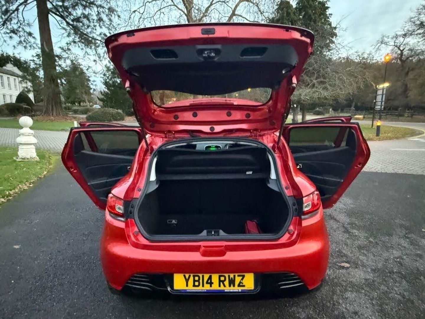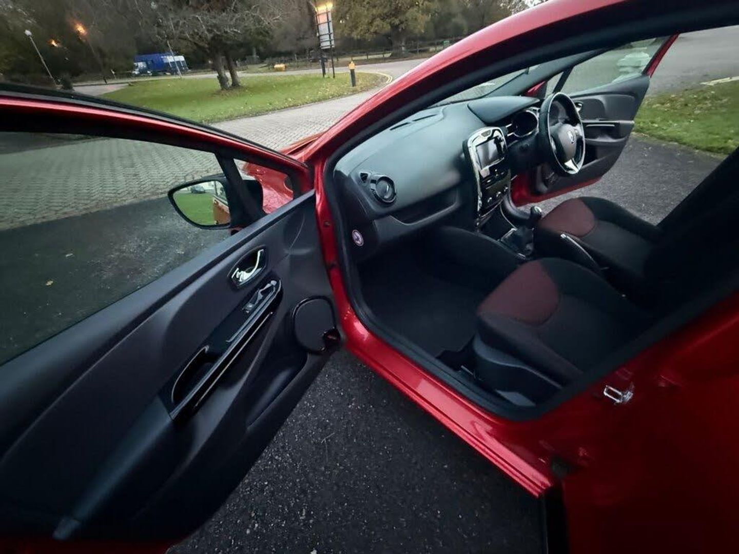 1.2L Storage Shelf Above Glovebox, 12V Power Socket, 16in Alloy Wheels - Passion Black, 16in Alloy Wheels - Passion Chrome, 2x Storage Spaces for 2 Cups and Miscellaneous Items near Handbrake, 4L Front Glovebox, 7in Touch Screen, ABS - Anti Lock Brakes, Air Conditioning - Manual, Airbags - Driver, Airbags - Front Lateral, Airbags - Front Passenger, Airbags - Front Passenger Deactivation, Airbags - Thorax, Anti Drill Door Locks, Arkamys 4x20W Radio and Handsfree Technology Renault Bass Reflex System, Automatic Windscreen Wipers with Rain Sensors, Bluetooth Connectivity, Bumpers - Body Coloured, Bumpers - Front - Gloss Black with Chrome Surround, Centre Console - Gloss Black, Chrome Instrument Dial Surrounds, Cruise Control with Speed Limiter, CSV - Understeer Control, Dashboard - Soft Touch Dark Carbon, Deadlocking, Door Handles - Body Coloured - Front, Door Handles - Interior Chrome, Door Handles - Interior Matt Black Surround, Door Mirrors - Electrically Adjustable - Manual Folding and Heated, Door Mirrors - Gloss Black Housing, EBA - Emergency Brake Assist, EBD - Electronic Brake Distribution, Electric Windows - Front with Anti Pinch, ESC - Electronic Stability Control, ETC - Electronic Traction Control, Exterior Chrome Touches - Side Door- Boot Lid Strip and Front Grille Strips, Fingertip Remote Control, Flame Red, Front Fog Lights, Front Speaker Surrounds - Gloss Black with Red Bass Reflex Logo, Fuel Computer, Gear Change Indicator, Gear Gaiter Surround - Gloss Black, Gear Knob - Chrome, Gloss Black Front and Side Air Vents Surrounds, Gloss Black Surround Front Speakers with Logo, Handsfree Keycard with Push Button Start-Stop Function, Handsfree Technology and Renault Bass Reflex System, Headlights - Automatic On, Headlights - Black Surrounds, Headlights - Daytime Running Lights, Headrests - Front Height Adjustable, Headrests - Rear x3, Heating System with Pollen Filter, HSA - Hill Start Assist, ISOFIX - Child Seat Fixing Points - Outer Rear Seats, Lane Change Function, Lightly Tinted Windows, Lower Door Protector - Black Gloss with Chrome Insert, Navteq Nav n Go Satellite Navigation, On-Board Multimedia System, Passenger Dashboard Storage with Anti-Slip Carpet, Power Assisted Steering - Electric Variable, Push Button Start, RAID - Renault Anti Intruder Device, Rear Diffuser - Black Gloss, Rear Spoiler - Body Coloured, Remote Central Locking, Renault MediaNav Intergrated on Board Multimedia System inc 7in Touch Screen, Seatbelt Warning Sound, Seats - 60-40 Split Folding Rear, Seats - Drivers Height Adjustment, Seats - Folding Passengers, Small Storage Area by Gear Stick for Phone-Keys, Soft Touch Dashboard, Steering Wheel - Height and Reach Adjustable, Steering Wheel - Leather with Gloss Black Insert, Storage Space 1.2L - 1x Front Door, Strip Base of Bootlid - Chrome, Tyre Inflation Kit, Tyre Pressure Monitoring System, USB Connection, Window Surrounds - Black Rubber