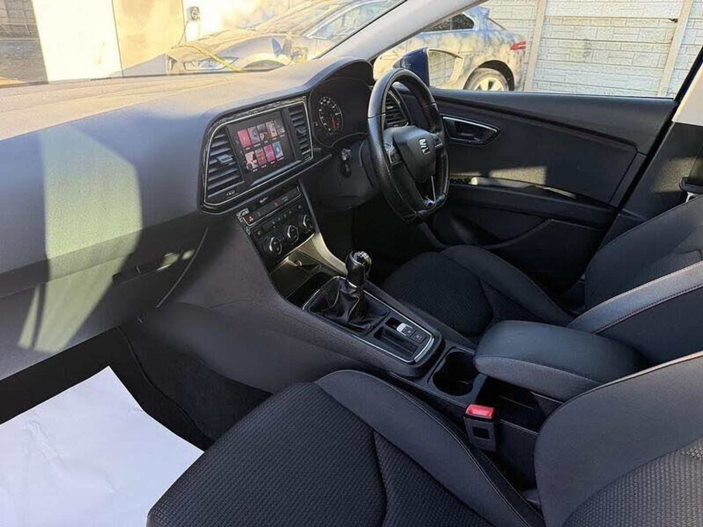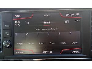 'Lights On' Reminder warning buzzer, 8" touch screen, Bluetooth Handsfree Phone Connection, Low fuel warning light, Outside temperature gauge, Rear parking sensors, Remote fuel flap release, RPM counter, SEAT Drive profile, SEAT logo boot release, Service interval indicator, Trip computer, Voice control system, XDS electronic differential lock, 2 USB ports, 2 USB sockets in rear, 2x SD card slot, Auxiliary input socket, Bluetooth audio streaming, DAB Digital radio, Radio/CD + MP3, Steering wheel mounted audio/phone controls, Aluminium front door sills, Black grille with chrome surround, Body colour door handles, Body coloured bumpers, Body coloured door mirrors, Dark tinted rear windows, Electric adjustable/heated/folding door mirrors, Electric front/rear windows with one touch/auto up/down, Electric headlamp adjustment, Exclusive FR front and rear bumpers, High gloss black finish B and C pillars, LED daytime running lights, LED front fog lights, LED Headlights, LED indicators in door mirrors, LED number plate light, LED tail lights, Rear wash/wipe, Reverse activated kerb-view adjustment on passenger's door mirror, Twin exhaust pipes, 12v power point in centre console, 3 height adjustable rear headrests, 60/40 split folding rear seat, Active head restraints, Additional heating and ventilation outlet in rear of centre console, Boot net, Chrome loading sill, Double boot floor, Driver seat height adjust, Driver seat lumbar adjustment, Dual zone climate control, Dust/pollen filter, Front adjustable head restraints, Front armrest with storage box, Front cupholders x 2, Front seat and rear pockets, Front sports seats, Front/rear floor mats, Height/reach adjust steering wheel, Illuminated door sills, Illuminated glovebox, Instrument lighting with brightness control, Leather handbrake, Luggage compartment cover, Luggage tie-down hooks, Passenger seat height adjuster, Passenger seat lumbar adjust, Perforated leather steering wheel with red stitching + gear knob, Rear top tether child seat ISOFIX attachment, Rear window curtains, Storage box under drivers seat, Storage boxes under front seats, 3 point seatbelts on all rear seats, ABS + traction control, Active pedestrian safety system, Child proof door locks, Collision mitigation braking system, Curtain airbags, Driver/Front Passenger airbags, Drivers knee airbag, Electronic parking brake with auto hold, ESP+EBA, Front assist including city emergency braking, Front seatbelt pretensioners, Front Seatbelt warning, Front side airbags, Hill hold control, Passenger airbag deactivation system, Tyre pressure monitoring system, 2 folding remote keys with window open/close function, Engine immobiliser, Locking wheel bolts, Remote central locking + deadlocks, Volumetric alarm with back up horn, Chrome interior trim