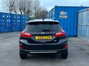 Graham Marsh Car Sales Ltd are delighted to offer this superb 2021 Ford Fiesta 1.0T EcoBoost MHEV Vignale Edition Hatchback 5dr Petrol Manual Euro 6 (s/s) (155 ps) finished in gleaming black with the usual Vignale refinements including power steering, electric windows, remote central locking, driver and passenger airbags, ABS, ESP, matt black alloy wheels, cruise control, AUX/USB, Bluetooth, sat nav, reversing camera, DAB radio, front and rear parking sensors, privacy glass, full Vignale leather interior, heated front seats, auto headlights and auto wipers, offering truly outstanding value for money.