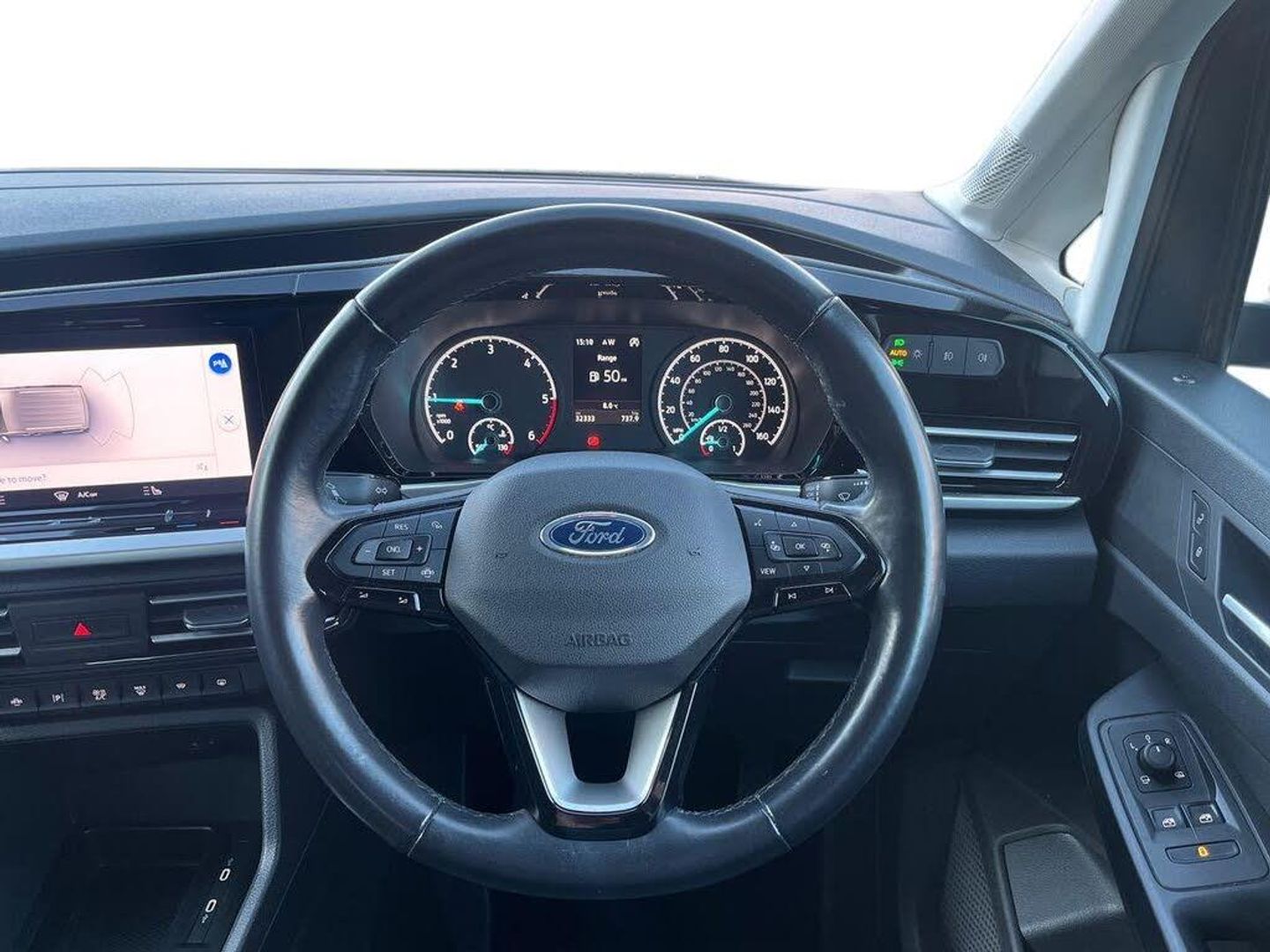 Analogue cluster, Brake wear indicator, Driver impairment monitor, E-call, Embedded modem, Mobile phone interface, PAS, Stop/start system with regenerative braking, Trip computer, 50 litre fuel tank, Diesel particulate filter, Standard duty alternator, Standard duty battery, Media hub 2x USB and rear USB Unit, Steering wheel mounted radio controls, Adaptive cornering lamps includes fog lamp, Auto headlamps On/off, Automatic windshield wiper, Black coloured exterior mirror finish, Black grille with chrome surround, Body coloured exterior door handles, Body coloured exterior tailgate handles, Body coloured plastic front bumper, Body coloured plastic rear bumper, Dark tinted rear privacy glass, Daytime running lights, Dual power fold heated mirrors, Dual sliding side load doors, Electric rear window defroster, Electric windshield defroster, Electrochromic inside mirror, Fixed 3rd row LHS and RHS window, Fixed rear window, Follow me home headlamps, Front bumper with chrome insert, High mounted stop lamp, Intermittent variable windshield wiper, Liftgate rear cargo door, Rain sensor, Rear registration plate light, Rear window wash/wipe, Roof rack silver painted rails, Standard green glass windscreen, Tail lamp - Level 1, Weather protection seals, 2 front row cupholders, 2nd row rear overhead courtesy light, 3 seat bench in 2nd row, 3x hooks on trim panel storage, 4 tie down hooks, A/C Refrigerant - HF01234YF, Air register Chrome, B Pillar assist handle, Base luggage compartment trim, Bubble fabric upholstery, Carpet load floor cover, Carpet partial floor cover, Center console level 4, Driver seat rotary recliner, Front door trim panel - Level 2, Front interior grab handles, Front seat tray table, Front throw in carpet floor mats, Glovebox lid with light, Header courtesy light with maplight, Height adjustable headrests, IP open storage above driver area, LED Load compartment light, Misfuel protection cap, Overhead storage shelfs, Painted instrument panel, Passenger seat rotary recliner, Passenger sunvisor with mirror, Pollen filter without carbon filter, Power point plug 2 off, Reach + rake adjustable steering column, Rear luggage compartment bag hook, Recirculation heater, Regular size washer tank, Second row 60/40 folding seats, Sensico gearshift knob, Sensico steering wheel, Side/rear door trim panel - Level 1, Single driver sunvisor illuminated with mirror, Single front passenger seat, Standard design foot pedal, Storage in front cab doors with bottle holder, Storage in rear doors with bottle holder, Driver assistance package - Tourneo Connect/ Grand Tourneo Connect, High acoustics package - Tourneo Connect/ Grand Tourneo Connect, Ice feature pack 4 - Tourneo Connect/ Grand Tourneo Connect, Restrain device pack 3 - Tourneo Connect/ Grand Tourneo Connect, Seat pack 18 - Tourneo Connect/ Grand Tourneo Connect, 2nd row rear seat belts, 4 wheel disc brakes, Black seat belts, Brakes - (HLA)Hill launch assist/TC, Driver, passenger and 2nd row rear seat belt reminder, Electric parking brake with auto hold function, Electronic emergency brake assist, Emergency brake light flashing, ESC with ABS, Front 2 way head restraints, Front active seat belts and manual adjuster seat belts, Front airbag restraint and passenger airbag restraint, Front side airbags, Isofix hard point attachment, Passenger airbag deactivation system, Post collision braking, Rear 2 way head restraints, Rear removeable package tray, Tire pressure sensors, 2 remote flip keys, Child proof rear door locks, Configurable Unlocking 2, Engine immobilizer - Securilock, Keyless entry and start with double locking, Locking wheel lug nuts, Power door dead locks and enabled door automatic relocking, Thatcham category 1 alarm B, 16" Pearl grey alloy wheels with centre wheel hub caps and standard tread, Front tire and rear tire tread, Less wheel cover, Tyre repair kit