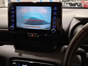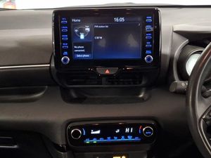 16" Anthracite machined alloy wheels, Adjustable speed limit with speed warning, Hybrid energy display, Reversing camera, Smartphone integration with Apple CarPlay and Android auto, Tailgate, Voice recognition, Vehicle Stability Control (VSC), 8" Multimedia display touch screen, USB connection, 4 speakers, Acoustic windscreen glass, Auto windscreen wipers, Automatic headlights, Painted chequered front grille, Rain sensor, Rear privacy glass, Turning signal integrated indicators in door mirrors, 60/40 split folding rear seat, Auto air conditioning, Fabric upholstery, Isofix seat fixing, Supplemental Restraint System (SRS) 8 airbags: Driver & passenger's airbags, dual side curtain airbags, side impact airbags, front centre airbag, Toyota Safety Sense 2, Precollison + Night time Pedestrian & Cyclist Detection, Lane Trace Assist, Auto High Beam, Intelligent ACC & Road Sign Assist, 2x Master key