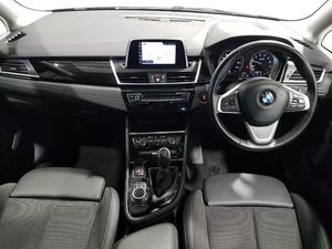 Active Guard incl speed limiting and lane departure functions with auto steering, and front collision warning with brake intervention, Attentiveness assist, Automatic tailgate operation, BMW Online services, BMW remote services, BMW Teleservices, Check Control warning system for monitoring of lights and door/luggage compartment open warning, Cruise control with brake assist, Lights on warning by audio warning signal when ignition is switched off, Personal Profile - automatic lock when driving away selectable, Real time traffic information, Service interval indicator, Speed limiter, 2 USB sockets in rear, BMW professional radio/CD/MP3, Follow me home headlights, Green tinted heat protection glazing, Halogen headlights, Heated windscreen washer jets, LED daytime running lights, Rain sensor including auto headlights activation, Rear window wiper integrated under roof spoiler, Automatic two zone climate control air conditioning, Child seat ISOFIX attachment for two outer rear seats and front passenger seat with anchorage points, Front sports seats with electric side bolster adjustment, Manual 40:20:40 split folding rear seat with of 60:40 sliding bench, Multi-function controls for steering wheel, Three spoke sport leather steering wheel, Extended storage pack - 2 Series Active/Gran Tourer