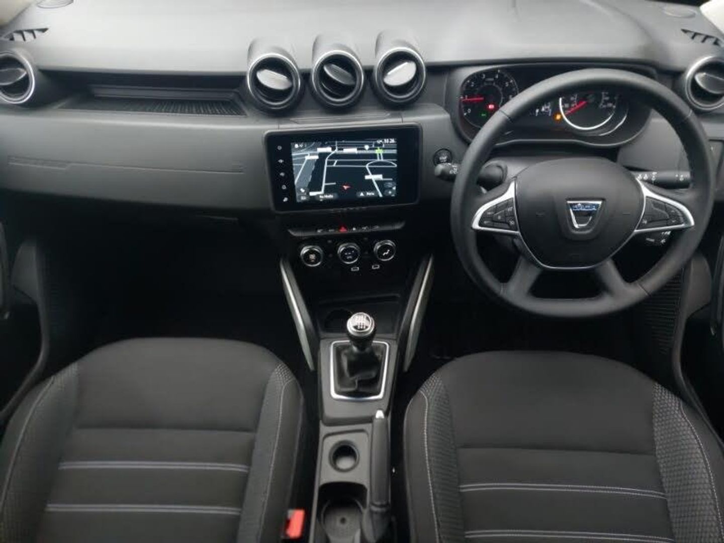 Stop/start system, Rear parking sensors and reverse camera, Multi view camera, Electric power assisted steering, Eco mode, eCall emergency system, Dacia instrument cluster, Cruise control and speed limiter, 4x4 monitor with altimeter, Dacia plug and radio/MP3/USB/bluetooth/DAB/steering wheel control, 8" Media Navigation with wireless smartphone replication, Automatic air conditioning, Heated seats, Keyless entry, 17" Alloy wheels, Matt black central console fascia, Dark carbon central console surround, Piano black decorative insert on door panels