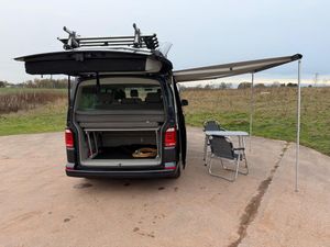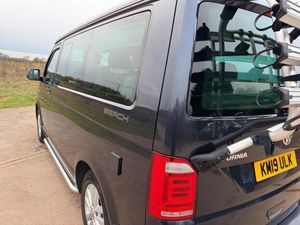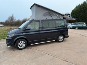 We are proud to offer this rare 7 Seater California Beach, States 7 seats in Log Book, 150BHP DSG Automatic, 58000 miles with FSH x6 Services to Include New Cam Belt Kit plus Oil Pump Belt and crank seal, and Water Pump plus 2 x New Tyres, and New Front Discs and Pads. 1 Owner Plus VW, Cruise Control, VW 4 Bike Rack, Awning, Chrome Side and Front Bars, Heated Folding Mirror, Detachable Tow Bar, Apple play DAB Stereo, Air Conditioning, Comfort Mattress, Rotating Seats, Stow Away Table and Chairs, Alloy Wheels, Full Book Pack with Large File of Receipts, Black Out Pull Down Blinds with front Genuine Curtains, Service History as Follows:- VW 13436m 11/2020, VW 21358m 03/2022, ECS 27816m 02/2023, Fixter 03/2024 Service Sheet, Fixter 46844m 03/2025, Then Fully Serviced by Ourselves using Genuine VW Parts from TPS to include new Cam belt Kit and Water pump at 58223m 11/2025, All Receipts and a full Book pack with both Remote Keys, Please see over 90 Photos plus a detailed walk around video on my website www.sportsandprestigeoflichfield.co.uk Part Exchange and Finance Available.-Fshx6 7Seats 4Bike Rack-Awning-Please see our Website for More Photos and a Video at www.sportsandprestigeoflichfield.co.uk