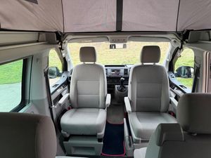 12v and 230v UK Socket, 16in Alloy Wheels - Clayton, 2 Remote Folding Keys, 230-V Supply with Charging Feature for Vehicle Batteries, 3-point Seatbelts on all Seats, ABS - Anti-Lock Braking System, Additional Exterior Dust Seals, Airbags - Driver and Front Passenger Side and Front Curtain with Seatbelt Tensioners and Passenger Deactivation, Anti-Theft Alarm System with Interior Monitoring in Cab - Backup Horn and Tow-Away Protection, Anti-glare Adjustable Rear-view Mirror, Armrest - Driver and Single Passenger Seat, Auxiliary Coolant Heater, Awning Rail - Black with Tent Adapter, BAS - Brake Assist System, Battery - Uprated 420A - 75Ah, Bluetooth Hands Free Set, Body Coloured - Door Mirrors and Door Handles, Body Coloured Bumpers Front and Rear, Child Lock for Sliding Doors in Passenger Compartment, Chrome-Plated Strip on Air Intake of Charge Air Cooler, Climatic Cab A-C - Semi-Automatic with Manual Controlled Passenger Compartment Heating, Composition Colour DAB Plus Radio, Dashboard - Dimmable Illumination, Daytime Running Lights, Digital Clock, Dipping Breakaway Interior Rear View Mirror, Door Stowage - Two Compartments with Bottle Holder able to Accommodate 1.5 Litre Drinks Bottles, Driver Alert System, Driver Exterior Door Mirror - Aspherical, EBD - Electronic Brakeforce Distribution, ESP - Electronic Stability Programme, Electric Hook-up on Near-side Rear, Electric Windows - Front, Electronic Differential Lock - EDL, Fabric Window Blinds - Black Out - in Cab and Passenger Compartment, First Aid Kit and Warning Triangle, Fixed Side Windows to Near-Side Rear and Off-Side Front and Rear, Floor-Mounted Sliding Rail System, Folding Chairs Stowed in Tailgate x2, Folding Table Stowed in Sliding Door, Fresh Air Intake System with Activated Charcoal Canister, Front Assist including City Emergency Braking without Adaptive Cruise Control, Galvanised Body - Steel, Glovebox - Lockable, Grab Handles on A-Pillars, Grille - High-Gloss Black with Chrome Mouldings, Headlight Range Adjustment, Headlights - Halogen, Headlining - Moulded and Trimmed In Fabric, Heat Insulating Glass with Green Tint in Cab and Living Area, Height-Adjustable Head Restraints on All Seats, Hill Hold Assist, ISOFIX and Top Tether Child Anchorage for Caravelle-California in 2nd to 3rd Rows, ISOFIX and Top Tether Child Seat Anchorage - 2nd to 4th Rows, Interior Light, Interior Light Concept for Camper in Passenger Compartment, Intermittent Windscreen Wiper Control, Leather Steering Wheel - Gearknob and Gaiter, Locking Wheel Bolts, Lower Bed with Sleeping Mat, Luggage Compartment - Under Lower Bed Extension, Lumbar Support for Driver and Single Passenger Seats - Manual, Manual Side Sliding Door - Drivers Side, Mounting Rails on the Roof - Preparation for Movable Roof Rack, Multi-Function Display Plus, Passenger Exterior Door Mirror - Convex, Plastic Entrance Step Protection, Plastic Side Mouldings, Plastic Tailgate Sill Protection., Pop-Up Aluminium Roof - Manually Operated in Body Colour, Rear Fog Light, Rear Heated Window with Window Wiper and Washer System, Rear Tail Lights - LED, Seatbelt Tensioners - Driver and Front Passenger Seats, Seatbelt Warning Buzzer and Light For Driver, Seats - Two Seater Bench - 2nd Row - Movable and Foldable into a Bed, Seats - Without Height Adjustment for Driver and Single Passenger Seats, Second Battery - Operating Voltage 12v, Side Windows - Front and Rear Including Load-Passenger Compartment on Driver Side, Sliding Side Window to Near-side Front of Living Area, Sliding Window in Front and Fixed Window in Rear in Load-Passenger Compartment on Passenger Side, Smokers Package, Soft Fold-Away Grab Handles on Roof Frame, Standard Suspension and Shock Absorbers, Steel Spare Wheel with Original Equipment Tyre, Step Illumination with California Logo for Cab Doors and Side Sliding Door, Storage Box to Left of Two-Seat Rear Bench, Storage Net on Lower Dash Passenger Side, Swivel Seat on Drivers Side with Lumbar Support - Not Height Adjusta