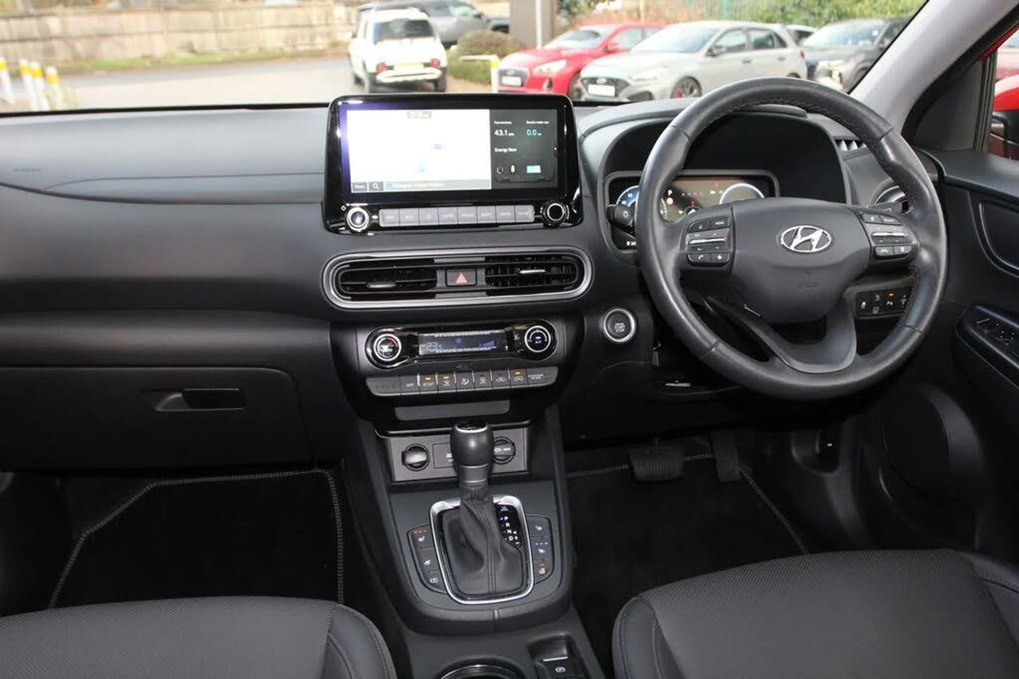 Sat Nav, Touchscreen, Bluetooth, Advanced Safety, Parking Sensor, Headup Display, Apple CarPlay/Android Auto, Cruise Control, Automatic Headlights, Panoramic / Sunroof, AC/Climate, Ambient Lighting, Heated Seats, Heated Steering Wheel, Isofix, Leather Interior, Start/Stop, Keyless Entry, Alloys;Buy a used Hyundai Kona 1.6 GDi Hybrid Ultimate 5dr DCT - This 2023 KONA h GDi Ultimate presents an exceptional ownership proposition with its incredibly low mileage of just 3597 miles. With 26 months warranty & full service history with ourselves..