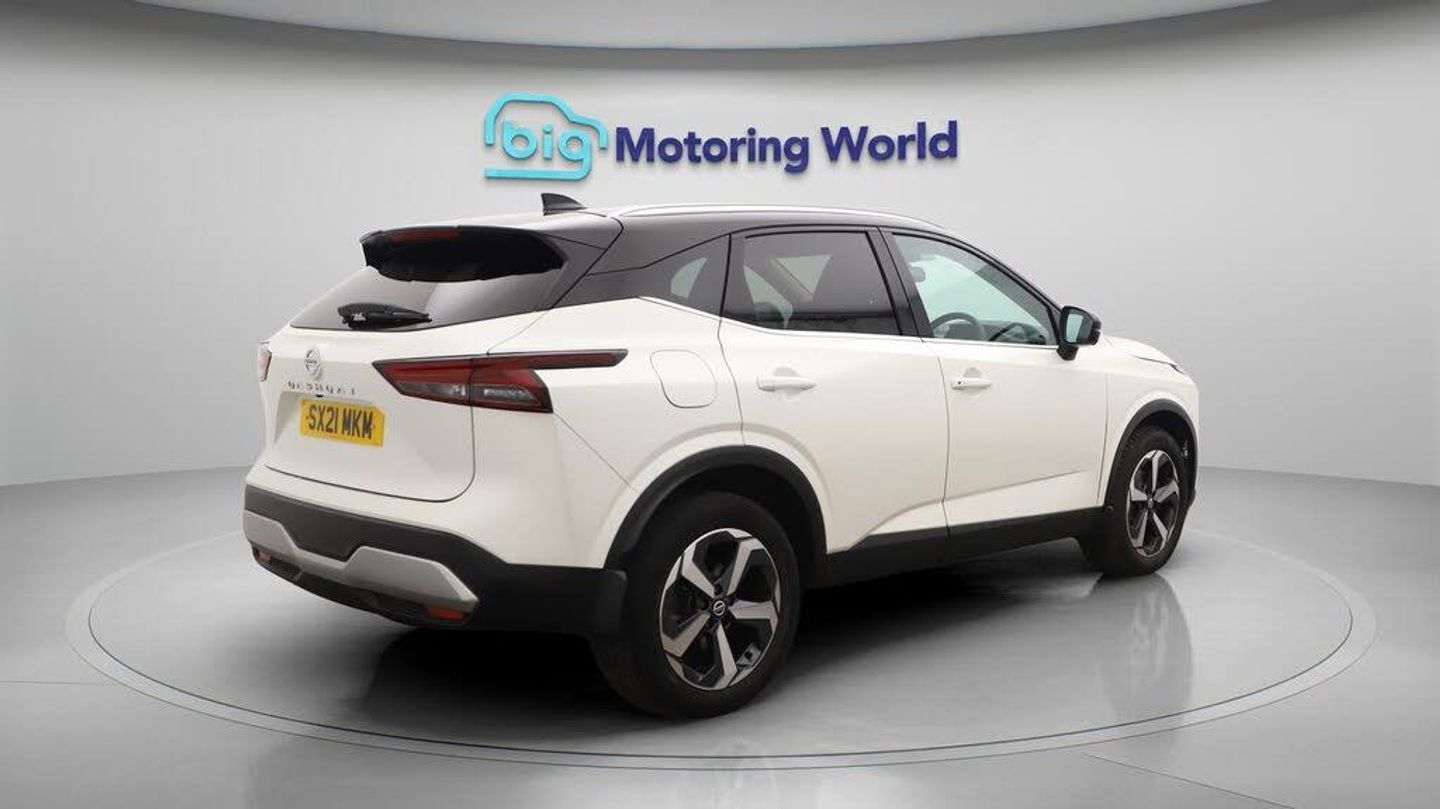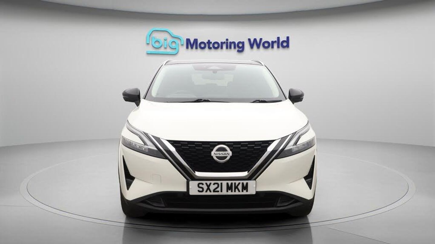 Panoramic Roof,18'' alloy wheel-Our Nissan Qashqai is finished in White. Specification includes a range of fantastic features including Panoramic Roof, 18'' alloy wheels, Apple CarPlay, Satellite Navigation, Privacy Glass, Rear View Camera, Bluetooth, Blind Spot Assist, Parking Sensors, Ambient Lighting Specification information is supplied by CAPHPI and may vary to the actual car. This data does not form any part of a buying contact. Please check specification prior to purchase in-store. The MOT is valid until August 2026, visit bigmotoringworld.co.uk for more photos, a 360 tour, service history and a free HPI report.Were BIG on peace of mind and this White Nissan Qashqai has completed our comprehensive 200 point inspection and passed all checks. Its ready for you to drive away with immediate collection in-store. We include a 90-day warranty as standard plus an option to extend for up to 3 years.Reserve this car exclusively for you, safely and securely at bigmotoringworld.co.uk, with a fully refundable £99 deposit. Test drive before you buy, with no commitment, no hassle and a completely haggle free experience. Still searching and want to see thousands more cars? We are BIG on choice with over 8000 cars to choose from.Visit our award winning web site bigmotoringworld.co.uk.Were Big Motoring World and were BIG on what matters to you.-Multi Award Winning Website & Car Supermarket of the year WINNER 2018. Call now.