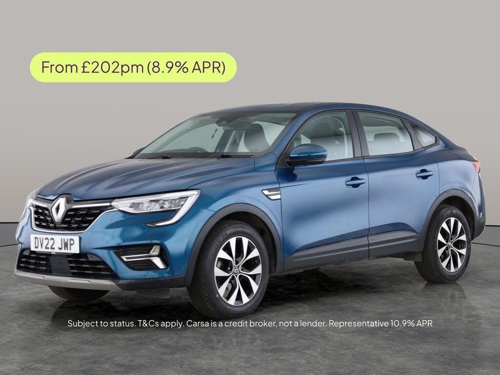 Discover the Renault Arkana, a stylish blue SUV with advanced features like Apple CarPlay and a reversing camera for effortless driving. Enjoy crisp LED headlights, lane departure warning, and traffic sign recognition for added safety. Front and rear parking sensors make parking a breeze, while cruise control and climate control enhance every journey. Stay connected with Bluetooth and travel in comfort with this striking automatic Arkana. 3 services recorded, last serviced on 13/02/2025 at 11,640 miles. MOT to 01/10/2026. Visit our website for service history, online valuation, full vehicle specification plus multiple images. Any feature/option specified here is from 3rd party data. We cannot guarantee the accuracy of any specification supplied by a 3rd party. We recommend that you physically check the specification of the vehicle on site prior to purchase. This information does not form part of the buying contract. Terms & Conditions apply. We have over 2,000 cars available from our 10 national branches, check our website to see all our stock. Our Trustpilot rating is 4.4/5 with over 9,000 reviews.