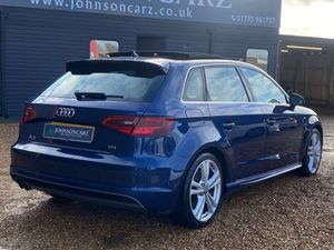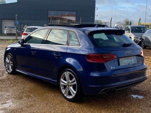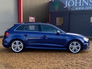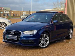 A STUNNING LOOKING EXAMPLE AUDI A3 2.0 TDI S LINE 5DR S TRONIC IN BLUE, 1 FORMER KEEPER, SERVICE HISTORY, PANORAMIC ROOF, £35 ROAD TAX FOR THE YEAR, CURRENT MOT NO ADVISORIES, HALF LEATHER SEATS, BLUETOOTH, CRUISE CONTROL, DAB RADIO, PRIVACY GLASS, SAT NAV, SPARE WHEEL, AUTOMATIC,