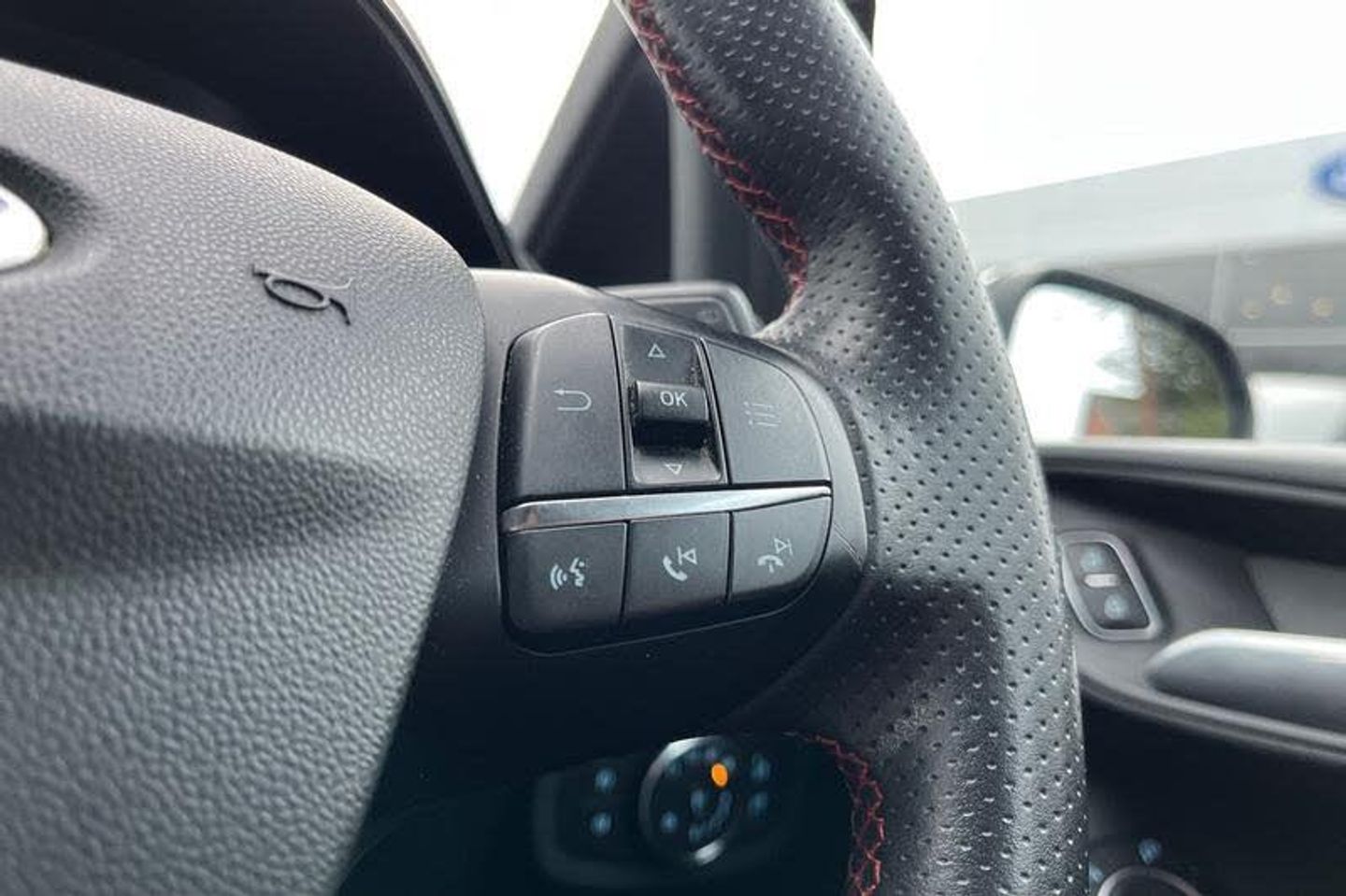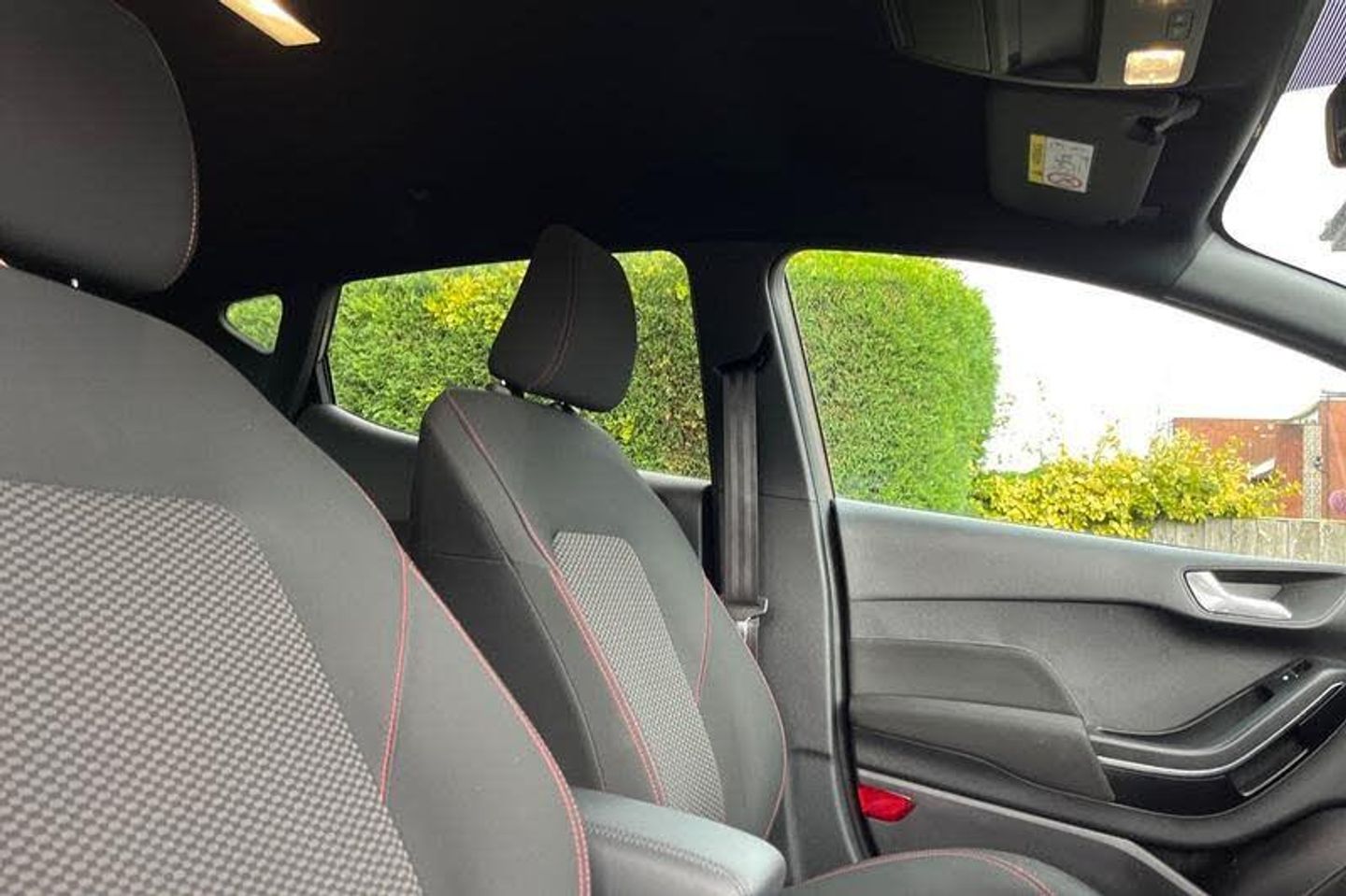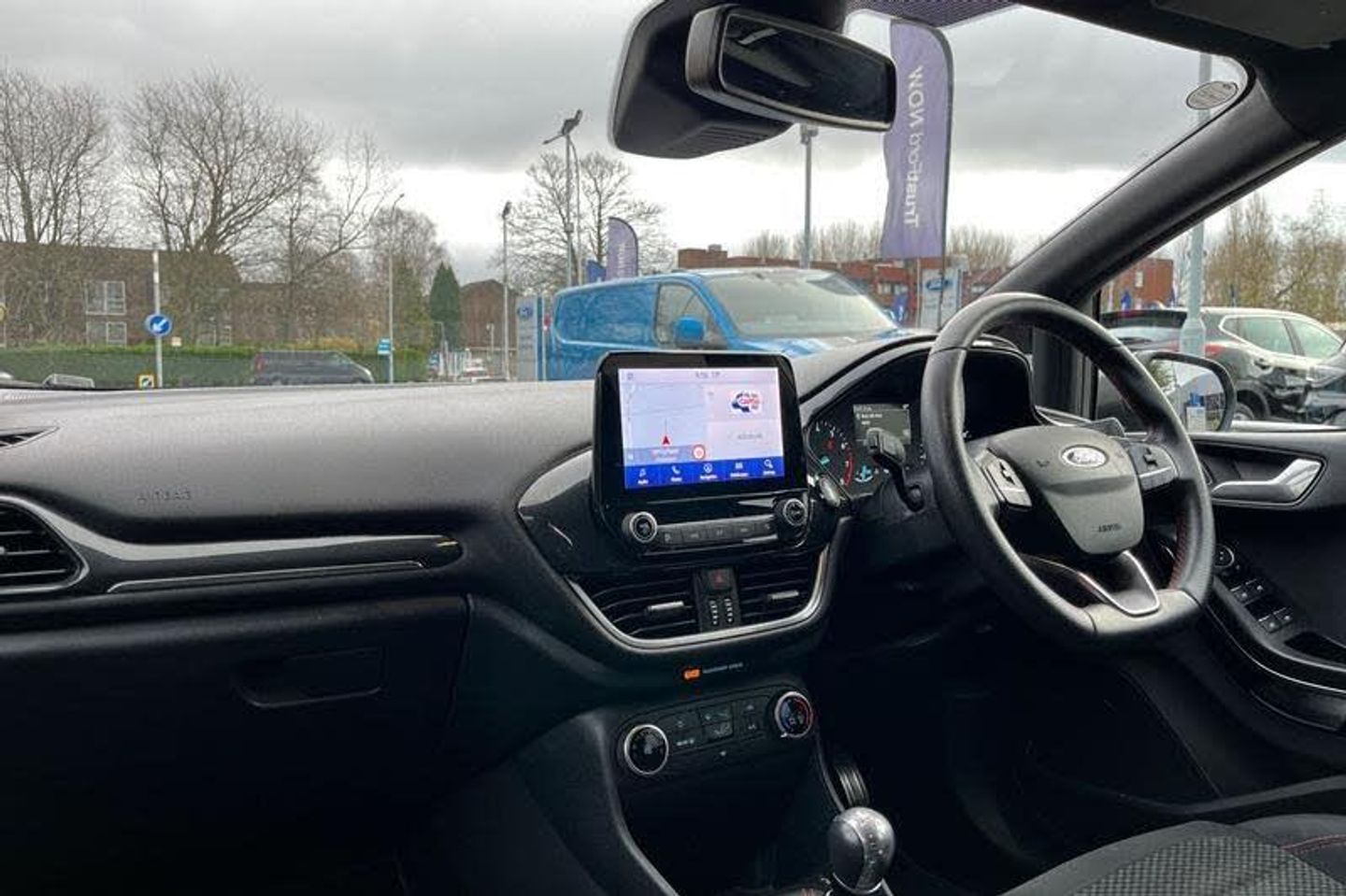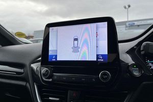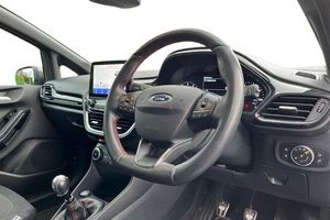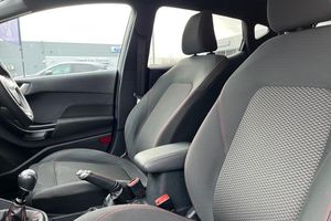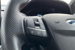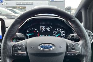 Bluetooth system, Electric power steering, Ford easy fuel, Ford SYNC 3 Navigation system incl 8 touchscreen, 7 speakers, FordPass connect, Apple carplay, android auto, voice control and emergency assistance, Rear parking distance sensors, Trip computer, Body colour bumpers, Body colour door handles, Body colour large rear spoiler, Body coloured electrically operated and heated door mirrors with side indicators, Cornering front fog lights, Electric front windows/one touch facility, Electric rear windows, LED Night signature to rear lights, Power foldable door mirrors with puddle lights, Quickclear heated windscreen, Rain sensing wipers and auto dimming rear view mirror, Rear privacy glass, Rear wiper, Unique ST-Line upper grille & full bodystyling kit with ST-Line wing badges, 12V Accessory socket in centre console, 3 spoke flat bottomed leather steering wheel, 60/40 split folding rear seat, Adjustable head restraints, Black headlining, Boot carpet, Centre console with armrest and illuminated cupholders, Chrome inner door handles, Cloth upholstery, Footwell illumination, Front floor mats, Front map reading lights, Front seat and rear pockets, Height adjustable driver's seat, Illuminated glovebox, LED ambient lighting, Load area light, Manual air conditioning, Overhead console with sunglasses holder, Pollen filter, Rake/reach adjustable steering wheel, Sensico leather steering wheel/gear knob/handbrake, Sports front seats, Sports pedals, 3 point seatbelts on all rear seats, ABS+EBA, Curtain airbags, Driver and passenger airbags, Drivers knee airbag, Electronic stability control with hill start assist, Front passenger airbag deactivation, Front side airbags, Seatbelt warning, Two tone horn, Tyre pressure monitoring system