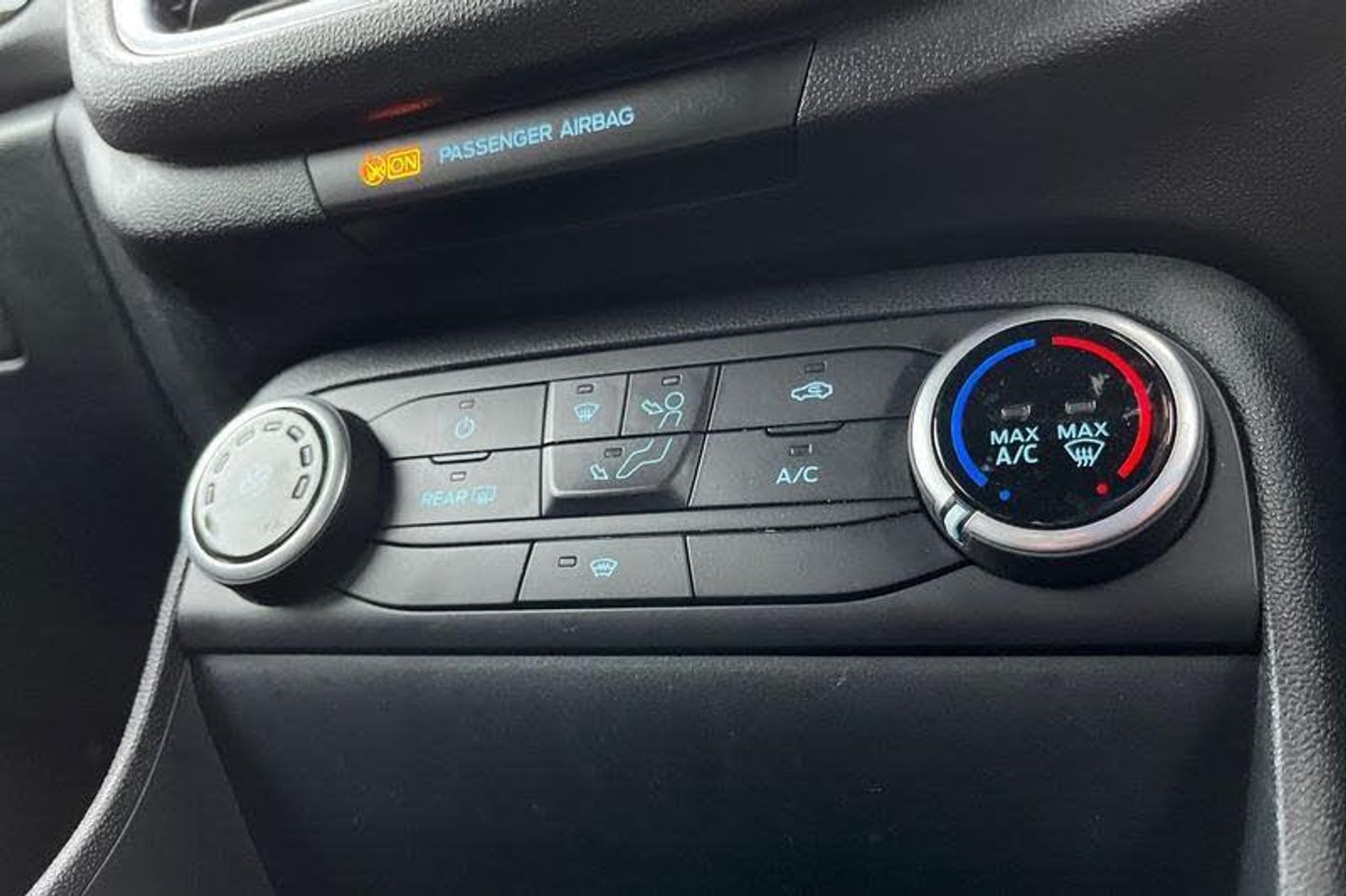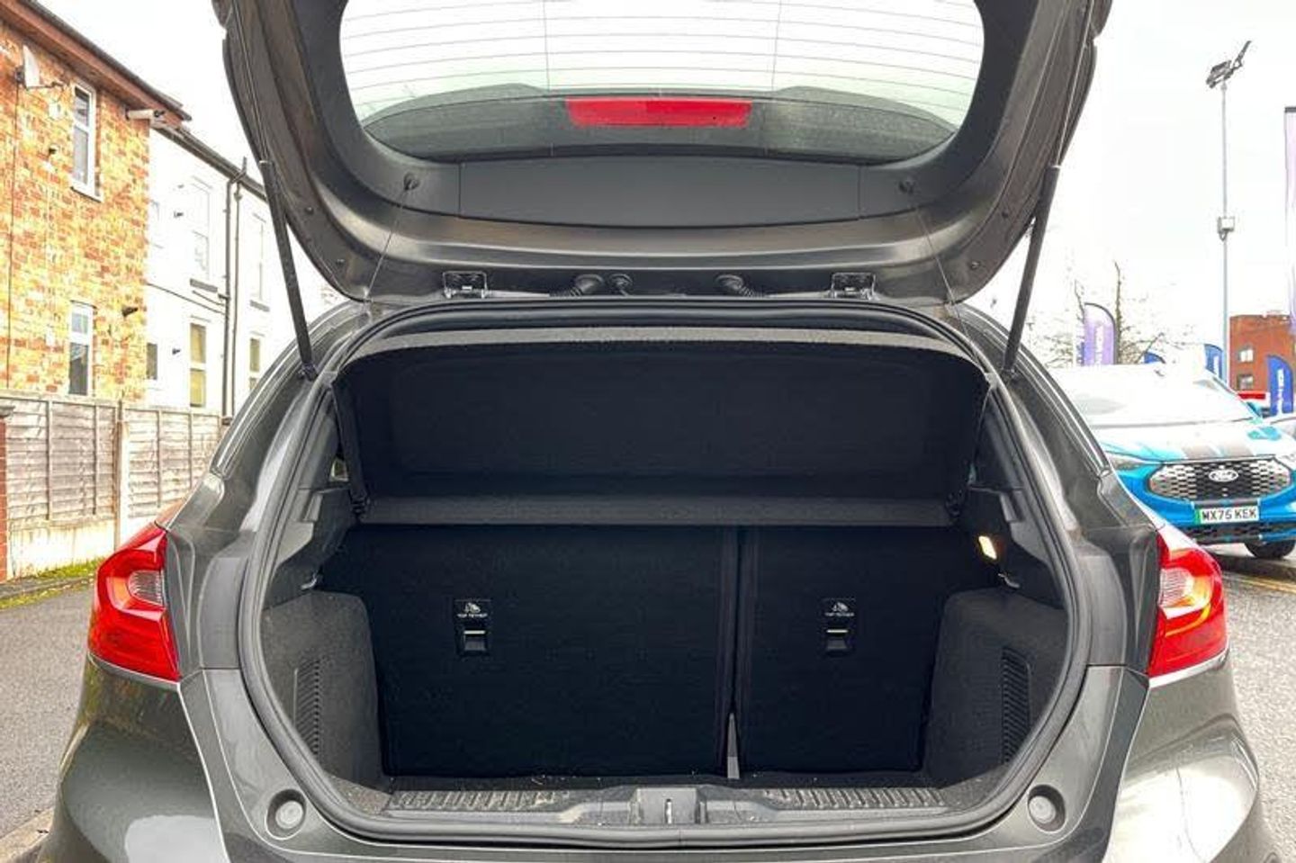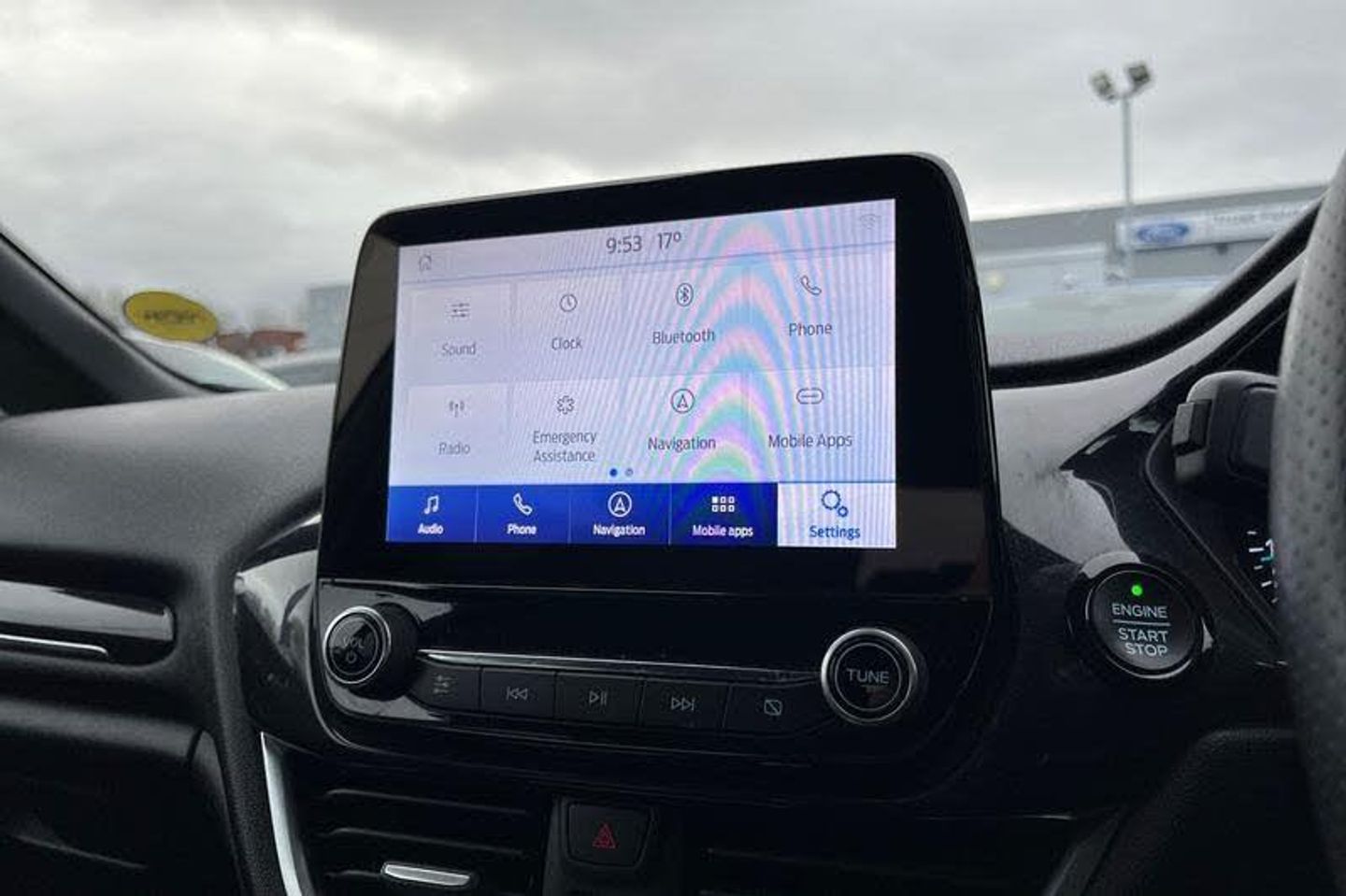 Bluetooth system, Electric power steering, Ford easy fuel, Ford SYNC 3 Navigation system incl 8 touchscreen, 7 speakers, FordPass connect, Apple carplay, android auto, voice control and emergency assistance, Rear parking distance sensors, Trip computer, Body colour bumpers, Body colour door handles, Body colour large rear spoiler, Body coloured electrically operated and heated door mirrors with side indicators, Cornering front fog lights, Electric front windows/one touch facility, Electric rear windows, LED Night signature to rear lights, Power foldable door mirrors with puddle lights, Quickclear heated windscreen, Rain sensing wipers and auto dimming rear view mirror, Rear privacy glass, Rear wiper, Unique ST-Line upper grille & full bodystyling kit with ST-Line wing badges, 12V Accessory socket in centre console, 3 spoke flat bottomed leather steering wheel, 60/40 split folding rear seat, Adjustable head restraints, Black headlining, Boot carpet, Centre console with armrest and illuminated cupholders, Chrome inner door handles, Cloth upholstery, Footwell illumination, Front floor mats, Front map reading lights, Front seat and rear pockets, Height adjustable driver's seat, Illuminated glovebox, LED ambient lighting, Load area light, Manual air conditioning, Overhead console with sunglasses holder, Pollen filter, Rake/reach adjustable steering wheel, Sensico leather steering wheel/gear knob/handbrake, Sports front seats, Sports pedals, 3 point seatbelts on all rear seats, ABS+EBA, Curtain airbags, Driver and passenger airbags, Drivers knee airbag, Electronic stability control with hill start assist, Front passenger airbag deactivation, Front side airbags, Seatbelt warning, Two tone horn, Tyre pressure monitoring system