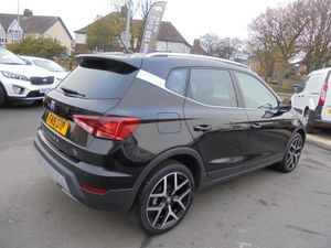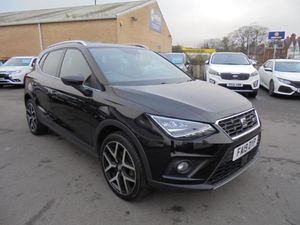 SEAT Arona1.0 TSI FR Sport Euro 6 (s/s) 5drSAT NAVThis 2019 SEAT Arona TSI FR Sport boasts an MOT valid until September 2026, offering excellent peace of mind for the next owner. This stylish compact SUV is powered by an efficient 1.0 litre Euro 6 petrol engine, and its last service was completed on 22nd September 2025 at 49,830 miles. Inside, you'll find a host of desirable features including Bluetooth audio streaming with a handsfree system, the Connectivity Pack Plus with wireless phone charging, and rear parking sensors to aid manoeuvring. The FR Sport trim also includes dual zone climate control for personalised comfort and automatic headlights for convenience., , The SEAT Arona TSI FR Sport offers impressive fuel economy, achieving a highlight of 48 miles per gallon, which indicates it is more economical than many similar vehicles. Furthermore, its low CO2 emissions also position it favourably against other cars in its class. This combination of efficiency and modern features makes the 2019 Arona a practical and appealing choice for everyday driving., Next MOT due 26/09/2026, Last serviced on 22/09/2025 at 49,830 miles, Black Cloth interior, 5 seats, Black, 18in Alloy Wheels - Performance, Active Front Head Restraints, Alarm with Back-Up Horn, Anti-Lock Braking System - ABS, Anti-Theft Roof Antenna, Auto Dimming Rear View Mirror, Auto-Headlights, Automatic Warning Lights, Bi-Colour Roof, Bluetooth Audio Streaming with Handsfree System, Body-Coloured Door Handles, Child