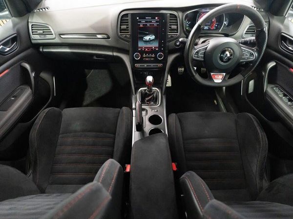 1-3 - 2-3 Folding Rear Bench Seat, 12V Power Socket - Front, 4CONTROL - 4 Wheel Steering System, 7in TFT Digital Speedometer with Colour Matrix with Renault Sport Custom Display, Airbags - Curtain Front and Rear, Airbags - Driver and Passenger Adaptive Front, Airbags - Lateral Chest-level Side for Driver and Front-Seat Passenger, Apple CarPlay and Android Auto, Automatic Full Central Locking When in Motion, Bluetooth Radio with Voice Recognition - USB and Jack Sockets - 4.2in Display - 4 Speakers, Chrome Strip on Door Handles, Chrome Window Surrounds, Chrome-plated Renault Sport Front Door Sills, Climate Control - Automatic Dual Zone, Cruise Control with Speed Limiter, Custom Front Bumper Widened with F1 Gun Metal Gray Blade - Honeycomb Front Grille with RS Badging, Custom RS Black Harmony Roof Ceiling, Custom Rear Bumper Widened with Functional Diffuser and Central Exhaust, Daytime Running Lights with LED Light Guides and 3D Effect, Door Mirrors - Electrically Operated - Heated - Folding, ESC Electronic Stability Control and ABS with Emergency Brake Assist, Electric Windows - Front One Touch, Electrochromatic Rear View Mirror, Extra Tinted Windows and Rear Windscreen, Front Centre Armrest with Storage, Front and Rear Door Panel Ambient Lighting, Front and Rear LED Ceiling Lights, HSA - Hill Start Assist, High Centre Console with Cup Holder and Closure Flap, ISOFIX - Child Seat Fixing Points - Outer Rear Seats, Keycard - Hands Free, LED Indicators in Door Mirrors, Manual Parking Brake, One-Touch Electric Rear Windows, PURE VISION Full LED Front Headlights with Integrated C-Shape Turn Signal, Parking Sensors - Rear, Power Assisted Steering, R-Link 2 Multimedia System - 7in Touchscreen, RS Custom Braking System, RS Dashboard and Doors Moulding, RS Drive Activation Button, RS Extended Front Wheel Arches with Air Grilles and Renault Sport Badging, RS Extended Rear Wheel Arches, RS Nappa Perforated Leather Steering Wheel and Gear Lever Knob with RS Badging, RS Rear Spoiler, RS Sills-Skirt with Flat Bottom Effect, RS Sports Seats with Integrated Headrests, RS VISION Full LED 3 Function Headlights - Fog - Cornering - Long Range, Rain and Light Sensors, Rear LED 3D Edge Light Daytime Running Lights, Renault MULTI-SENSE - Choice of Driving Modes - 5 Driving Modes including Race Mode, Renault Sport Welcome Sequence Upon Opening the Vehicle with Brand Light, Seats - Drivers Height Adjustment, Shiny Black Door Mirrors, Sport Chassis, Steering Wheel - Height and Reach Adjustable, Tyre Pressure Monitoring System, Tyre Repair Kit, 19in Alloy Wheels - Interlagos Diamond-cut, Cup Chassis Pack, R-Link 2 Multimedia System - 8.7in Touchscreen, Titanium Grey, Visio System