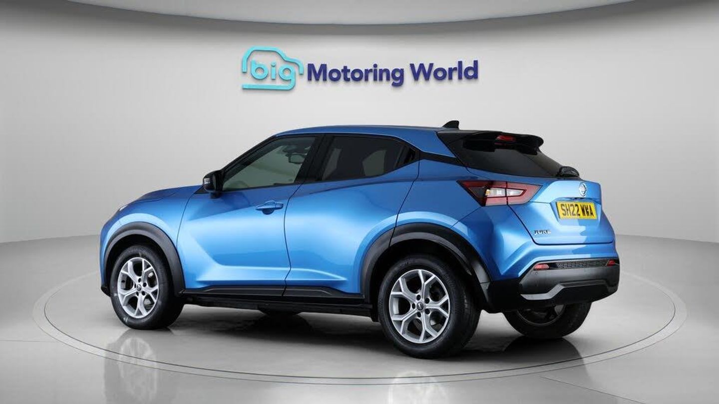 Satellite Navigation,Privacy G-Our Nissan Juke is finished in Blue. Specification includes a range of fantastic features including Satellite Navigation, Privacy Glass, Rear View Camera, Bluetooth, Parking Sensors, Ambient Lighting, Cruise Control, Climate Control, Voice Control, DAB Radio Specification information is supplied by CAPHPI and may vary to the actual car. This data does not form any part of a buying contact. Please check specification prior to purchase in-store. The MOT is valid until November 2026, visit bigmotoringworld.co.uk for more photos, a 360 tour, service history and a free HPI report.Were BIG on peace of mind and this Blue Nissan Juke has completed our comprehensive 200 point inspection and passed all checks. Its ready for you to drive away with immediate collection in-store. We include a 90-day warranty as standard plus an option to extend for up to 3 years.Reserve this car exclusively for you, safely and securely at bigmotoringworld.co.uk, with a fully refundable £99 deposit. Test drive before you buy, with no commitment, no hassle and a completely haggle free experience. Still searching and want to see thousands more cars? We are BIG on choice with over 8000 cars to choose from.Visit our award winning web site bigmotoringworld.co.uk.Were Big Motoring World and were BIG on what matters to you.