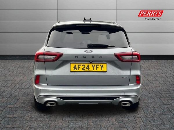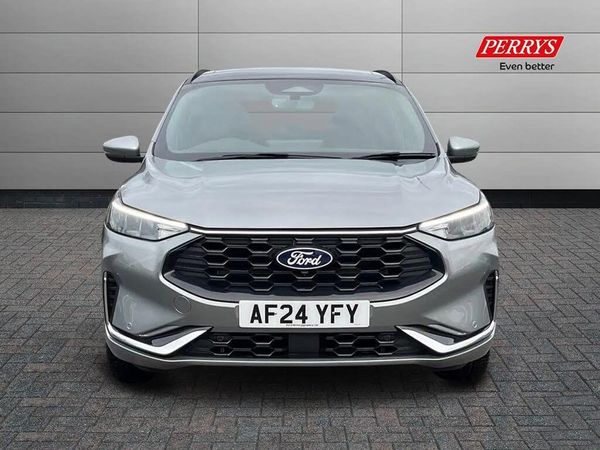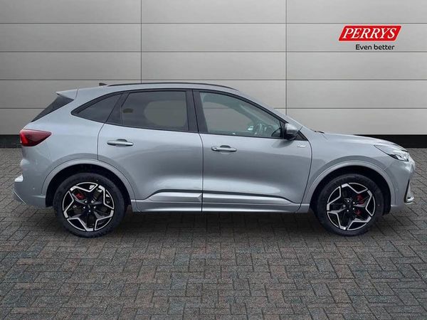 12.3" digital colour instrument cluster,360 degree camera,Clear exit assist,Cross traffic alert with active braking,e-Call (emergency call),Ford easy fuel,Ford SYNC 4 Navigation with 13" touchscreen, DAB radio, emergency assistance, Andriod Auto/Apple CarPlay, 5G modem & Ford Pass connect,Front and rear parking sensors,Hands free power tailgate,Lane centering assist,Lane keeping aid with lane departure warning,Power assist steering,Selectable drive modes,Service interval indicator,Sports suspension,B&O premium audio system with 10 speakers, subwoofer and 2 USB ports,Auto headlamps with high and low beam,Black roof rails,Body colour bumpers,Front LED fog lamps,Large rear spoiler,LED daytime running lights,LED rear lights,LED third brake light,Pop out door edge protectors,Power front/rear windows with global close,Power heated folding door mirrors with puddle lights, memory function and camera,Power opening panoramic roof,Quickclear heated windscreen,Rain sensing wipers,Rear privacy glass,Rear side wing doors,Rear wiper,ST-Line body styling kit,2nd row sliding seats,Electronic automatic temperature control (EATC),Front and rear head restraints,Partial premium touch sensico upholstery,Rear centre head restraint,Single front passenger seat,Sports seats,Driver assistance pack - Kuga Auto,Winter pack - Kuga,3x3 point rear seatbelts,Airbags - front driver/passenger, front and rear curtain,Drivers knee airbag,Dynamic brake support,Electronic stability control (ESC) and ABS,Evasive steering assist,Ford MyKey Gen 2 safety system,Manual child proof rear door locks,Pre collision assist with autonomous emergency braking,Rear seat Occupancy alert,Red brake calipers,Tyre pressure monitoring system,Engine immobiliser,Keyless entry and Ford power start button (Keyless start),Locking wheel nuts,Remote powered central double locking doors,Thatcham category 1 alarm,Solar Silver