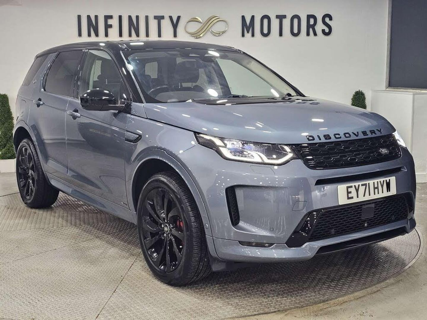 Infinity Motors presents the Land Rover Discovery Sport, a true icon of British engineering and luxury. This stunning vehicle, finished in a sleek Blue colour, is a testament to both style and performance.