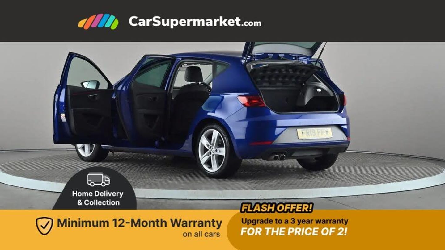 Parking Sensors, Android Auto, Apple CarPlay, Bluetooth, Sat Nav, 17" Alloy Wheels;This 2019 SEAT Leon TDI FR boasts a FREE 12-month warranty, a clear vehicle history and an MOT valid until June 2026, offering peace of mind for its next owner. This model was last serviced on 25th June 2025 at 58,809 miles. The FR trim level includes desirable features such as dual zone climate control for personalised comfort and front and rear parking sensors to aid manoeuvrability.