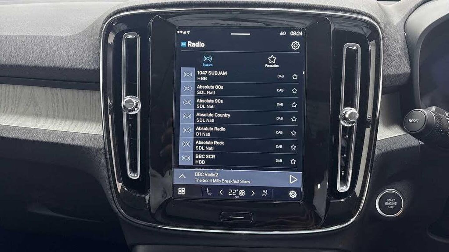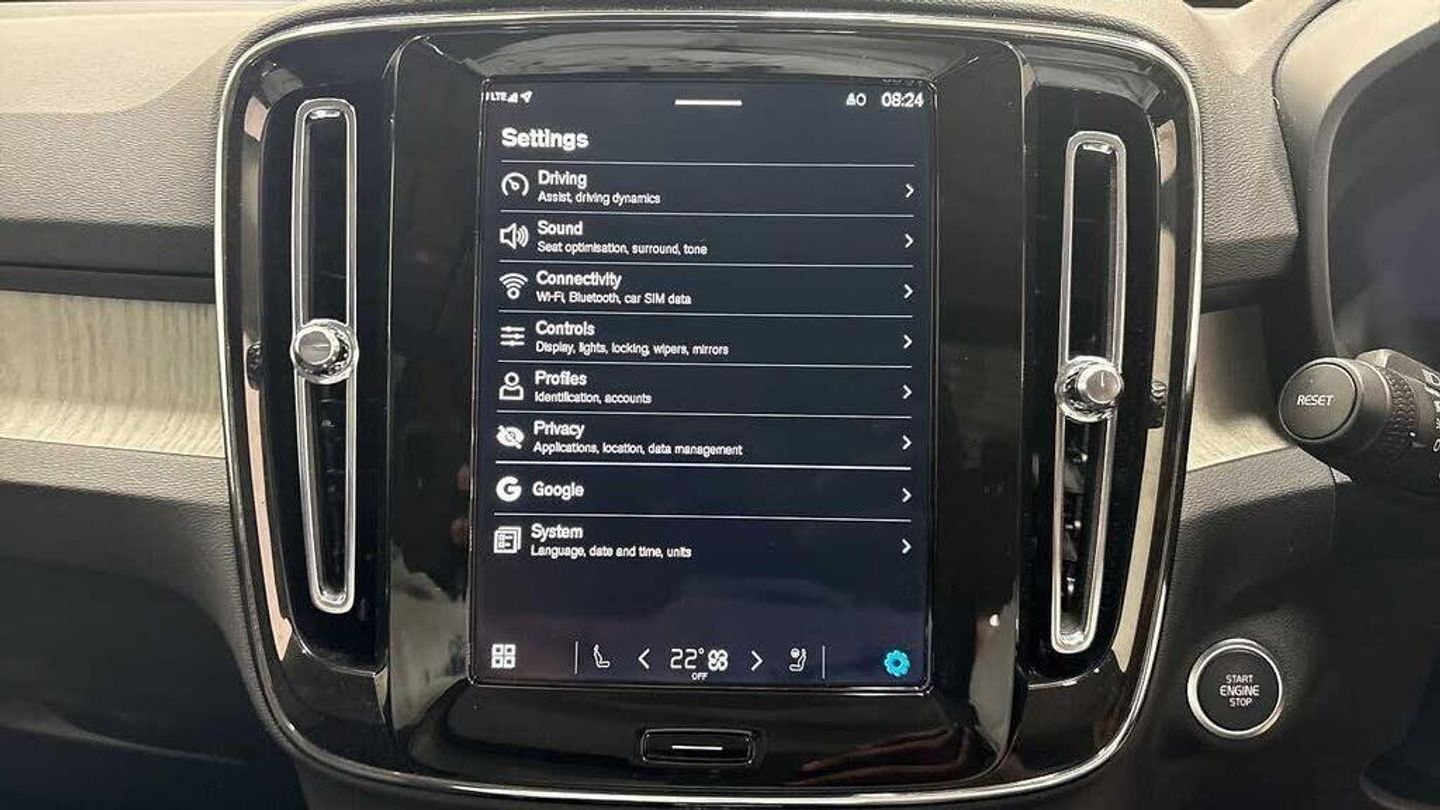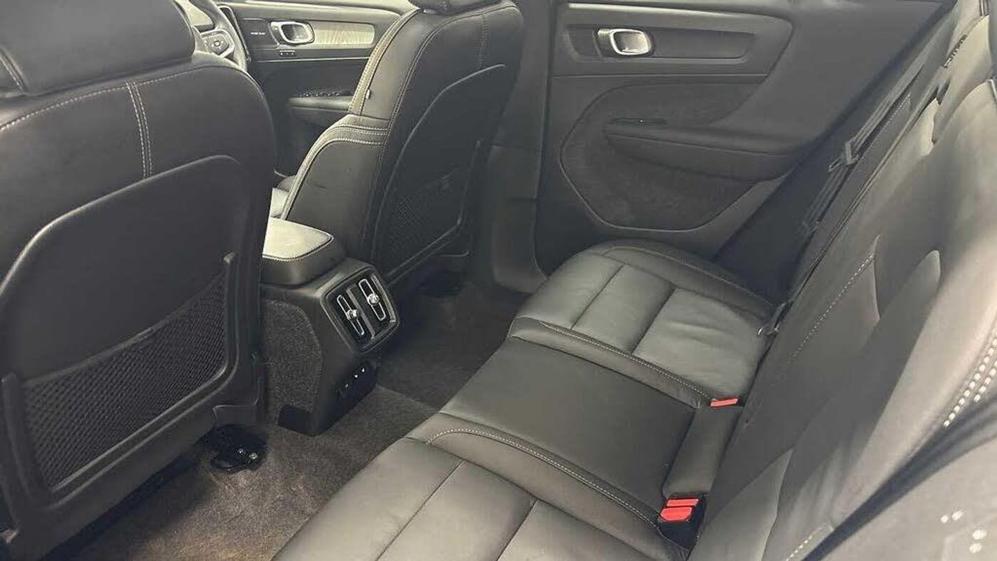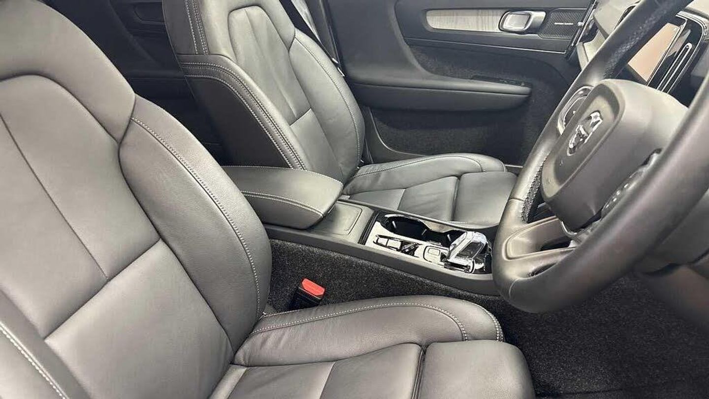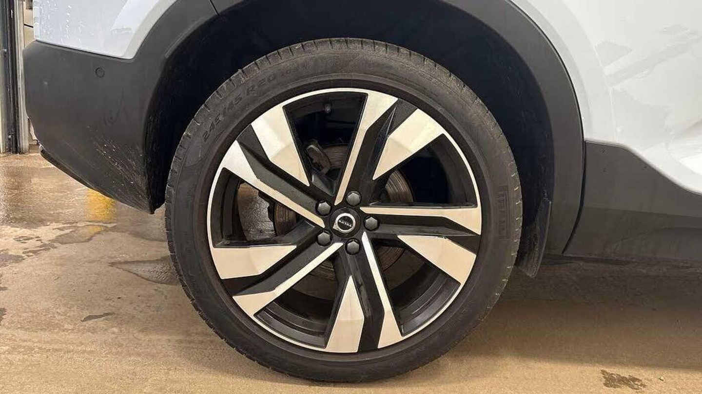 20? 5-Double Spoke Black Diamond Cut, Crystal gear shift by Orrefors®, Blond headlining, Door mirror covers. high-gloss black, Driftwood decor, Leather upholstery, Tailored steering wheel. Charcoal, 7-speed Dual Clutch automatic, Two-zone climate system, Afterrun parking climate, Passenger airbag cut-off switch, Dual-stage airbags, Knee airbag. driver side, Panoramic roof, Charcoal interior inserts, Roof top. colour coordinated, Road Sign Information, Lane Keeping Aid and Lane Departure Warning, Front grille with high-gloss black insert, Heated grill emblem, Pixel LED headlights, Headlight cleaning, Trailer lamp control, Fog lamps, 12.3-inch driver display, Google Assistant. Google Maps and Google Play Store, Adaptive cruise control, Pilot Assist, Intelligent Speed Assist (ISA), Volvo Cars App remote functions, Air-ventilated subwoofer, Digital Audio Broadcasting (DAB+), Harman Kardon Premium Sound, Power retractable door mirrors, Wireless phone charging, Automatic door locking, Remote key, Small storage. front, Double locking, Tinted rear windows, BLIS? and Cross Traffic Alert, Alarm, Power child safety lock, Power tailgate, Keyless entry with hands-free power tailgate, Air purifier and remote cabin pre-cleaning, Folding bag hook, Digital owners manual, Power driver seat with memory, Power passenger seat, Heated front seats, Heated rear seats, Power folding rear head restraints, 5 seats, Mechanical release second seat row, Manual cushion extensions. driver and passenger, Power 4-way lumbar support, Sport textile interior cabin floor mats. Charcoal, Protection net, Foldable load floor with cargo divider and grocery bag, Rear centre armrest, Illuminated vanity mirrors, Interior illumination. high level, Power outlet. load compartment, First-aid kit, Auto-dimmed rear view mirrors, Front centre armrest, Glossy black tunnel console, Chassis, Hill Start Assist, Tyre pressure monitoring, Oncoming Lane Mitigation, Rear Collision Warning, Hill Descent Control, Slippery road alert, Emergency brake light, Heated steering wheel, Adaptive power steering, 20? 5-Double Spoke Black Diamond Cut, Temporary mobility kit, Lockable wheel bolts, Hidden tail pipes, Heated windscreen, Body-coloured door handles with ground lighting, High-gloss black side window trim, Roof rails. glossy black, Warning triangle, Volvo tread plates. aluminium, Tempered side and rear windows, Rain sensor, Park assist. front. rear and sides, Ticket holder, 360° camera, Alcohol lock software (not available in the UK), Protective cap kit. Matt Tech Grey, Apple CarPlay, Comfort front seats, 9-inch centre display, Whiplash injury protection, Inflatable Curtain, Side impact protection, ISOFIX mounting points. rear seat, Steering wheel remote control, Humidity sensor, Bluetooth® connection, Safety belts