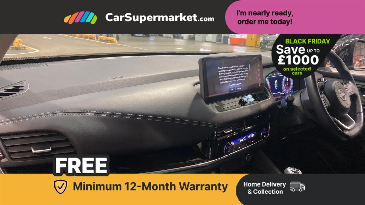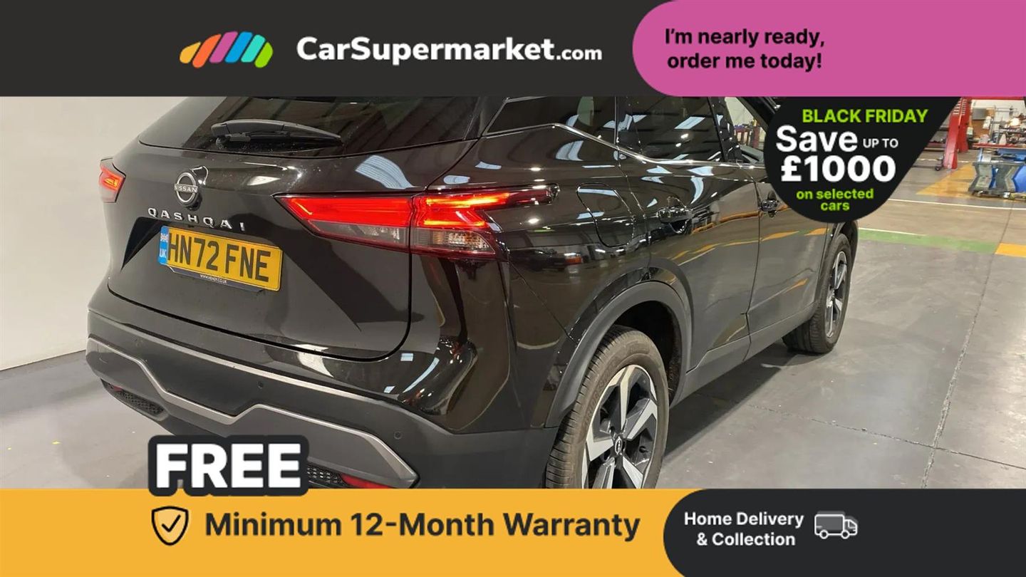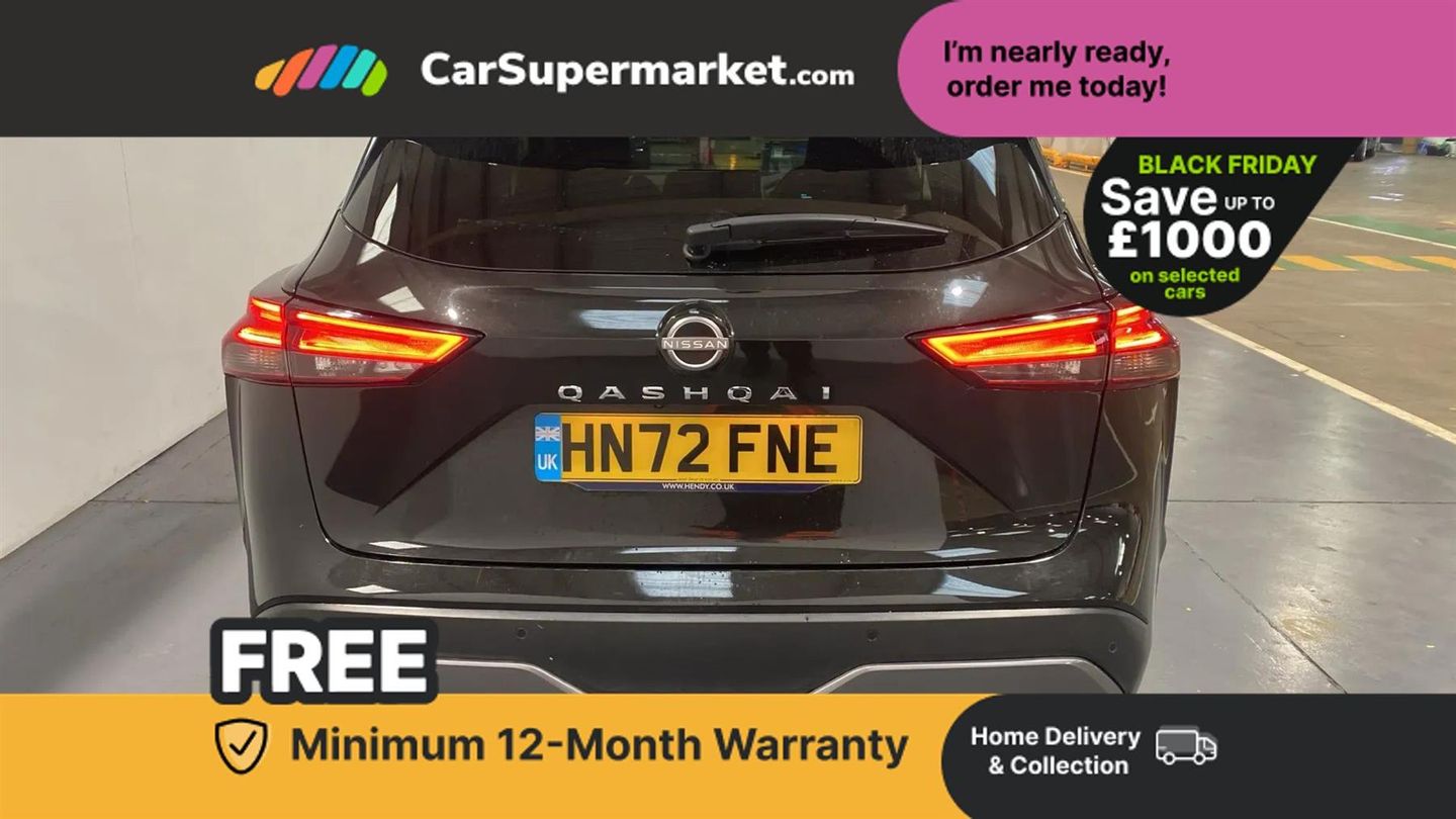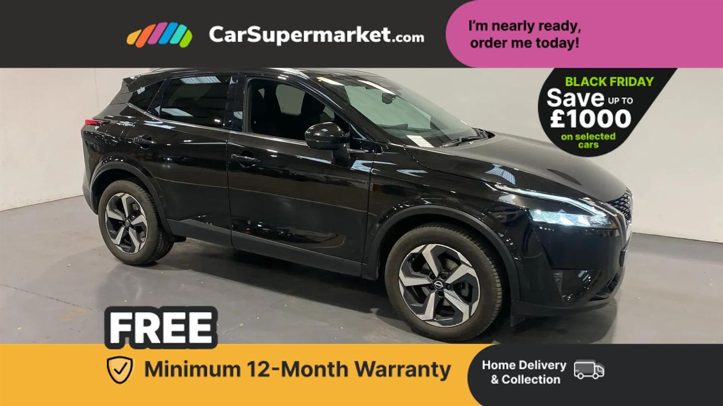 Android auto/Apple CarPlay (Wired),Blind spot warning,Drive modes (sport, normal, eco),Electric speed sensitive power steering,Emergency and breakdown call,Front and rear parking sensors,Full Digital 12.3" TFT Digital Combimeter,Google maps services - search, weather, 3D maps and Google street view,Idle stop/start system,Intelligent around view monitor,Intelligent Cruise control (ICC),Intelligent driver alert system,Intelligent forward collision warning,Intelligent lane intervention,Lane departure prevention,Lane departure warning system,Maximum speed limiter,Moving object detection,Nissan connect 12.3 inch touchscreen infotainment system,Nissan connect navigation,Push button starter,Rear cross traffic alert,Rear view camera,Remote control services - door locks, lights, horn and car locator,Telematics - notifications and connectivity services,TomTom live traffic services,Traffic sign recognition with legal speed adjustment,Trip computer,Virtual personal assistant and firmware over the air capability,Wireless apple carplay,6 speakers,AM/FM audio system with DAB,Bluetooth audio streaming,Front USB connections (Type-A and Type-C),Rear USB charging only ports (Type-A and Type-C),Auto dimming rear view mirror,Auto rear wiper when reversing,Automatic hazard signal with emergency stop signal,Body colour mirror caps,Body coloured door handles,Bodyside mouldings,Chrome side window finisher,Door handle with button,Electric auto folding door mirrors,Electrically adjustable and heated door mirrors with LED turn indicator,Follow me home headlights,High beam assist,Intelligent auto headlights,LED daytime running lights,LED Headlights,LED rear lights,One touch front and rear electric windows with remote opening and closing,Partially body coloured bumpers,Privacy glass,Rear bumper with graphite insert,Rear reversing light (bulb lighting),Rear roof spoiler,Rear side wing doors,Rear styling plate,Shark fin antenna,Splash free rain sensing wipers,Super UV and infrared cut glass,Three blink turn signal,12v power socket in dashboard and luggage,2x Rear coat hooks,3 bench rear seats in 2nd row,3 rear headrests,4 folding assist grip,6 Luggage hooks - 4 on floor, 2 on side,6-way manually adjustable driver's seat,60/40 split folding rear seat bench,Ambient lighting around centre console,Centre console storage tray,Chrome interior door handles,Cloth monoform upholstery,Driver and front passenger sunvisors with illuminated vanity mirrors,Driver seat back pocket,Dual zone automatic climate control with pollen filter,Electrically adjustable lumbar support for driver,Front and rear door storage,Front centre console and armrest,Front cupholders x 2,Front door with bottle holders,Glovebox with light,Hard trunk cover,Height adjustable driver's seat,Height adjustable front headrests,Height adjustable passenger seat,Leather shift knob,Leather steering wheel,Luggage board system,Luggage space lighting,Manually adjustable passenger (slide recline + lifter),Multifunction steering wheel,Passenger seat back pocket,Rear armrest with 2 cupholders,Rear door bottle holders,Single front passenger seat,Soft PVC kneepad,Steering wheel switches,Tilt/telescopic adjustable steering wheel,Two rear isofix child seat anchorage points with top tether,Welcome light and console tray ambient lighting,3x3 point rear seatbelt pretensioners + load limiters,ABS with EBD and brake assist,Active brake limited slip,Auto hold function,Child locks on rear doors,Curtain and front side, far side airbags,Driver and passenger airbags,Driver, passenger and 2nd row rear seat belt reminder,Electronic parking brake,Front seatbelt pretensioners + load limiters,Height adjustable front seatbelts,Hill start assist,Intelligent blind spot intervention,Intelligent front emergency braking with pedestrian, cyclist recognition and junction assist,Intelligent rear automatic braking,Tyre pressure monitoring system,Vehicle dynamic control,Capless fuel filler,Engine immobiliser,Intelligent Key,Remote central door locking with deadlocking,Thatcham Cat.1 alarm,Interior instrumental panel B finisher,18" Diamond cut alloy wheels,Tyre puncture repair kit,Glass roof pack with roof rails - Qashqai