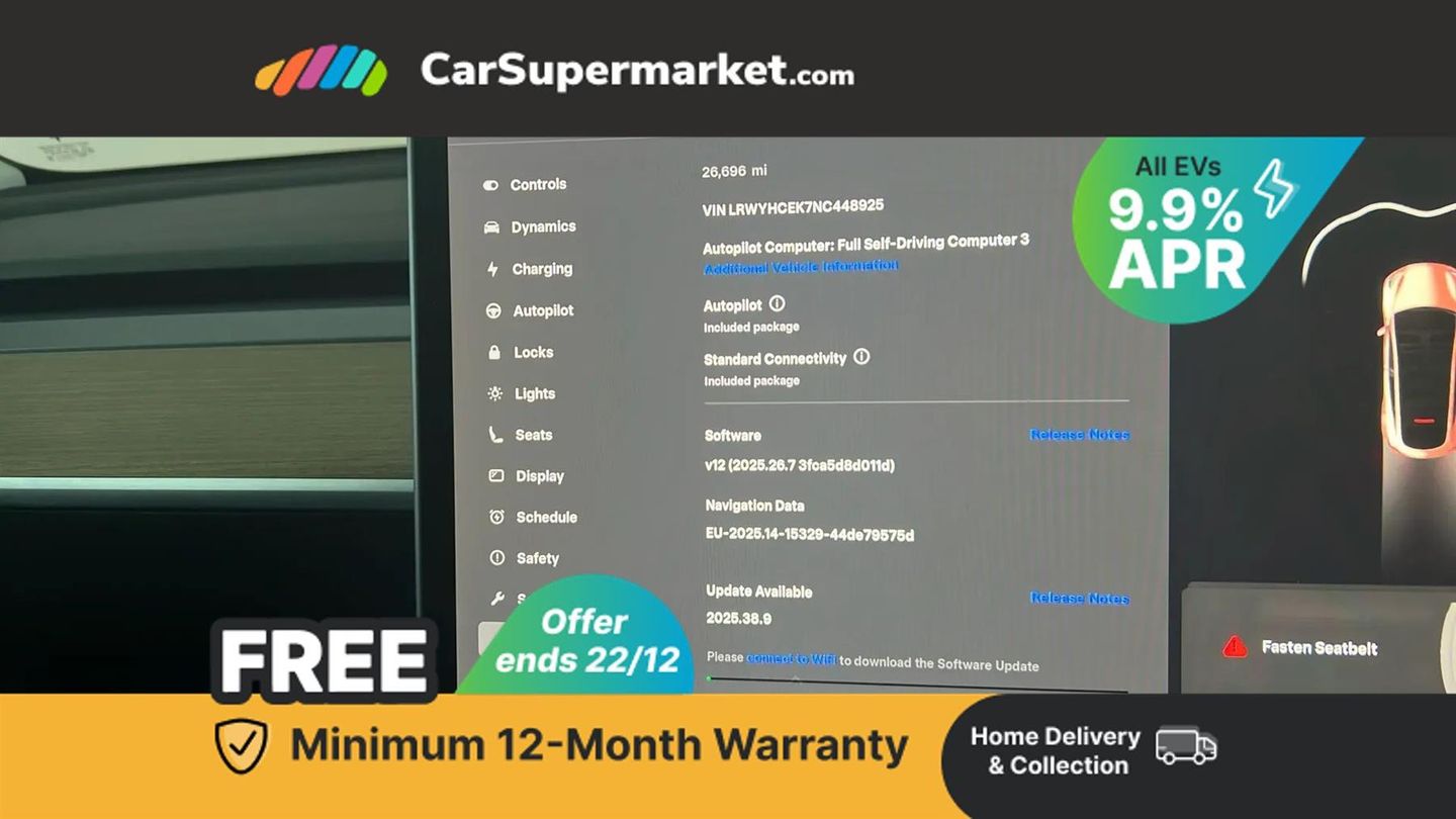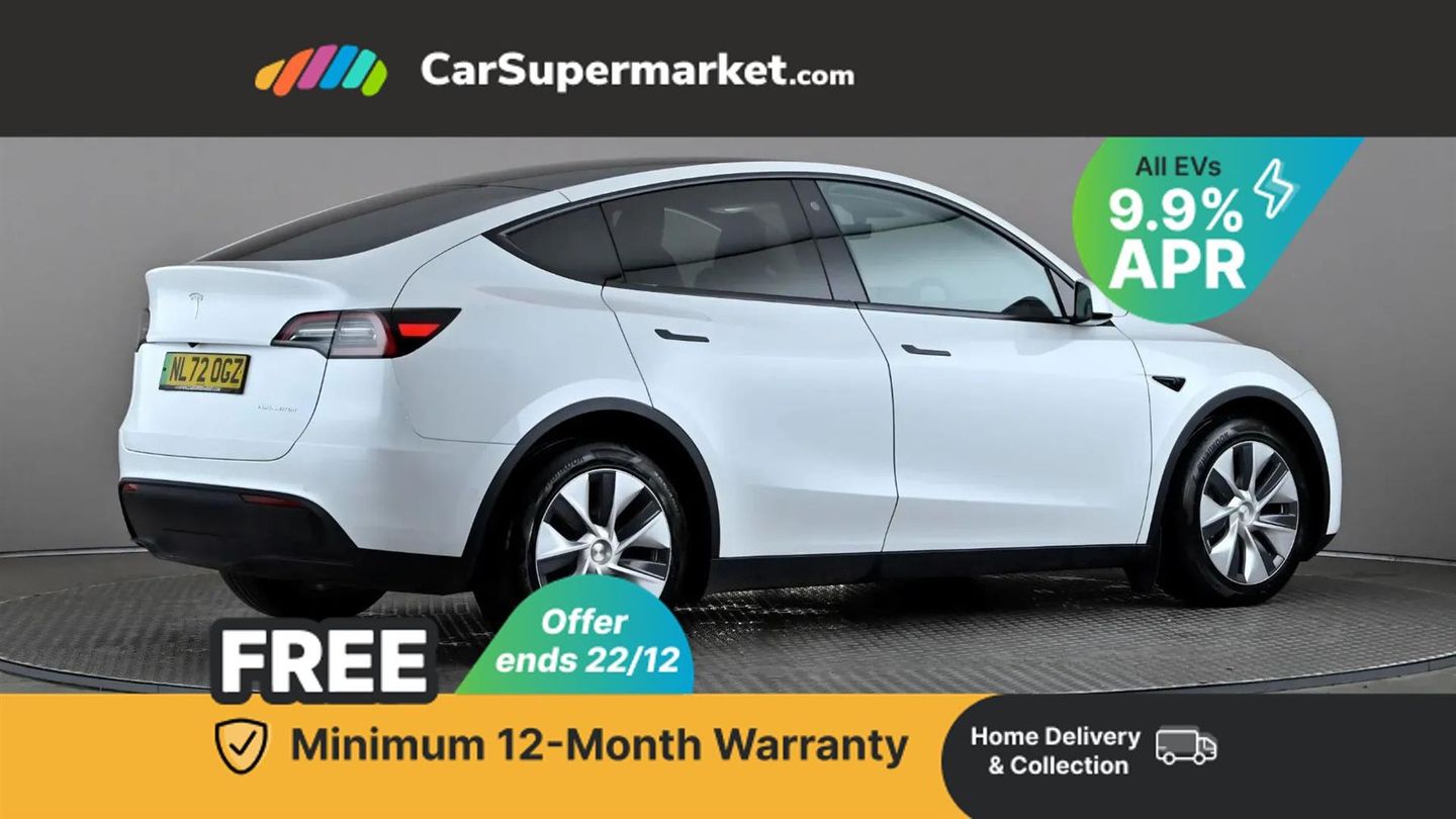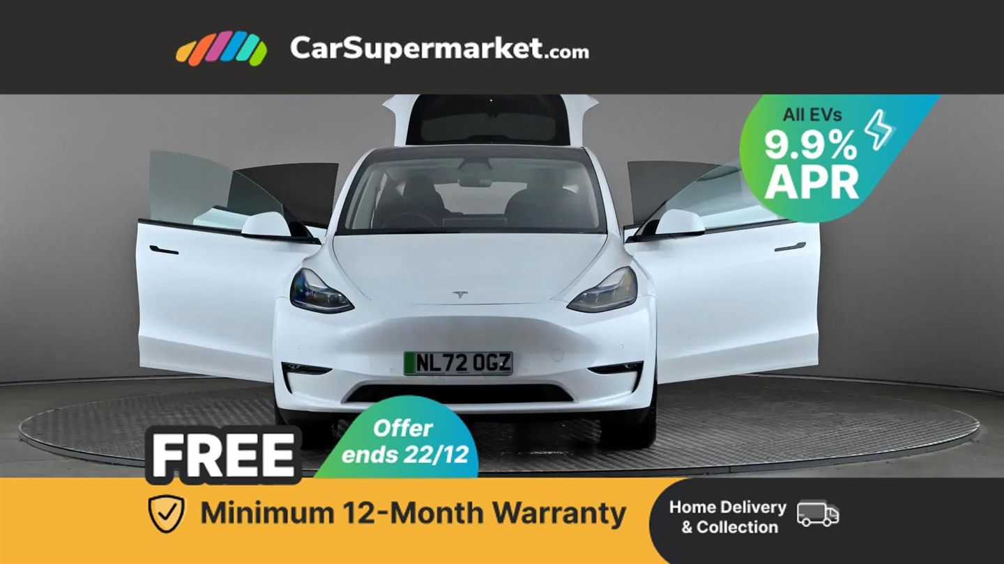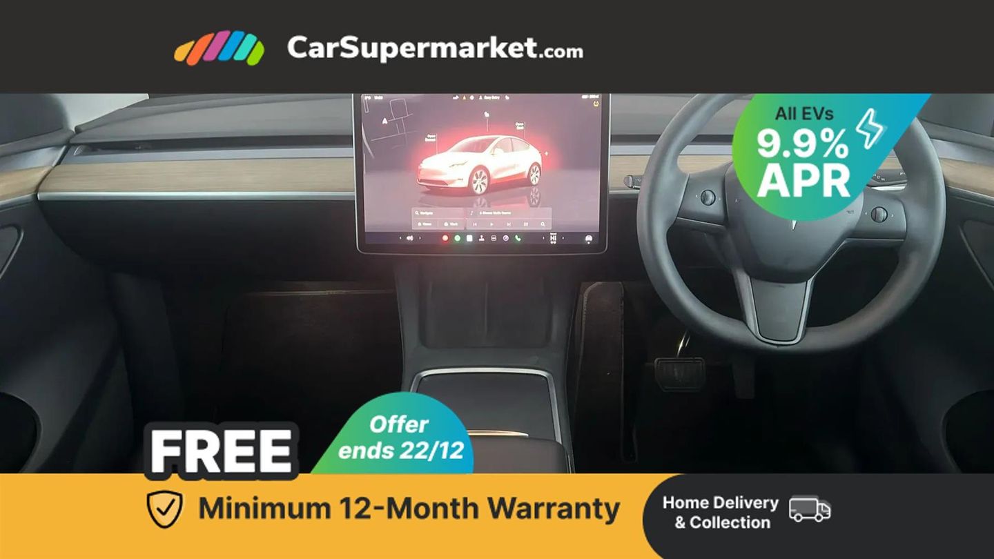 15" Touchscreen, Blind Spot Monitoring, Bluetooth, Parking Sensors, Sat Nav, Digital Radio, Heated Front Seats, Heated Steering Wheel, Keyless Entry, Wireless Phone Charging;With only one owner and a clear vehicle history, this 2022 Tesla Model Y Long Range presents a superb ownership proposition. This electric, four wheel drive vehicle boasts an 85 kWh battery offering a maximum range of 331 miles when new. Its MOT is valid until August 2026, and it was last serviced on 18th November 2025 at 26,684 miles, with the current mileage being a low 26,690 for its age. Notable features include music and media via Bluetooth, LED headlights, wireless phone charging, an expansive glass roof with ultraviolet and infrared protection, and blind spot monitoring. Experience impressive performance with this Model Y, accelerating from 0 to 60 mph in just 4.8 seconds, a highlight that sets it apart from many other vehicles. Charging is convenient, with a full charge at home on a 7kW charger taking approximately 12 hours, and a rapid charge to 80% on a public charger taking as little as 25 minutes. This vehicle also offers a large boot space, making it practical for everyday use and longer journeys.