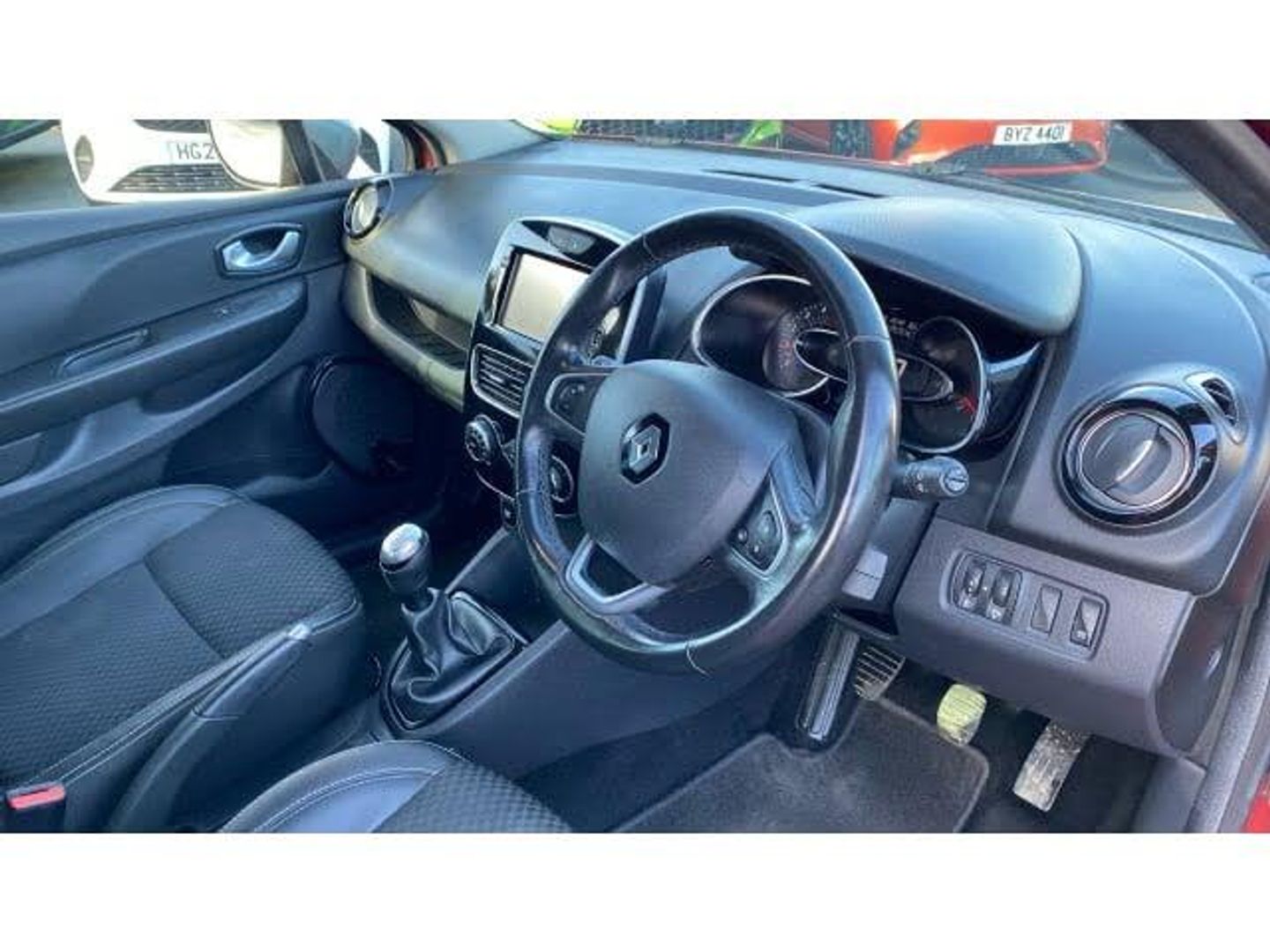 Climate Control, Metallic Paint, Cruise Control, Satellite Navigation, Alloy Wheels, DAB Radio, Bluetooth, Parking Sensors, Stop Start, USB, Keyless Entry-Push Button Start, Auto Lights, Electric Folding Mirrors& Rain Sensors, Electric front windows, ABS+EBD+Brake assist, Bluetooth connectivity, Cruise control + speed limiter, Push button starter, Trip computer, Electric folding door mirrors, DAB Digital radio, Body colour door protector, LED rear lights, Auto climate control, Leather steering wheel, Convenience Pack with climate control - Clio, Seatbelt warning, Heated front seats, Remote central locking, 17" GT alloy wheels