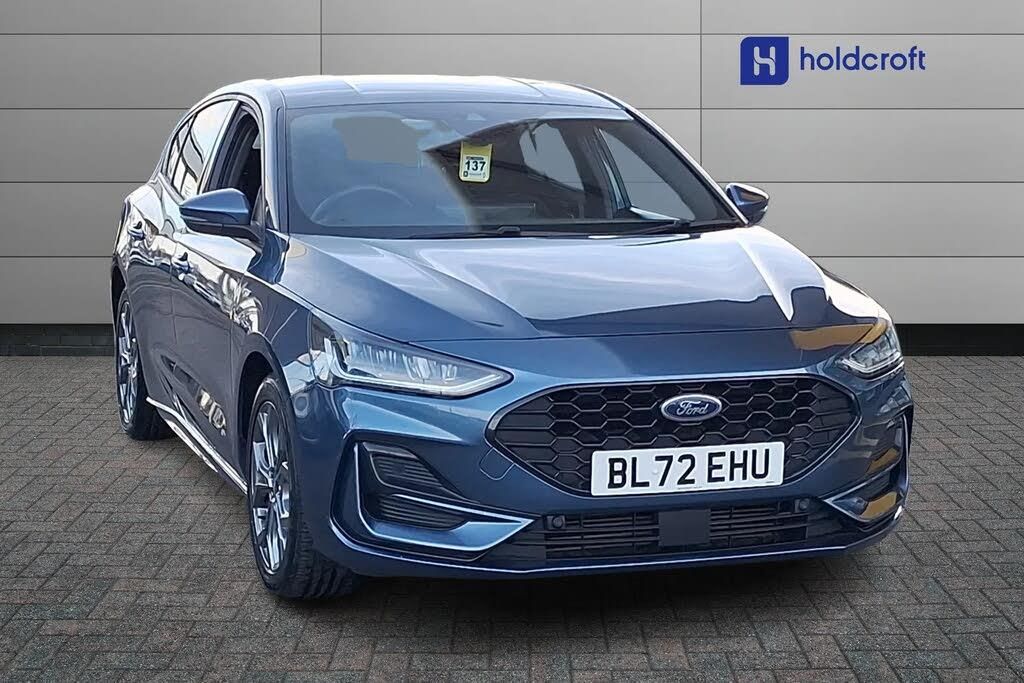 Bluetooth, Sat Nav, DAB, Touchscreen, Apple CarPlay/Android Auto, Puddle Lights, Isofix, Advanced Safety, Keyless Entry, Alloys;This 2022 Ford Focus ST Line T offers a compelling blend of style and practicality, making it an excellent choice for those seeking a reliable and engaging driving experience. Powered by an efficient 1.0 litre petrol engine, this Euro 6 compliant model boasts an impressive fuel economy of 52 miles per gallon, ensuring fewer stops at the petrol station. Its generous boot space provides ample room for shopping, luggage, or sports equipment, while its low CO2 emissions contribute to a more environmentally conscious drive. The Ford Focus ST Line T is designed to impress, with a brisk acceleration of 0 to 62 miles per hour in just 10.2 seconds. These highlights demonstrate how this particular Focus stands out from others in its class, offering a well rounded package that balances performance with economy and everyday usability.