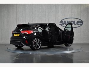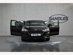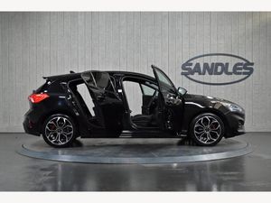 18in Alloy Wheels - 5x2 Spoke - Gloss Black - Machined Finish Ford SYNC3 DAB Navigation System FordPass Connect Cruise Control with Speed Limiter DEATC - Dual-Zone Electronic Automatic Temperature Control Front Seats - Sports Style V-shape with High Bolster Front Seats - Driver and Passenger Heated Seats Front Seat - Drivers Electrically-Operated Lumbar Support Adjustment Front Seat - Passenger Manual Height - Lumbar and Fore-Aft Adjustment Heated Steering Wheel Gearshift Knob - ST-Line Aluminium Soft Console Knee Pads with Red Stitching Steering Wheel - 3-Spoke Sensico Trimmed with Integrated Audio Controls Unique ST-Line Upper and Lower Grille and Full Bodystyling Kit and ST-Line Wing Badges Red Brake Calipers Door Mirrors - Electrically-operated - Heated - Power-Foldable - Body Colour Housings - Side Indicators - Puddle Lights Parking Sensor - Front and Rear Rear Privacy Glass Ford Key Free System - Keyless Entry with Keyless Start Electric Parking Brake Quickclear Heated Windscreen Selectable Drive Mode Sports Tuned Suspension Headlights - Automatic On-Off Automatic Dimming Rear View Mirror Rain Sensitive Windshield Wipers Intelligent Speed Assistance Lane Keeping Aid with Lane Departure Warning Pre-Collision Assist with Autonomous Emergency Braking and Pedestrian-Cyclist Detection Traction Control - TC Alarm - Thatcham Category 1 with Volume Sensing and Perimeter