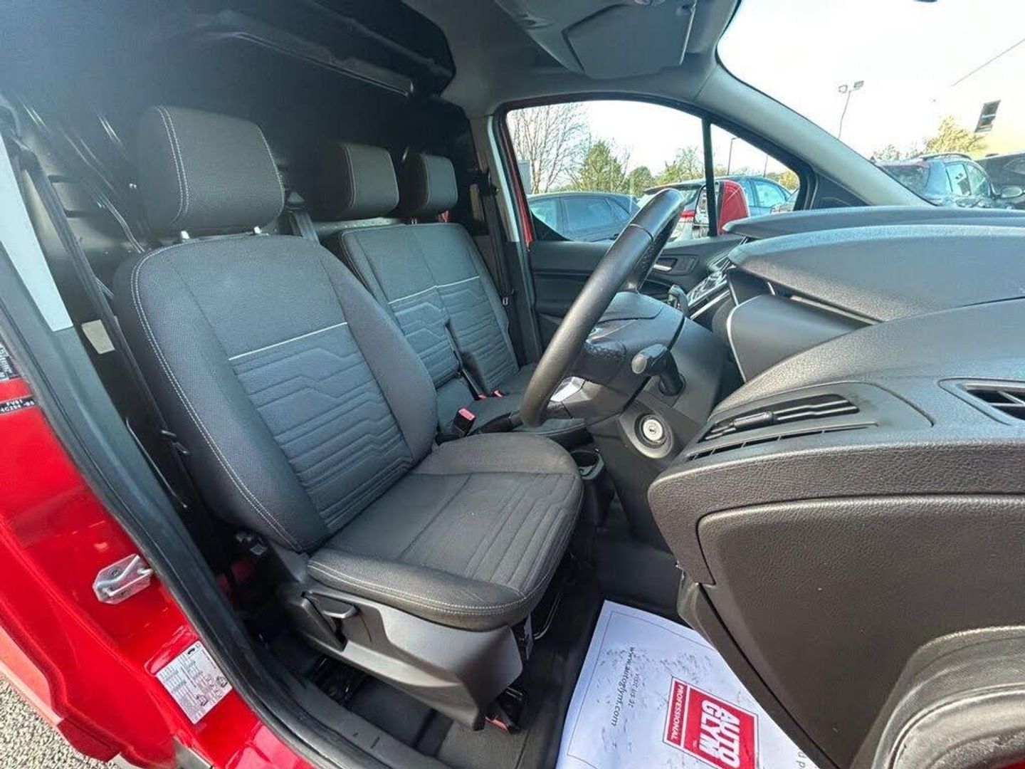 Race Red, 12V Powerpoint in Instrument Panel, in Console and Rear, 16in Steel Wheels, 3.5in Dot-Matrix Multi-Function Display, 4 Speakers, Alloy Wheels - 6.5x16in 5-Spoke, Anti-Lock Braking System (ABS) and Emergency Brake Assist (EBA), Auto Headlamps, Bluetooth, Centre Console, Cruise Control with Active Speed Limiter, DIN Compliant Cargo Tie Down Hooks and Side Mounting Points, Daytime Running Lights, Driver Seat Height Adjustment, Driver Seat Lumbar Support, Drivers Airbag, Dual Cup Holders, Eco Mode (Driver Information System), Electrically-Operated Front Windows with One-Shot Down on Drivers Side, Electronic Brake-Force Distribution (EBD), Electronic Power Assisted Steering (EPAS), Electronic Stability Programme (ESP), Floor Mats - Rubber, Ford SYNC Audio System (ICE Pack 4), Front Fog Lamps with Static Cornering Lamps, Front Fog Lights, Front Seatbelt Pretensioners, Fuel Economy Pack, Head Restraints - Front, Heated Front Screen, High Mounted Rear Brake Light, Hill Start Assist, Immobiliser/EPATS (Passive Anti-Theft System), LED Load Box Light, Load-Through Bulkhead, MP3 Capability, Message Centre, Audible Text Messaging, Manual Air Conditioning, Power Door Deadlocks, Power Fold Door Mirrors (Heated), Rake and Reach Adjustable Steering Wheel, Remote Central Double Locking, Reverse Parking Aid, Steel Spare Wheel, Steering Wheel Radio Controls, Trip Computer, Upholstery Cloth - Charcoal