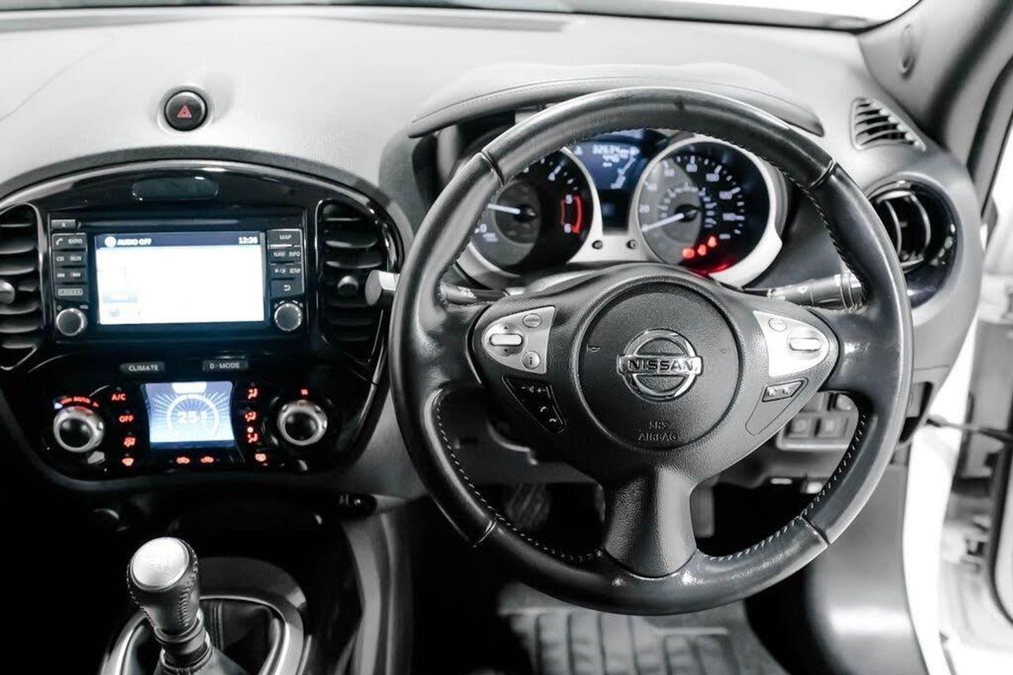 12V Socket - Front, 16in Alloy Wheels - Aero Bi-Tone Black, 3 Adjustable Rear Head Restraints, 6 Airbags, 60-40 Split Rear Folding Seats, AM-FM-CD Audio System, AUX Socket for MP3 Player, Automatic Climate Control with Pollen Filter, Automatic Headlights - Dusk Sensor, BOSE Personal Sound System, Body Coloured Handles, Chrome Interior Door Handles, Colour Reversing Camera, Cruise Control with Speed Limiter, DAB Radio, Dark Chrome Grille, Door Mirrors with LED Indicators, Door-Boot Open Warning Light, Drive Computer with Temperature Gauge, Driver and Passenger Sun Visor with Vanity Mirror, ESP ABS EBD and Brake Assist, Electric Folding and Heated Door Mirrors, Electric Front Windows with Driver One-Touch, Engine Immobiliser, Flexi-Board Boot Storage System, Front Armrest, Front Cupholders x2, Front Door Pockets with Drinks Bottle Holders, Front Map Reading Lights, Front Seat Belt Height Adjustment, Front Seat Belts with Load Limiter and Pretensioners, Gear Shift Indicator, Glovebox, Heated Rear Windscreen, Height Adjustable Driver Seat, ISOFIX Child Seat Anchoring Points, Intelligent Key - iKey- with Start Push Button, Interior Courtesy Light Operated by All Doors, Interior Personalisation - Energy Orange, Interior Personalisation - Enigma Black, Interior Personalisation - Power Blue, LED Daytime Running Lights, LED Front Fog Lights, Leather Steering Wheel and Gear Knob, Low Fuel Level Warning Light, Nissan Dynamic Control System, NissanConnect, Oil Level Gauge, Outside Temperature Gauge, Passenger Airbag Cut-Off Switch, Personalisation - Mirror Colour in Energy Orange, Personalisation - Mirror Colour in Enigma Black, Personalisation - Mirror Colour in Power Blue, Power Assisted Steering - Speed Sensitive, Puncture Repair Kit, Rain Sensing Windscreen Wipers, Rear Courtesy Lights, Rear Door Child Locks, Rear Electric Windows, Rear Privacy Glass, Rear Tonneau Cover Integrated into Tailgate, Rear Wiper with Intermittent, Rev Counter, Steering Wheel Mounted Audio Controls, TPMS - Tyre Pressure Monitoring System, Telephone - Bluetooth Integration, Tilt Adjustable Steering Wheel, Trip Computer, USB Port