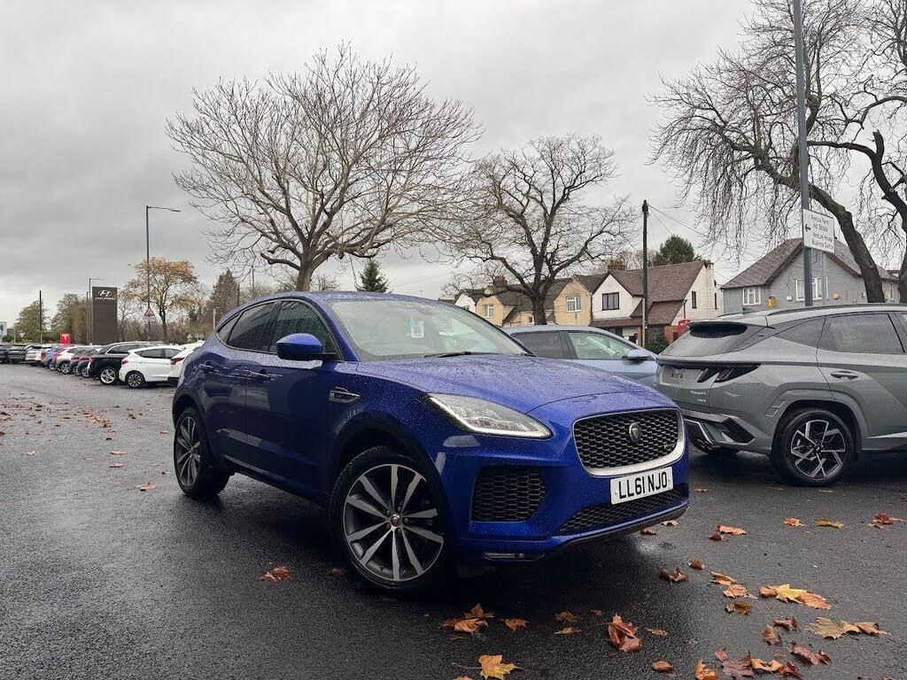Metallic - Santorini black, Windsor leather with front sports seats - Eclipse/Ebony, Electric front/rear windows with one touch/auto up/down, Heated front windscreen, Heated rear window with timer, Heated washer jets, Rain sensor windscreen wipers, Passive suspension, Body colour side cladding, Jaguar script and leaper, R Dynamic badge, R Dynamic body colour bumpers, Tailgate/boot lid spoiler, Twin tailpipes with finishers, 3 flash lane change indicators, Approach Illumination, Auto high beam assist, Automatic headlights, Front fog lights, Rear fog lights, ABS, All surface progress control (ASPC), DSC - Dynamic Stability Control, Electronic brake force distribution, Electronic parking brake, Emergency brake assist, High speed emergency braking, Hill start assist, Low friction launch, Torque vectoring brake, Eco driving style assistant, Electric power assisted steering, Lane keep assist, Speed proportional steering, Traffic sign recognition with adaptive speed limiter, Auto dimming rear view mirror, Electric folding auto dimming and heated door mirrors with memory + Signature approach lamp, 3x3 point rear seatbelts, Customer configurable autolock, Front airbags with passenger seat occupant detector, Front and rear curtain airbags, Front and rear seatbelt reminder, Front side airbags, Power child locks, Tyre pressure monitoring system, InControl remote, Voice control system, AM/FM DVD MP3 radio, Bluetooth connectivity including audio streaming, DAB Digital radio, Dynamic volume control, Push button starter, Start up sequence with movement in dials and lighting, Driver condition monitor, InControl Touch navigation pro, Interactive Driver display instrument cluster, Misfuelling protection device, Outside temperature gauge, Trip computer, Diesel particulate filter, Efficient Driveline, 2nd row air vents, Two zone climate control, 12V power socket in rear, 4 Load area hooks, Black gearshift paddles, Bright metal pedals, Centre armrest console, Elasticated loadspace side strap, JaguarDrive selector, Loadspace cover, R branded leather steering wheel, Storage net in luggage compartment, Tie down hooks in luggage area, Twin front cupholders, Windsor leather upholstery with front sports seats, LED lighting in overhead console, Loadspace lamp, Sunvisors with illuminated vanity mirrors, Connect pro pack - E-Pace, Drive pro pack - E-Pace, Park pro pack - E-Pace, Smartphone pack - E-Pace, 2nd row 60/40 split/fold, 3 seat bench in 2nd row, Centre headrest in row 2, Front head restraints, ISOFIX on outer rear seats, Passive front headrests, Intrusion sensor and alarm, Keyless entry, Locking wheel nuts