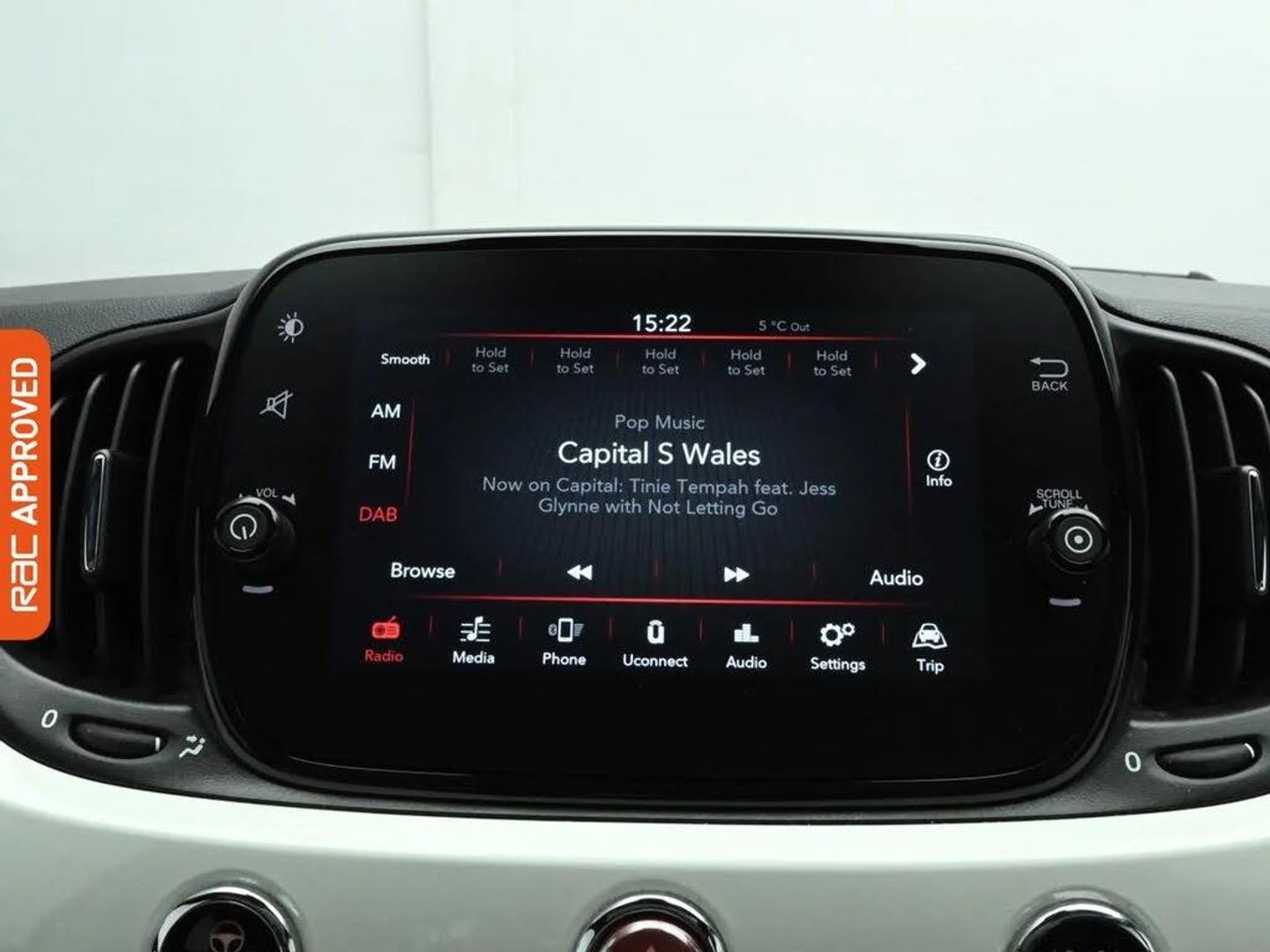 15in Alloy Wheels,Body Coloured Bumpers,Chrome Kit,Chrome Plated Exterior Door Handles,Dolcevita Badge,Electric Front Windows,Electrically Adjustable and Heated Body Coloured Door Mirrors,Fix and Go Puncture Repair Kit,Fixed Sunroof,50-50 Split Folding Rear Seat with Height Adjustable Head Restraints,Air Conditioning,Body Coloured Dashboard,Height Adjustable Drivers Seat,Rain and Dusk Sensors,Steering Wheel - Height Adjustment,Technoleather Steering Wheel with Audio Controls,7 Airbags,ABS with EBD,Automatic Door Locking,ESC - Electronic Stability Control,Remote Central Locking,7in HD Touchscreen Radio with Bluetooth - USB and DAB,Apple CarPlay - Android Auto Connectivity,Cruise Control,Rear Parking Sensors,TPMS - Tyre Pressure Monitoring System,Fog Lights,LED Daytime Running Lights,Rack and Pinion with Electric Power Steering,Speed Limiter,Bossa Nova White,Fabric - White-Black with Black Ambience