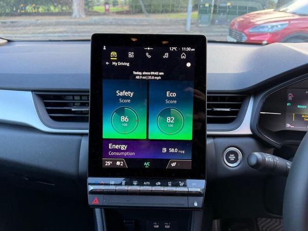 10.4in OpenR Link Touchscreen with Arkamys Audio 6 Speakers - DAB - Bluetooth, 17in Alloy Wheels - Ediris - Diamond Cut, 2 Front Reading Lights and Central Rear Rooflight, 2 Front USB-C Ports, 2 Reverse Gear LED Lamps and 1 Rear LED Fog Lamp in Bumper, 7in TFT Driver Information Display, ABS with EBA - Emergency Brake Assist, AEBS - Active Emergency Braking System, Airbags - Driver and Front Passenger - Side - Head and Curtain, Automatic Air Conditioning with One Touch Quick Demist Function and Air Quality Regulator, Automatic Headlights and Windscreen Wipers with Rain Sensors, Central Console with Storage - Sliding Armrest and 2 Rear Air Vents, Central Door Locking, Cruise Control with Speed Limiter, Daytime Running Lights, Distance Warning Alert, Driver Attention Alert, Driver Seat Belt Height Adjustable, ECO Mode Function, ESC - Electronic Stability Control, Electric Windows - Front and Rear with Driver One-Touch - Anti-Pinch Functionality, Electronic Parking Brake with Auto-Hold Function, Full LED Lights - Front and Rear, Gear Change Indicator, HSA - Hill Start Assist, Hands Free Keycard - Keyless Access and Start, Headlights - Automatic High-Low Beam, Heated Door Mirrors, Heated Rear Screen, Heating System with Pollen Filter, ISOFIX Child Seat Fixing Points on Rear Outermost Seats, LED Turn Indicators in Side Wing Mirrors, LKA - Lane Keep Assist, Locking Fuel Cap, Metallic Grey Decorative Upper Strip, My Safety Shield - Personalise ADAS Features at Press of a Button, Passenger Airbag Deactivation, Radiator Grille with 3D Graphics - Black Upper Part with Body-tone Graphics, Rear Door and Window Child Locking Function - Front Driver Door Control Panel for Rear Door, Rear LED Fog Lights, Rear Parking Sensors, Rear Seats - 1-3 2-3 Foldable Sliding Bench, Rear View Mirror, Rear Windows and Tailgate - Dark Tinted, Rear-View Camera, Renault Automatic Emergency Assist - E-Call, Seatbelt Reminder - Driver - Passenger and 3 Rear Passengers, Seats - Drivers Height Adjustment, Shark Fin Antenna, Steering Wheel - Height and Reach Adjustable, Steering Wheel - Synthetic Leather, Traffic Sign Recognition with Overspeed Prevention, Tyre Pressure Warning Light, Tyre Repair Kit, Variable Power Assisted Steering - Electrical, Vehicle Sound for Pedestrians, Wifi Smartphone Integration with Apple CarPlay and Android Auto, Windscreen Wipers - Rear, Wireless Phone Charger, Fabric - Assault Grey-Black with Drake Blue Top-Stitching