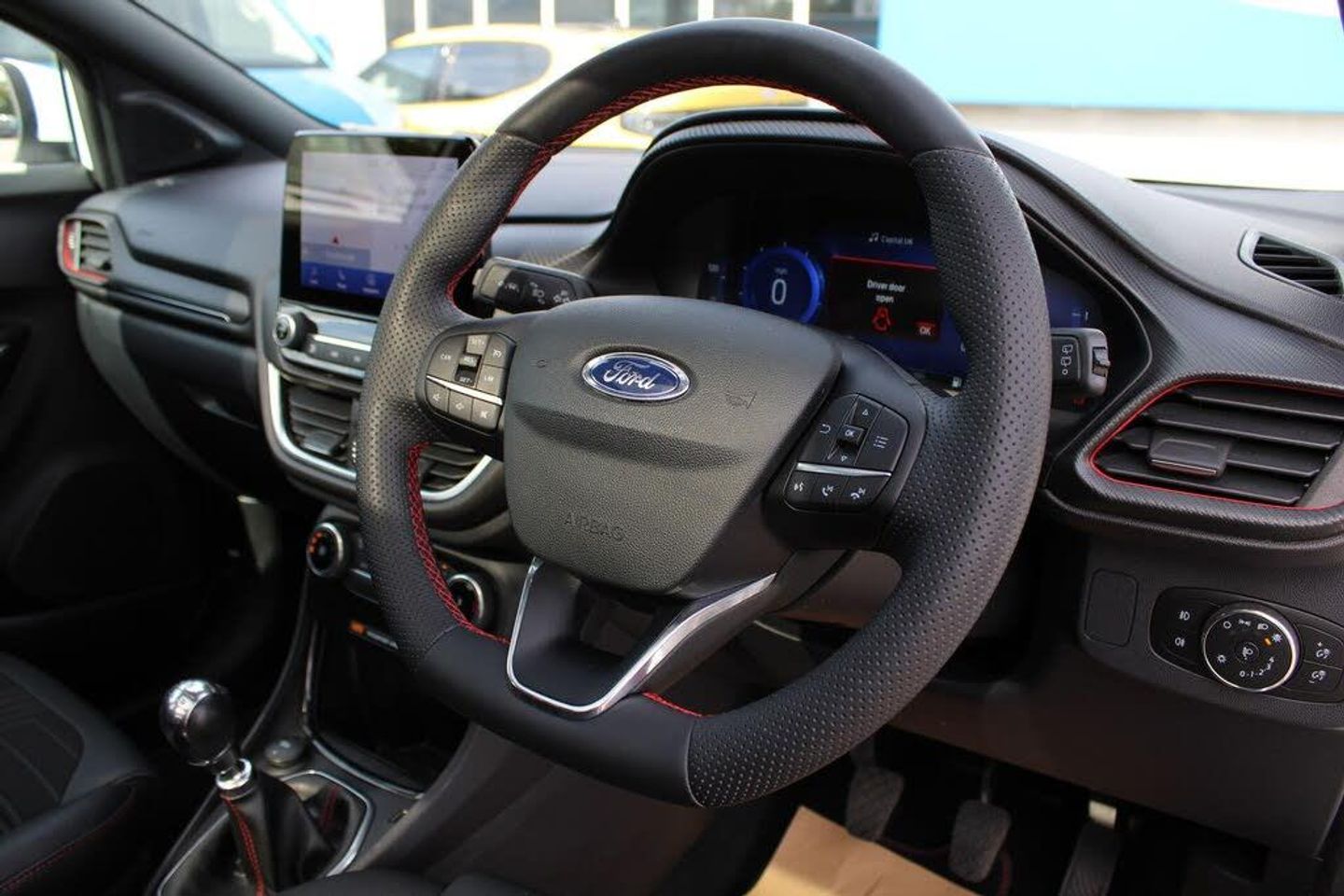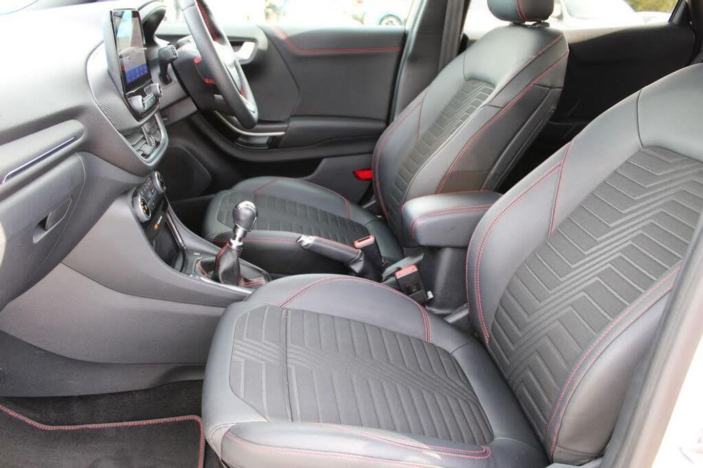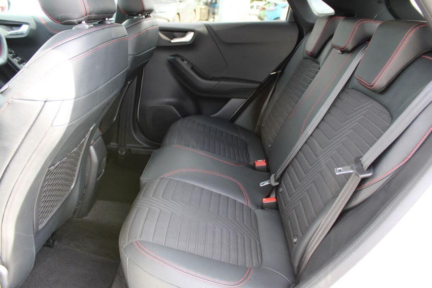 Driver impairment monitor, Emergency call service, Ford easy fuel, Full digital 12.3" instrument cluster, Lane keeping aid with lane departure warning, Power assist steering, Power start button, Rear parking sensor, Selectable drive modes(Normal, Eco, Sport, Slippery and Trail), Speed sign recognition, Automatic headlights with auto high beam, Automatic rain sensing wipers, Front fog lamps, LED daytime running lights, LED rear lamps, Power foldable heated door mirrors with puddle lamps, Privacy glass to side rear windows and tailgate glass, Quickclear heated windscreen, Rear side wing doors, Rear wiper, ST-Line body styling kit with unique grille, Third brake light, 3 seat bench in 2nd row, Centre console with armrest and stowage, Ford megabox extended bootspace, Front and rear head restraints, Front floor mats, Manual 4 way driver seat adjust with lumbar adjustment, Manual 4 way passenger seat with lumbar seat adjustment, Sensico partial premium upholstery, Single front passenger seat, ST-Line flat bottomed sensico leather steering wheel with leather handbrake and aluminium gear knob, Wireless charging pad with electronic air temperature control (EATC), Thatcham alarm